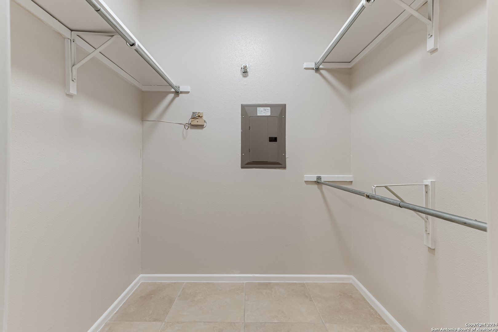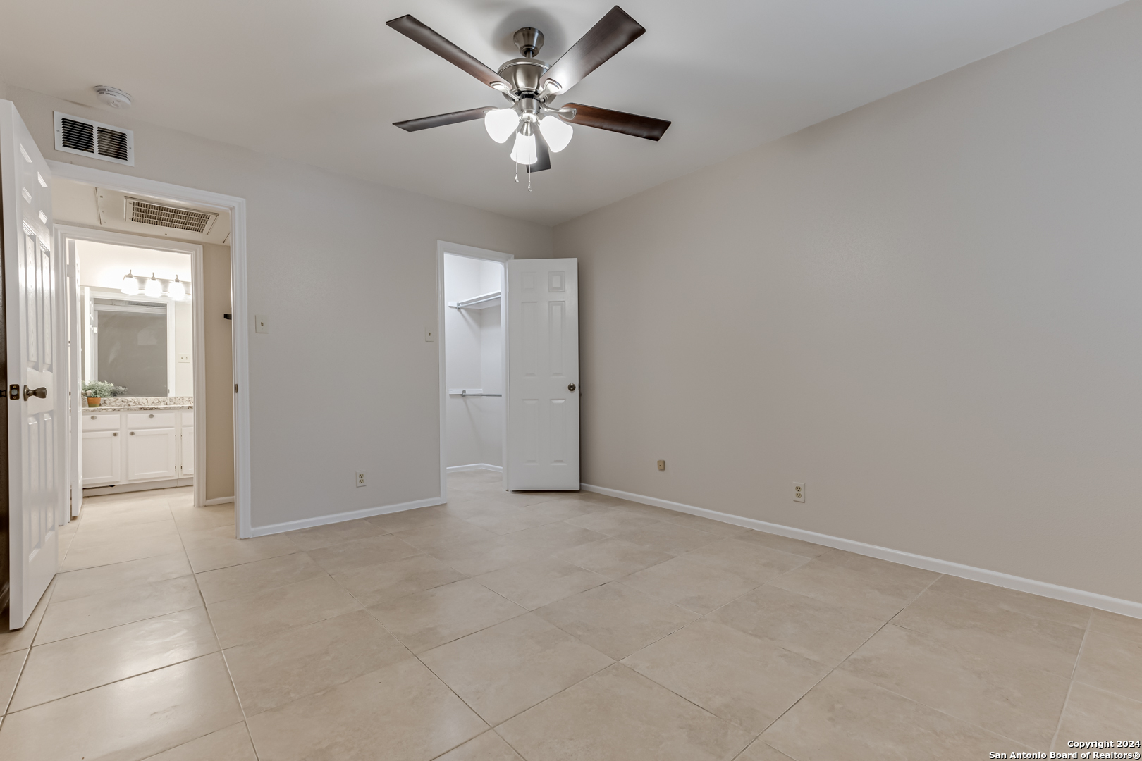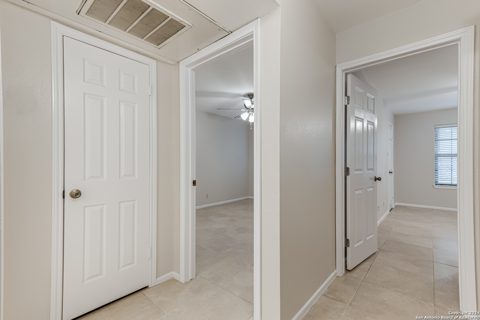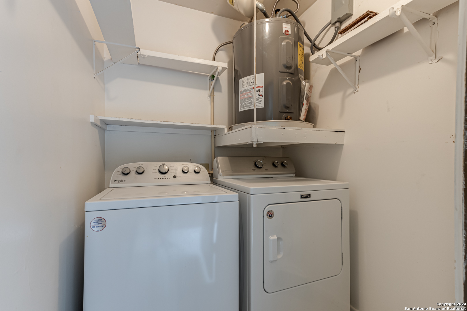 Wow! Renovated condo in Whisper Hollow. 2024 renovations costing $26,000 include all rooms completely painted, popcorn ceilings removed from all rooms, new granite countertops, sinks and fixtures in kitchen and both bathrooms, light fixtures and two fans with lights in bedrooms, kitchen microwave, dishwasher, garbage disposal and refrigerator. Levolor blinds in all rooms. Crown molding. Two new door frames and doors to bedrooms. No carpet! Tile floors. Inside AC unit/air handler replaced August 2024, including new thermostat, drain line and pan, $3,907. Exterior unit replace October 2019. Refrigerator (2024), washer and dryer convey, as is. Covered balcony overlooks beautiful pool. Other amenities include hot tub, clubhouse and tennis court. Priced well below BCAD. Close to Medical Center, USAA and UTSA.