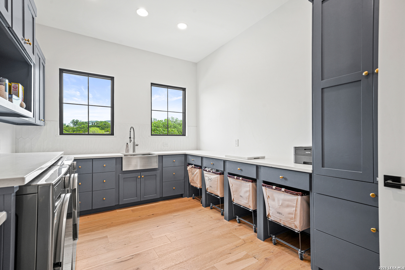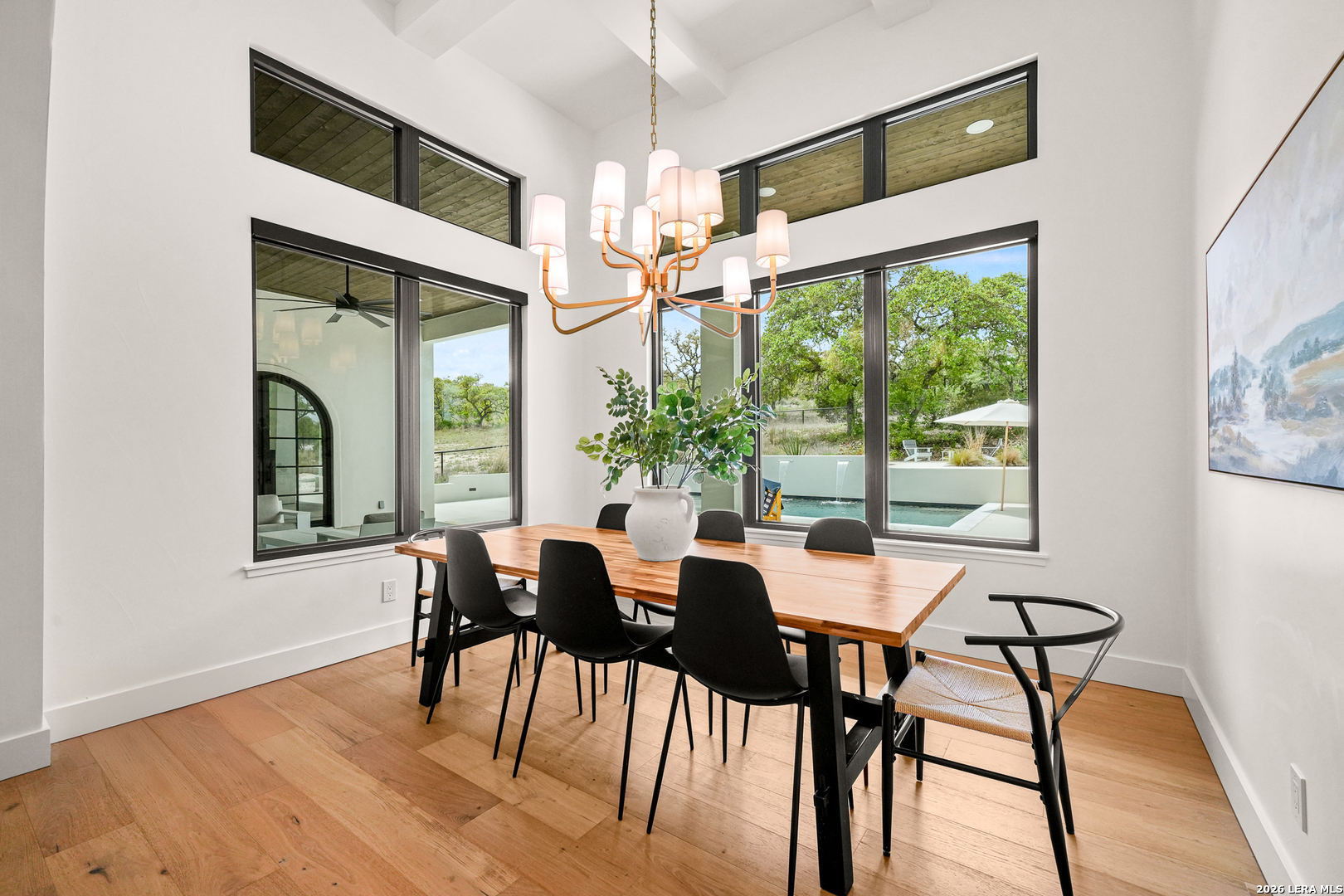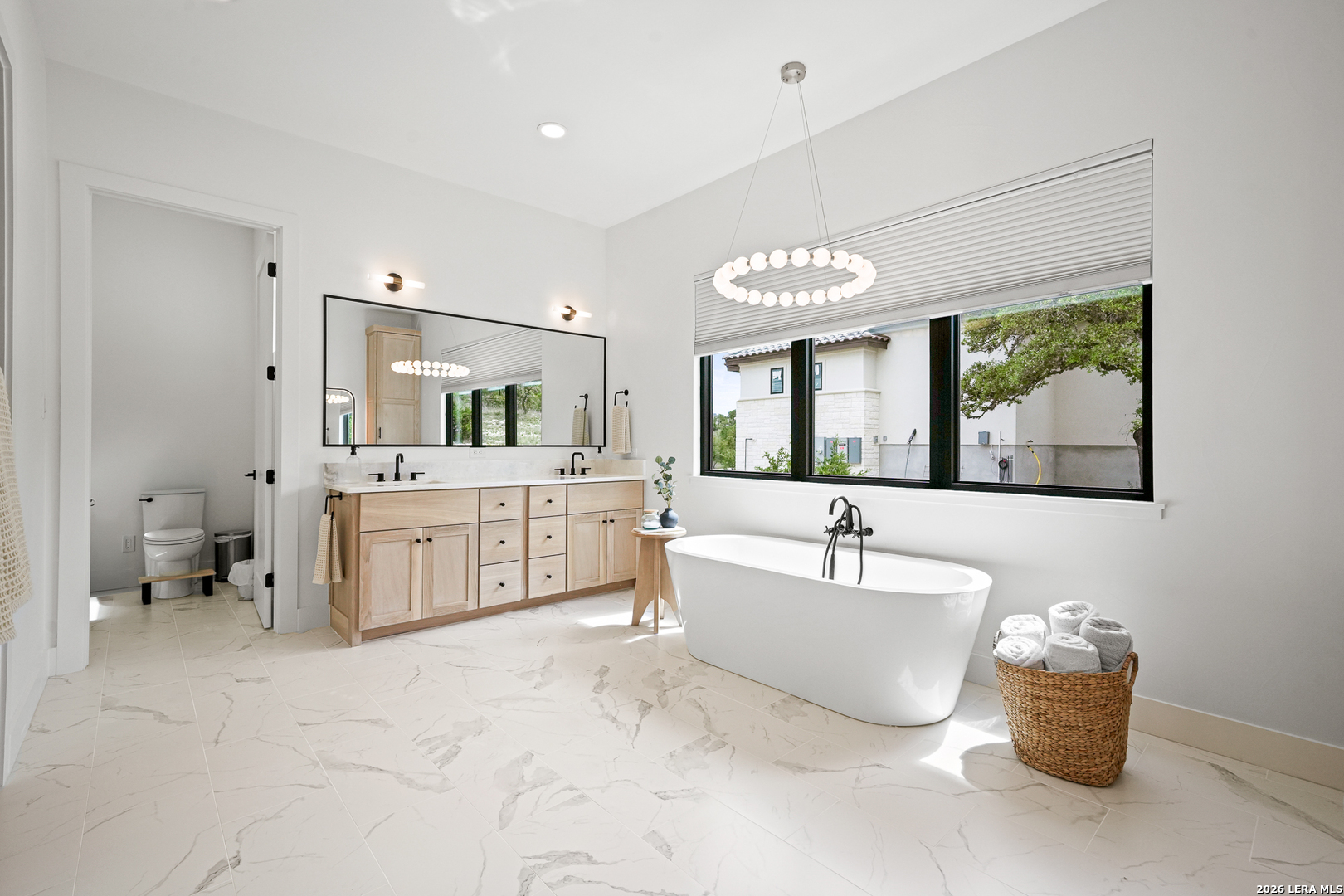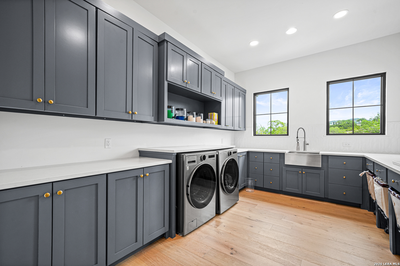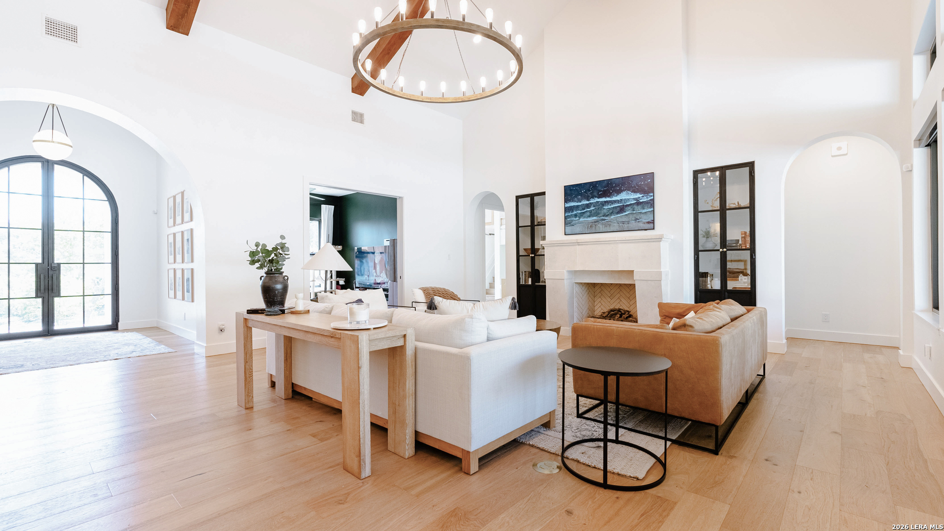 Tucked into the prestigious gated (and soon to be guarded) Pecan Springs community in Boerne, this exceptional modern European estate blends refined luxury with thoughtful, everyday functionality. Set atop a gentle hill with no rear neighbors, the home captures the serenity of Hill Country living while remaining just minutes from the charm of downtown Boerne and the premier shopping and dining destinations at La Cantera and The Rim. Designed for both elevated entertaining and comfortable living, this five-bedroom, five-bathroom residence showcases an expansive open layout anchored by an oversized island that is perfect for hosting. The chef's kitchen is outfitted with a built-in Sub-Zero 36" refrigerator and 36" freezer, a Wolf 48" double oven and range, plus an additional oven in the show-stopping butler's pantry which wouldn't be complete without a convenient "Costco door" from the garage for effortless stocking. The butler's pantry is truly a dream space, complemented by an oversized laundry room and an additional washer and dryer tucked within the luxurious primary suite closet. The serene primary retreat features a spa-like bath with a freestanding soaking tub, oversized walk-in shower, and private patio access for peaceful mornings or evenings. Flexible living spaces include a bonus room off the main living area, ideal as a home office or playroom, and a custom bunk room with four full-size built-in beds, perfect for guests or family gatherings. Step outside to your private resort-style oasis, where the outdoor living area seamlessly connects to a pool and spa, along with a full bathroom accessible directly from the exterior, perfect for entertaining. Energy-efficient solar panels with battery backup provide peace of mind during outages while helping reduce utility costs. Additional highlights include an oversized three-car garage with epoxy floors, abundant storage, and a tankless water heater. Residents of Pecan Springs enjoy scenic walking trails, with the neighborhood proudly selected to host the 2027 San Antonio Builder's Parade of Homes. This is Hill Country luxury redefined, where elegance, innovation, and comfort meet in one extraordinary home.