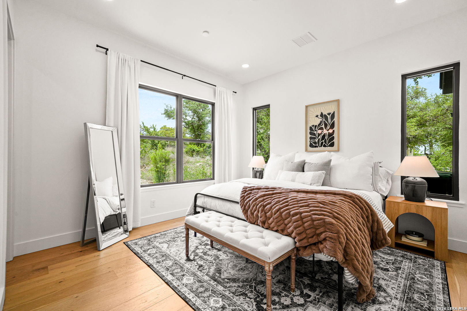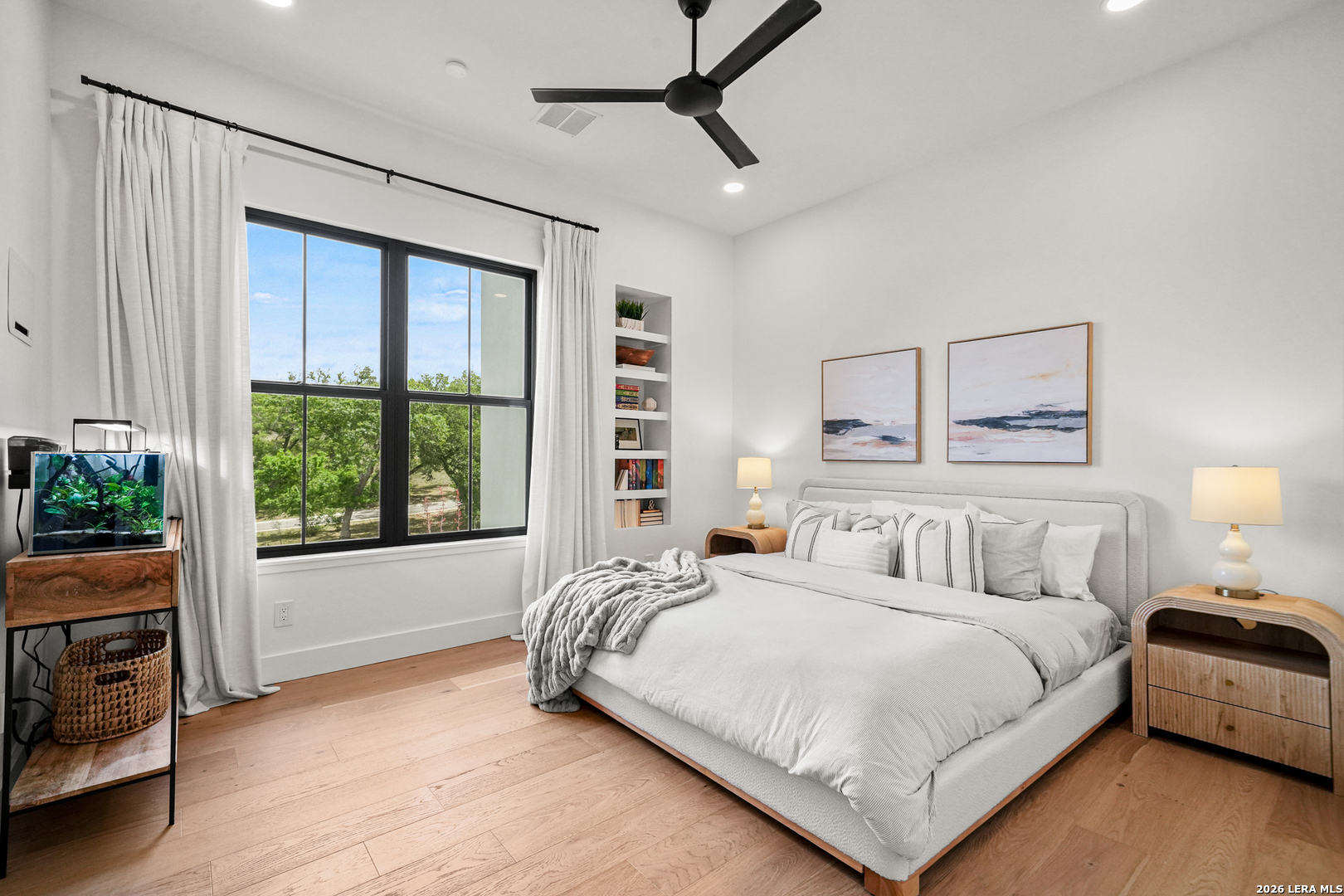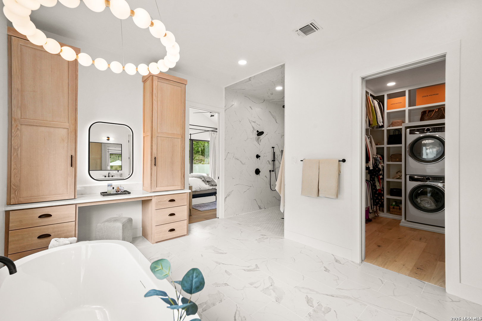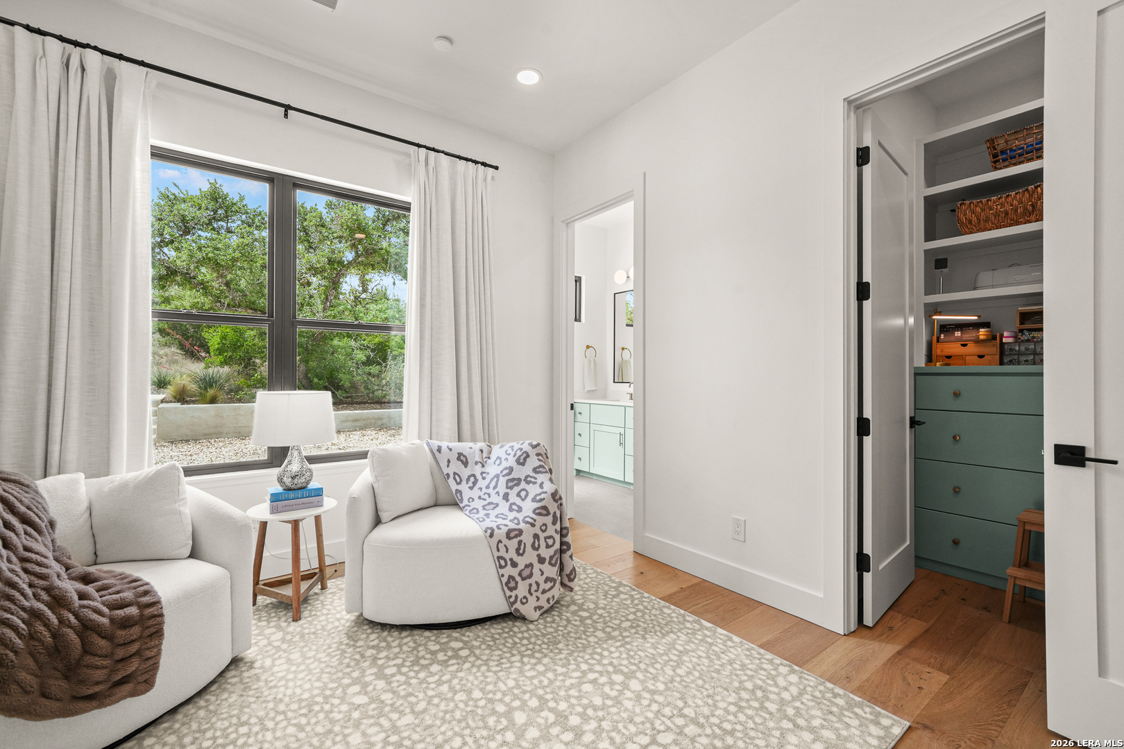 Tucked into the prestigious gated (and soon to be guarded) Pecan Springs community in Boerne, this exceptional modern European estate blends refined luxury with thoughtful, everyday functionality. Set atop a gentle hill with no rear neighbors, the home captures the serenity of Hill Country living while remaining just minutes from the charm of downtown Boerne and the premier shopping and dining destinations at La Cantera and The Rim. Designed for both elevated entertaining and comfortable living, this five-bedroom, five-bathroom residence showcases an expansive open layout anchored by an oversized island that is perfect for hosting. The chef's kitchen is outfitted with a built-in Sub-Zero 36" refrigerator and 36" freezer, a Wolf 48" double oven and range, plus an additional oven in the show-stopping butler's pantry which wouldn't be complete without a convenient "Costco door" from the garage for effortless stocking. The butler's pantry is truly a dream space, complemented by an oversized laundry room and an additional washer and dryer tucked within the luxurious primary suite closet. The serene primary retreat features a spa-like bath with a freestanding soaking tub, oversized walk-in shower, and private patio access for peaceful mornings or evenings. Flexible living spaces include a bonus room off the main living area, ideal as a home office or playroom, and a custom bunk room with four full-size built-in beds, perfect for guests or family gatherings. Step outside to your private resort-style oasis, where the outdoor living area seamlessly connects to a pool and spa, along with a full bathroom accessible directly from the exterior, perfect for entertaining. Energy-efficient solar panels with battery backup provide peace of mind during outages while helping reduce utility costs. Additional highlights include an oversized three-car garage with epoxy floors, abundant storage, and a tankless water heater. Residents of Pecan Springs enjoy scenic walking trails, with the neighborhood proudly selected to host the 2027 San Antonio Builder's Parade of Homes. This is Hill Country luxury redefined, where elegance, innovation, and comfort meet in one extraordinary home.