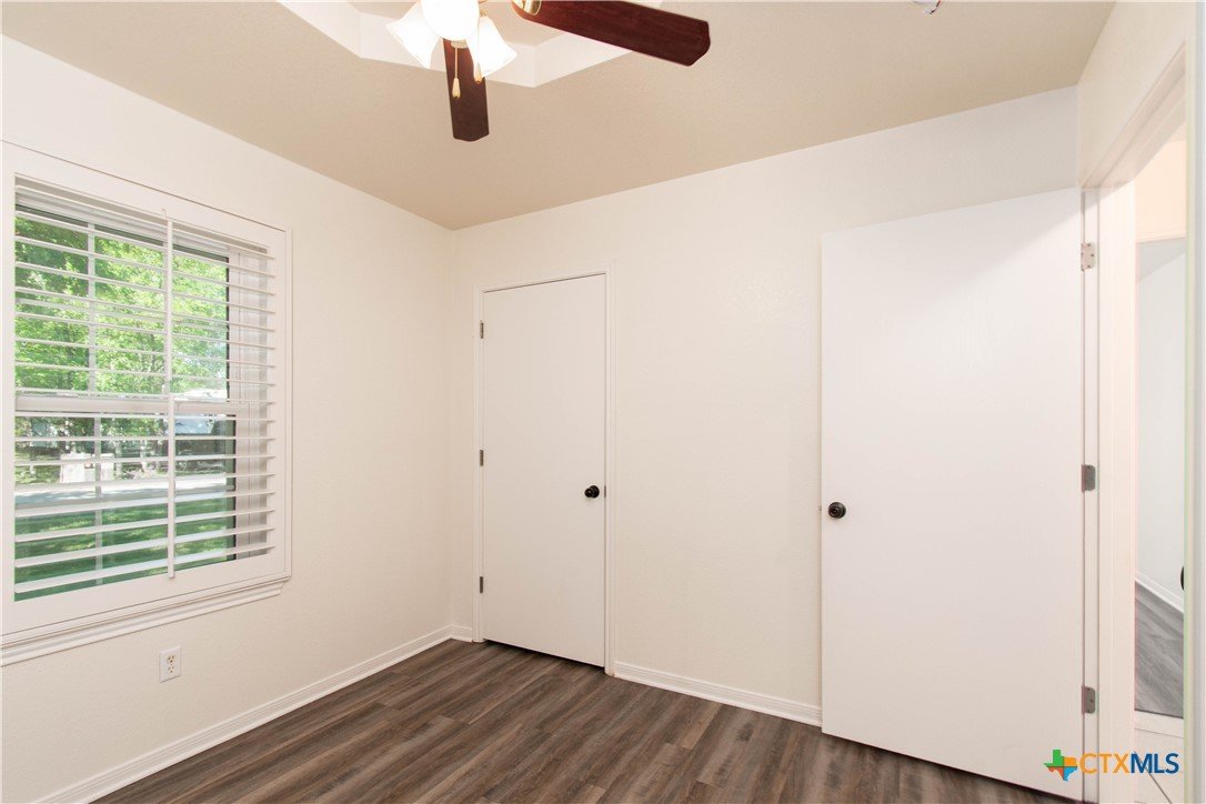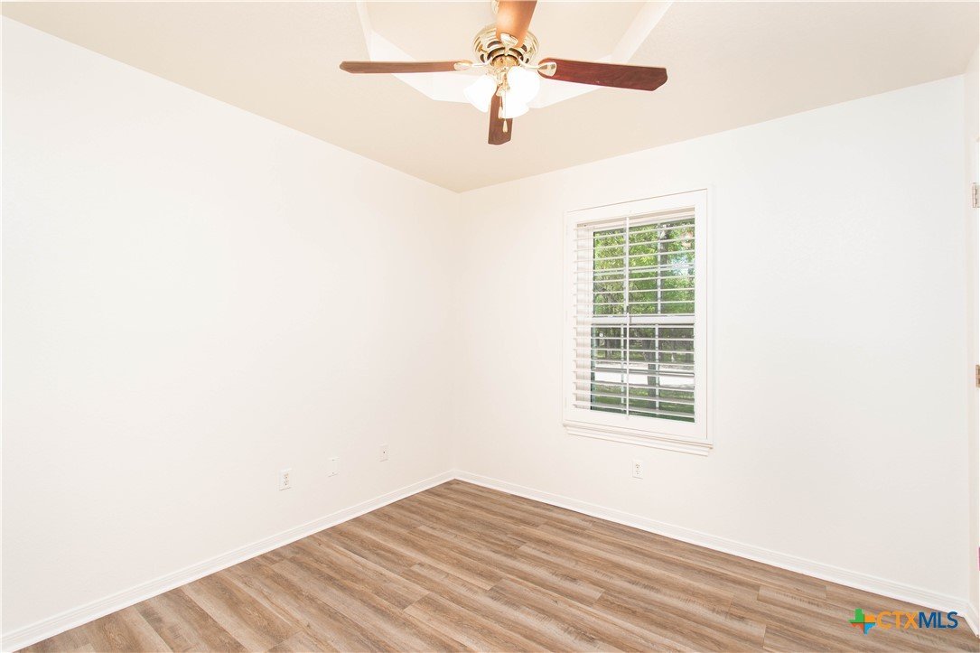 3-bedroom, 2-bath home in Belton ISD with a two-car garage plus a detached shop, set on a quiet, tree-covered lot. The home offers a functional layout with hard flooring throughout for easy upkeep. The living area connects to a dedicated dining space and a kitchen featuring granite countertops, stainless steel appliances, and ample cabinet storage. Plantation shutters throughout add a finished look and bring in natural light. The primary bedroom includes a private bath, while the secondary bedrooms offer flexibility for guests, a home office, or additional storage. A separate laundry area adds everyday convenience. Outside, the property offers a two-car attached garage along with a detached one-car garage that works well for a workshop, storage, or hobby space. The yard is open and shaded by mature trees, creating a quiet, comfortable outdoor setting with frequent wildlife nearby.