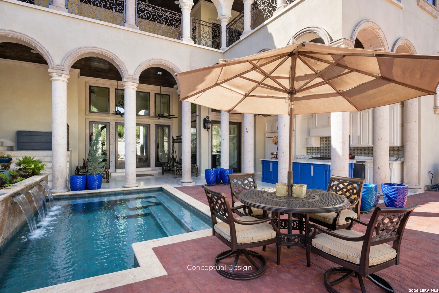 Offered for the first time in over 16 years, this extraordinary Dominion estate is a rare opportunity to secure one of the area's most significant private residences. On over half an acre, this 7 bedroom, 10 bath Mediterranean masterpiece spans more than 9,700 square feet and was completely reimagined in 2016, blending timeless architecture with modern luxury and full smart-home integration. From the moment you enter, a dramatic double staircase and soaring ceilings create a breathtaking arrival, complemented by exquisite marble and natural stone finishes, intricate crown molding, and statement lighting that reflect uncompromising craftsmanship throughout. Designed for grand-scale entertaining and elevated everyday living, the chef's kitchen anchors the home with double islands, premium appliances, custom cabinetry, and seamless flow into expansive formal and informal living spaces. A dedicated media room, versatile flex spaces, and multiple entertainment areas provide exceptional functionality, while each bedroom offers a private en-suite bath for ultimate comfort and privacy. A fully detached, finished garage adds flexibility for multigenerational living, executive office space, or extended guest accommodations or storing your luxury vehicles. Fully automated with electric window shades and advanced technology throughout, the home delivers effortless modern convenience. Walls of windows frame elevated views from the main patio, and the outdoor kitchen with multiple outdoor living spaces creates a true indoor-outdoor lifestyle experience. Meticulously maintained and commanding in presence, this is one of Dominion's most impressive private estates. Some images may include conceptual renderings. Property does not currently include a pool.