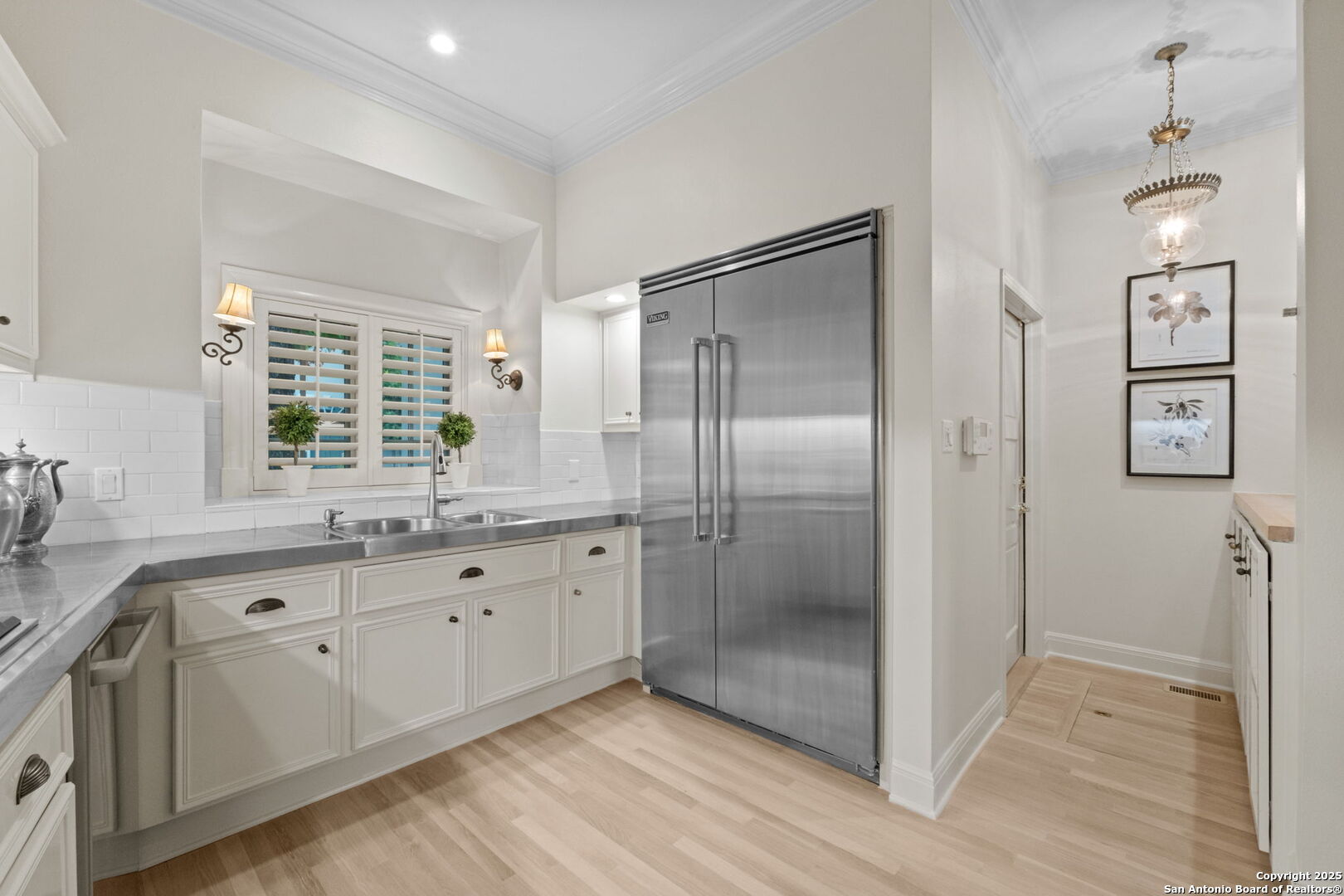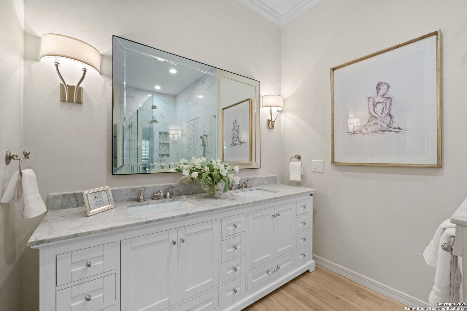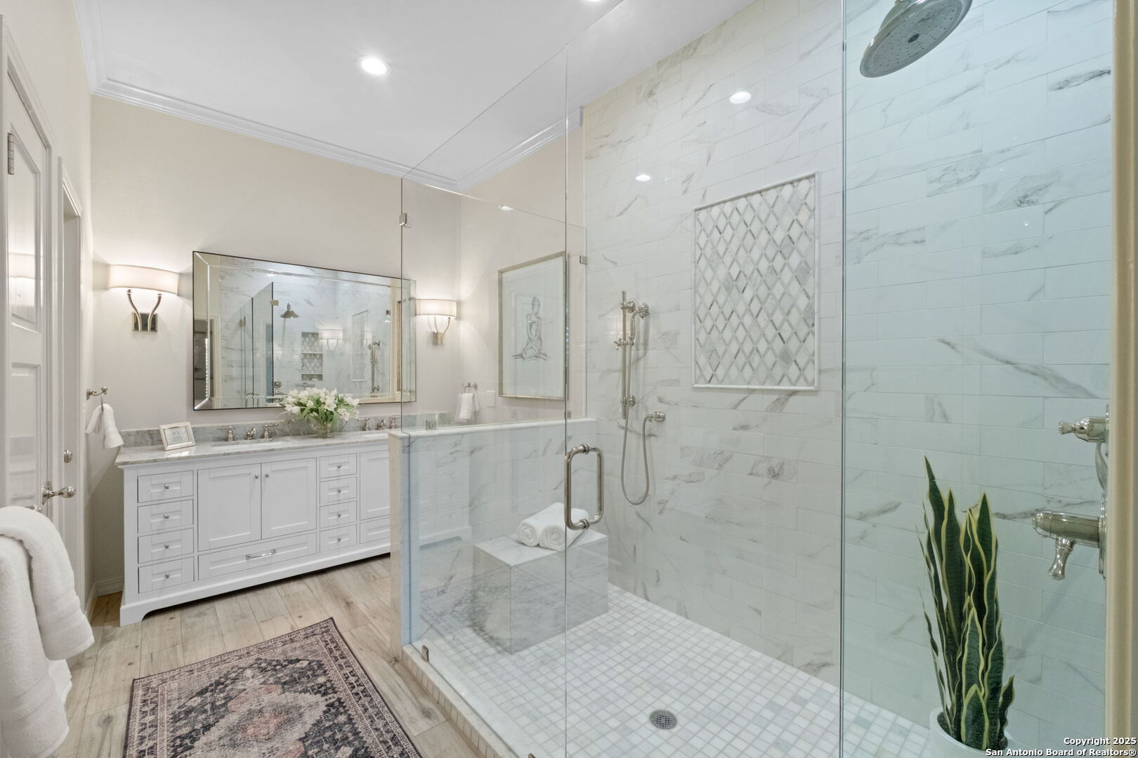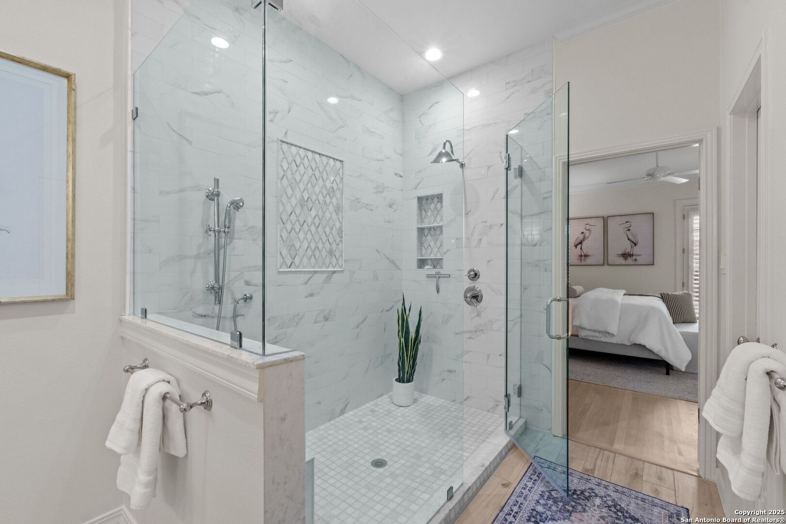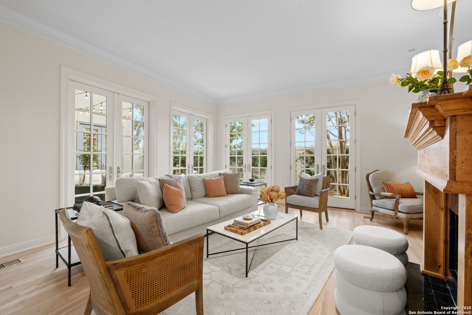 Discover an exceptional lock-and-leave lifestyle in The Heights at 110 Kennedy-an exclusive enclave of just eight luxurious townhome-style condominiums, ideally situated in the heart of Alamo Heights. Recently renovated and thoughtfully designed, this residence blends contemporary sophistication with timeless comfort. Expansive floor-to-ceiling windows bathe the open living spaces in natural light, while handsome light oak wood floors and high ceilings create a bright, welcoming ambiance. Designed for modern living with a timeless appeal, the interior is perfect for entertaining and everyday living. The chef's kitchen features high-end appliances, stylish stainless counters, and abundant storage. The living room, complete with fireplace, bar sink, and wine refrigerator, opens through French doors to a private walled patio with a soothing water feature and stone pavers for effortless outdoor enjoyment. With dual primary suites-one on each level-both offering fully renovated spa-like baths and generous walk-in closets, flexibility and comfort abound. An oversized two-car attached garage provides convenience and additional storage. Located within walking distance to Alamo Heights' vibrant shopping, dining, and within close proximity to the cultural corridor leading to The Pearl, this home offers the perfect blend of luxury, location, and ease.