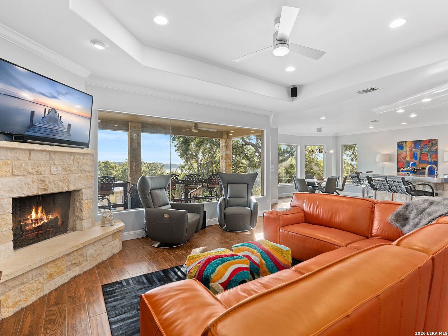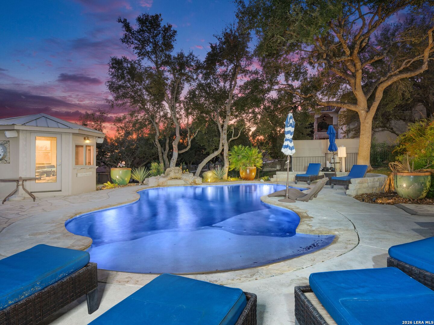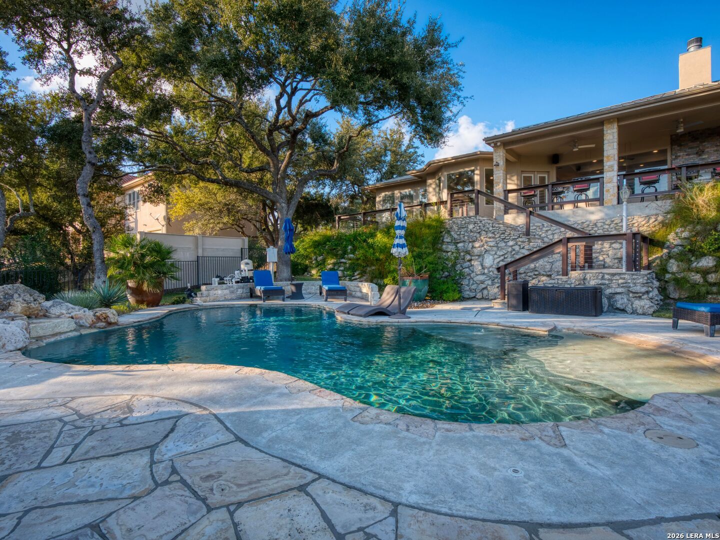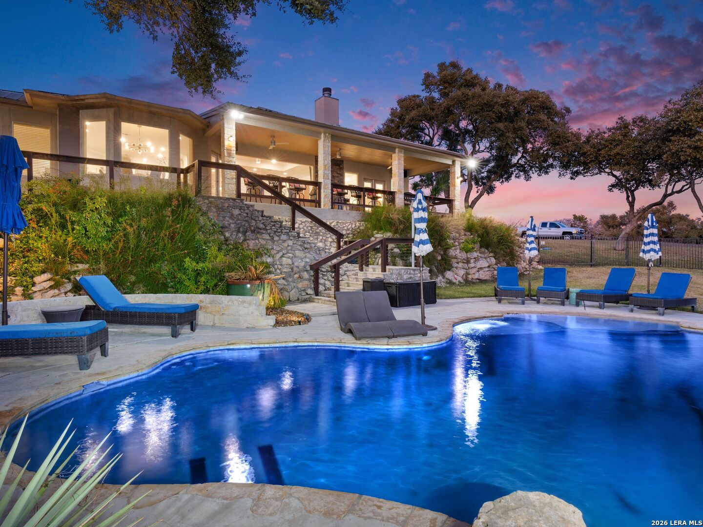 Welcome to your lake-view retreat on a rare double lot, where resort-style outdoor living and move-in ready updates come together to create the ultimate Canyon Lake lifestyle. Recently remodeled and designed for modern living, this open-concept home features a beautifully updated kitchen with generous workspace, stylish finishes, and seamless flow into the dining and living areas-perfect for everyday living or entertaining guests. With 4 spacious bedrooms, 2.5 baths, and a dedicated home office, this home supports today's remote work and flexible living needs. The primary suite offers a private escape with double vanities, walk-in shower, freestanding soaking tub, and French doors leading directly to the outdoor living space. Step outside to experience what today's buyers are searching for-a private backyard oasis featuring a luxury in-ground pool, expansive covered patio, and breathtaking lake views from multiple vantage points. Whether hosting gatherings or enjoying peaceful evenings, this home delivers true indoor-outdoor living. Additional highlights include three-car garage, high ceilings, mature trees, water access, and no city taxes, making this property both functional and lifestyle-driven. Ideally located with convenient access to both Austin and San Antonio, it's the perfect blend of lake living, modern comfort, and everyday convenience.