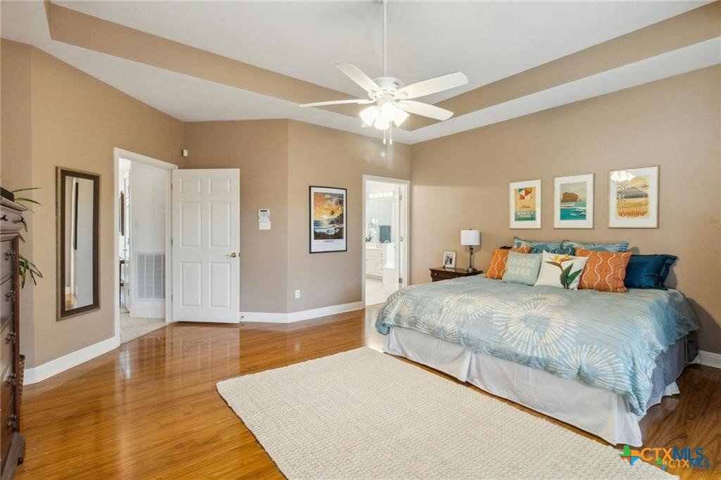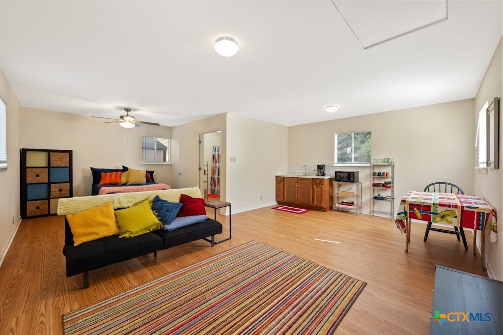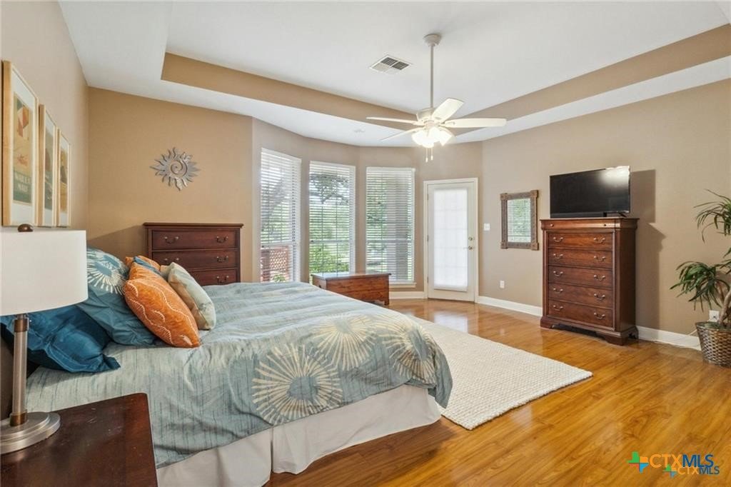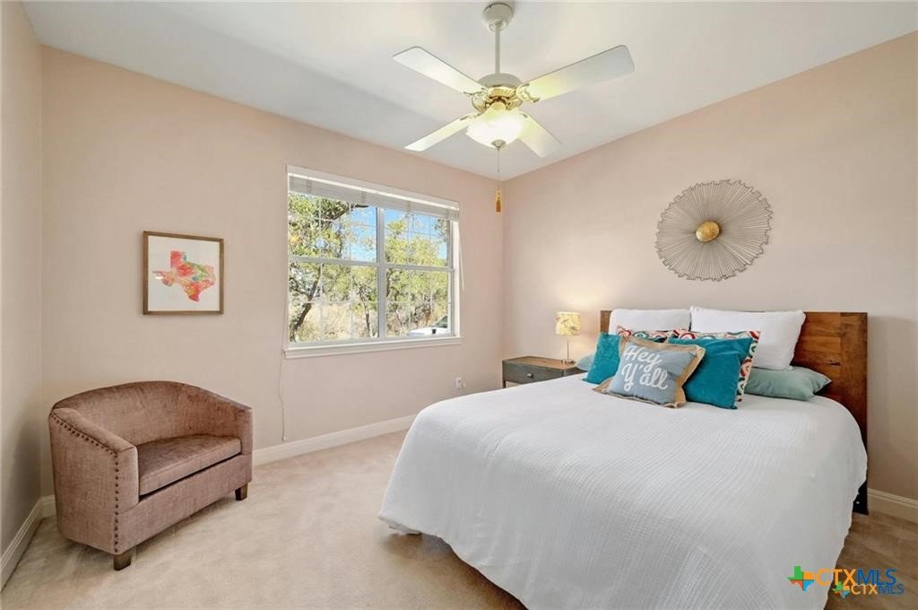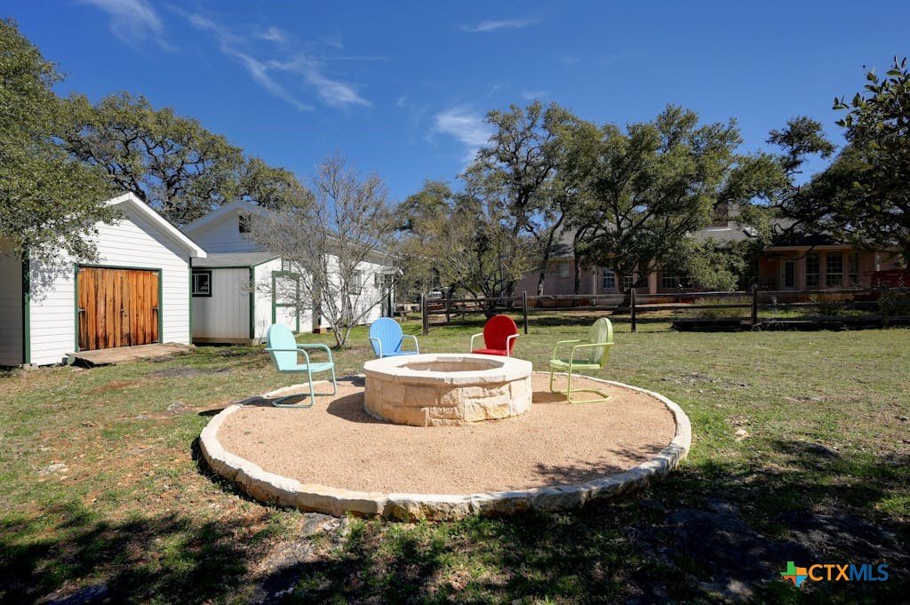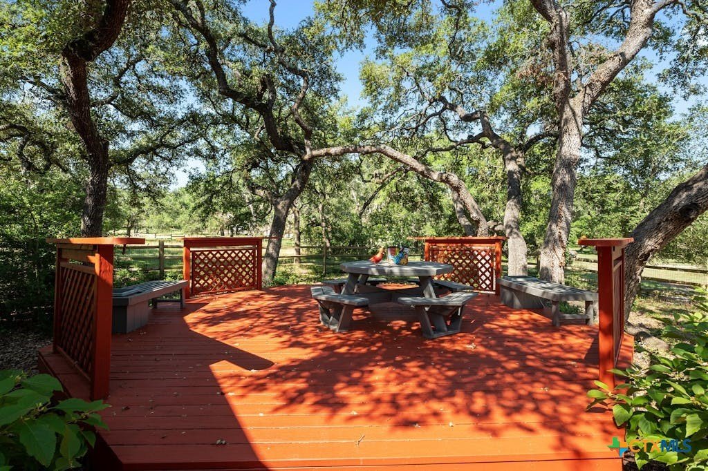 Nestled on 5 picturesque acres covered with majestic oak and elm trees, this wonderful home has much to offer. RECENT BEAUTIFUL UPDATES! The kitchen, primary bath and hall bath have been remodeled. The kitchen includes granite countertops, remodeled cabinets and stainless-steel appliances for your culinary skills. The master and hall baths have new frameless, clear shower glass, brushed nickel fixtures, lights and remodeled cabinets. Upon entering the home, you are greeted by an inviting floor plan with 10 and 12 foot ceilings, creating a spacious, open living environment. With 4 bedrooms and 3 baths, the home offers ample space for comfortable living. The majority of the home has tile and wood flooring. There is abundant storage throughout including 2 bedrooms with walk- in closets and 2 storage outbuildings. Step out onto a large, covered patio and additional deck that is shaded by ancient oaks for a great place to relax or have a glass of wine and watch the sunset while enjoying the new stone fire pit feature. **Roof, gutters and garage door were recently replaced. The main house is 2,708 sq ft., guest house-480 sq ft and workshop-1,200 sq ft. A separate 1 bedroom, 1 bath apartment /480 sq ft. is perfect for the extended family or guests. An RV carport with electric plug plus a 2 car garage! For car lovers and hobbyists, it has a 1,200 sq. ft. metal shop with 220 amp electric, water and 2 overhead doors. A water well with a 2,800 gallon above ground storage tank plus a 3,000-gallon rainwater storage tank. The septic has 2 drain fields for efficient use. Wimberley ISD is an open school district, allowing buyers to have options between Wimberley ISD and San Marcos ISD. The property is a 10 minute drive from downtown Wimberley.