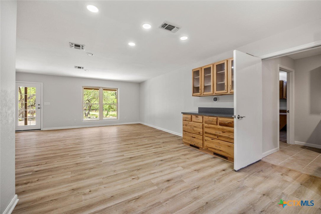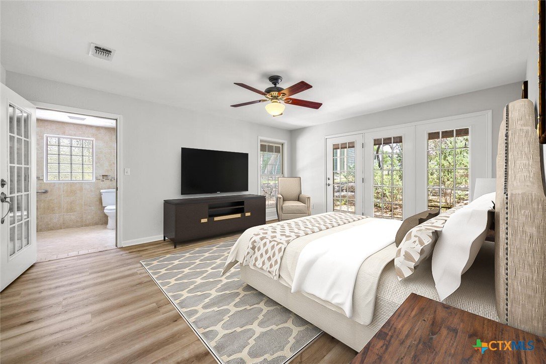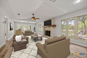 Huge Price Drop! Home, 3 car Garage and room to add more on5.8 acres less than 5 minutes to the square, HEB and more. This 3/2 updated home offers the master on main floor and tons of space with an attached 2 car garage as well as a detached 3 car with additional workshop space. Part of Blanco Bend POA means access to the Blanco River park & tennis courts and gorgeous oak covered land to spread out on. Updated mechanicals, paint in & out, new flooring and much more! Room for additional home if multi-generational is your desire or out buildings. No STR here but ready for your estate living dreams just minutes to everything! Owner financing offered!