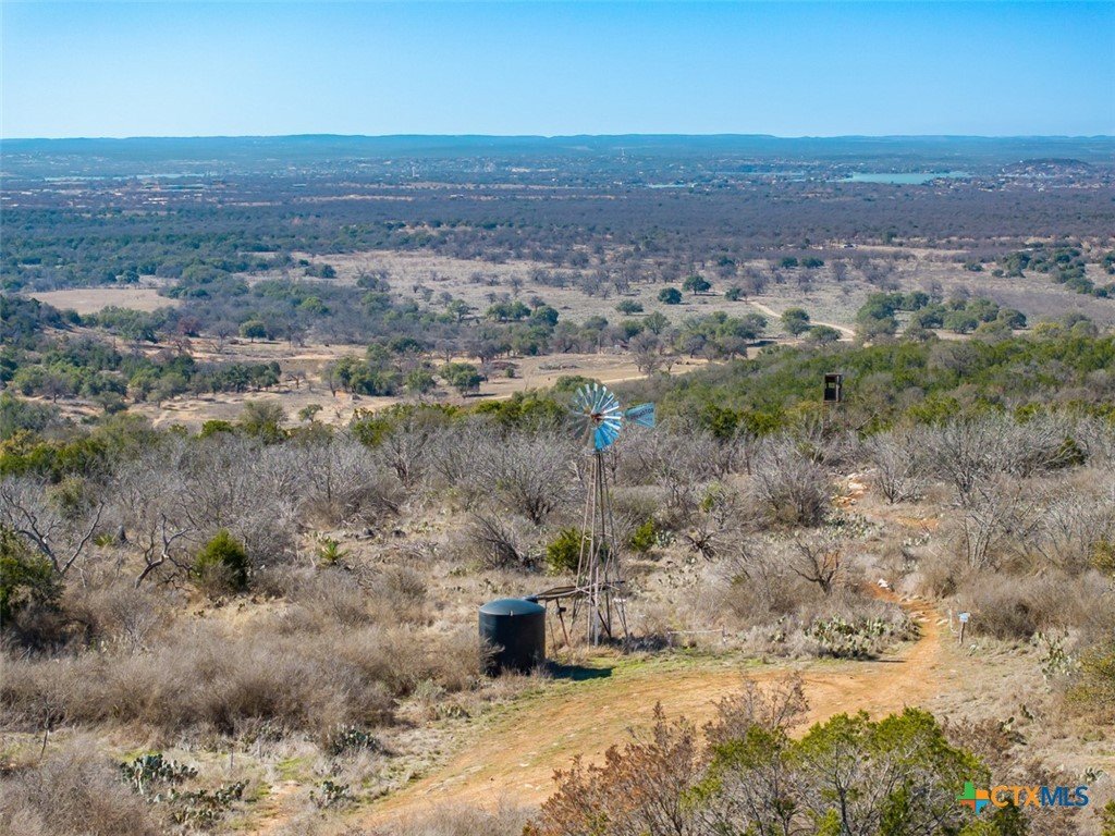 Less than 10 miles north of Marble Falls, this near-urban ranch boasts over 300 feet of elevation change, all-weather roads, two water wells, a 2 Bd /2 Ba barndo + workshop, and one of the best views in Central Texas. Packed with potential for residential and recreational use, Falls Peak Ranch is a functioning mountain bike park but would be best suited for an individual or family compound taking advantage of the panoramic views from multiple homesites and easy access to all things Hill Country. From the entrance of Falls Peak Ranch, the crushed granite road meanders through oak trees and climbs in elevation to a hidden hilltop that overlooks Marble Falls and the Colorado River Valley. Abundant Live Oak savannah provides habitat for white-tailed deer, wild turkey, feral hogs, small mammals, and dozens of species of birds. A small, ephemeral creek runs from the hilltop down the center of the property, where taller Cedar Elm trees and mature Oaks provide shade. Hidden in this creek is a granite cliff face with a series of unique caves that are one of the true gems of Falls Peak. Several small ponds occur along the creek, creating duck, heron, and egret habitats, and providing water for all the Hill Country critters. There are multiple building sites facing east and south, with a hilltop building site that has a potential 360-degree view. These are truly some of the best homesites on the market, you do not want to miss them! A 2 bed/2 bath barndominium with approximately 1,200 sq ft of living space and 900 sq ft of shop space is established. Accompanying the barndominium is an 1,100 sq ft pole barn, 2 water wells with attached windmills, storage tanks, and one solar pump.