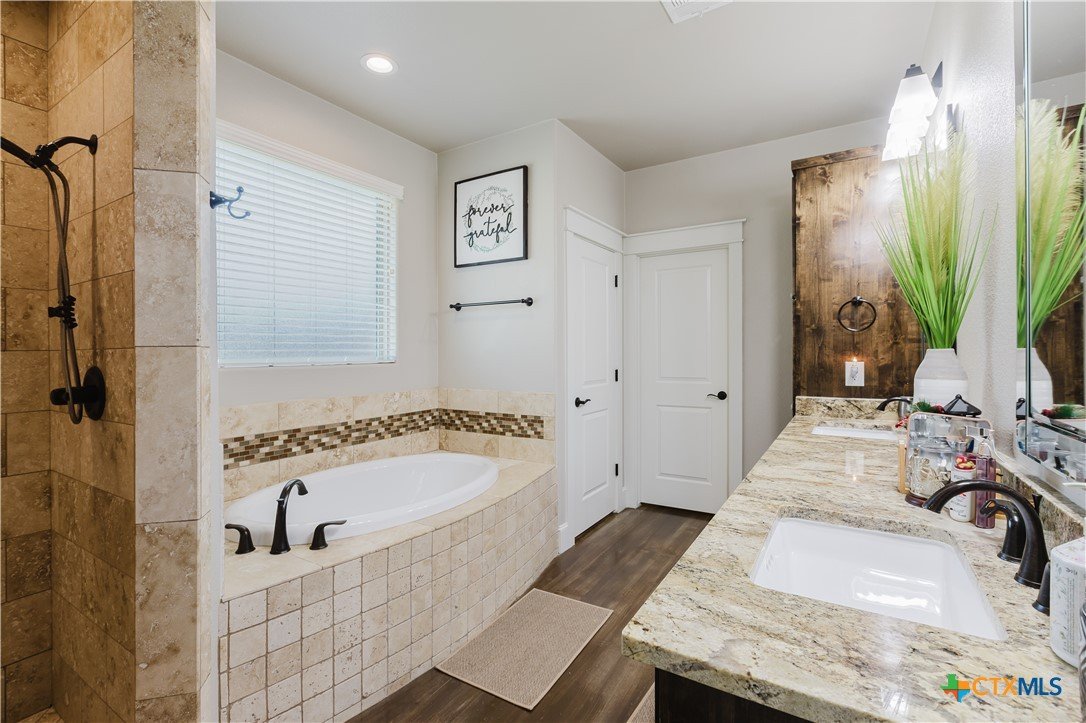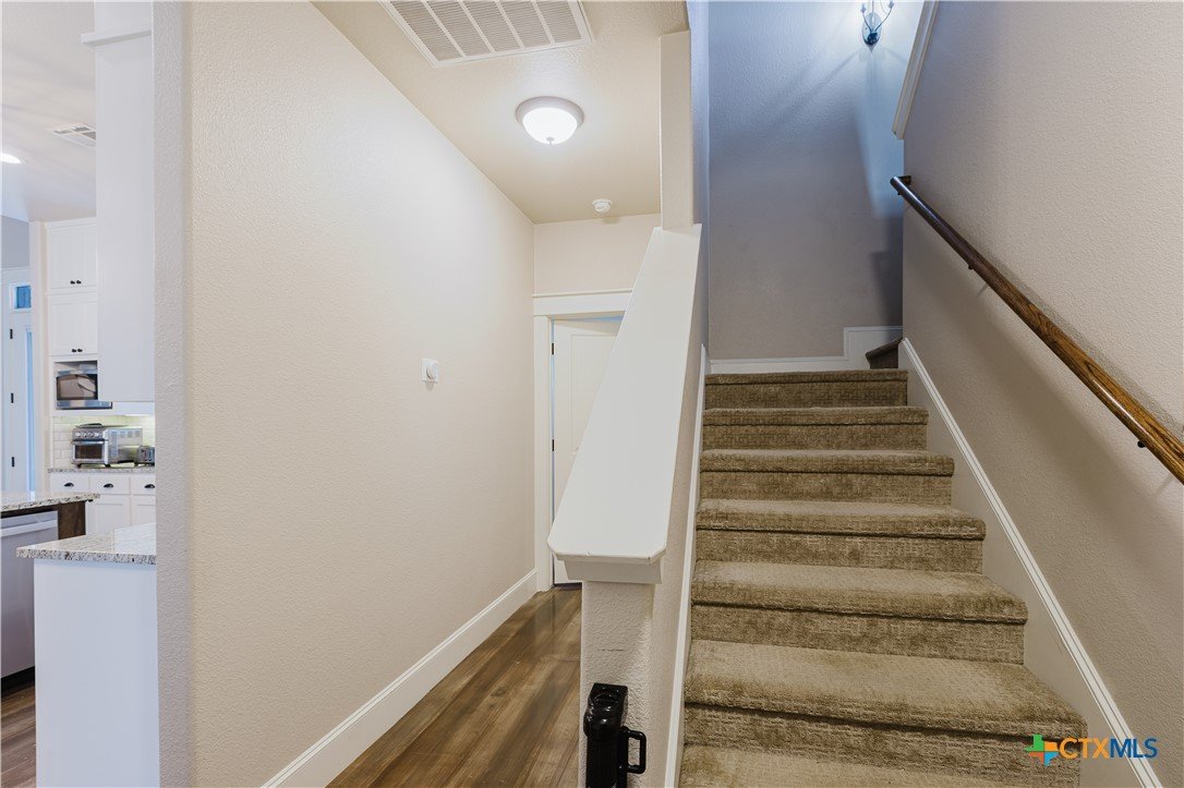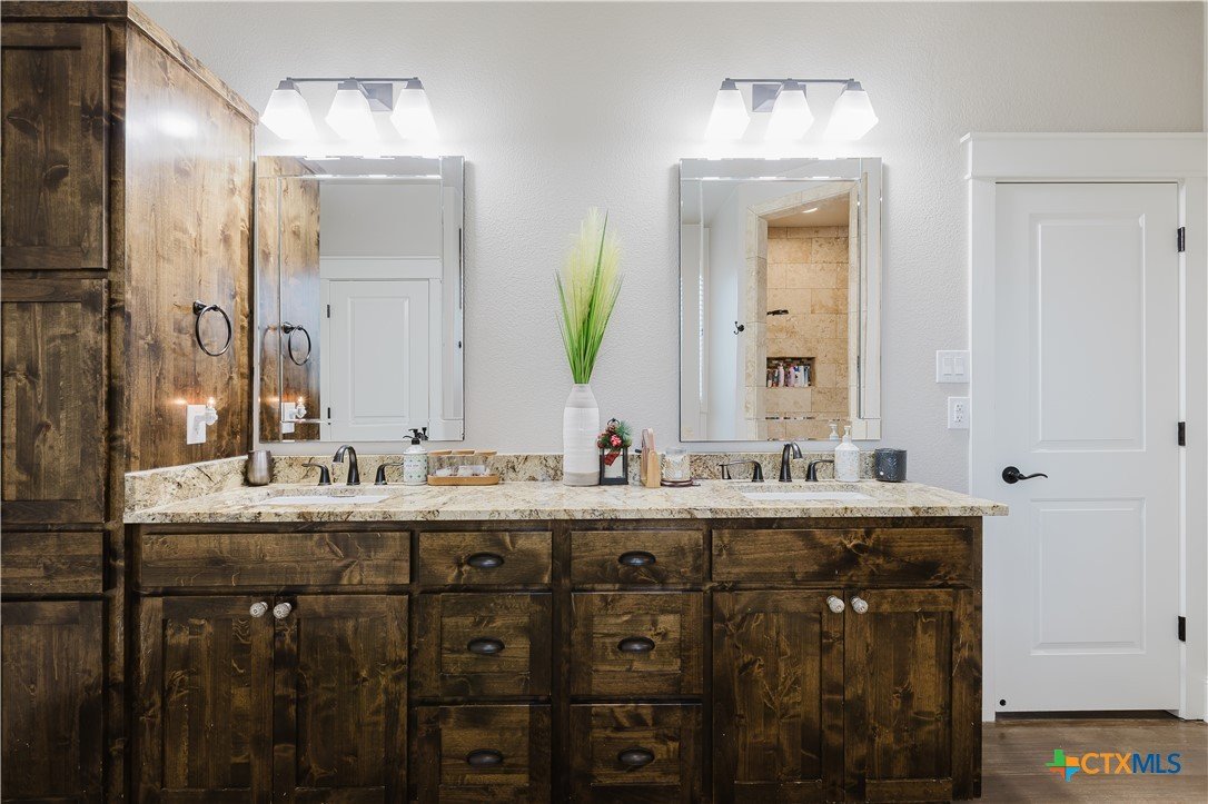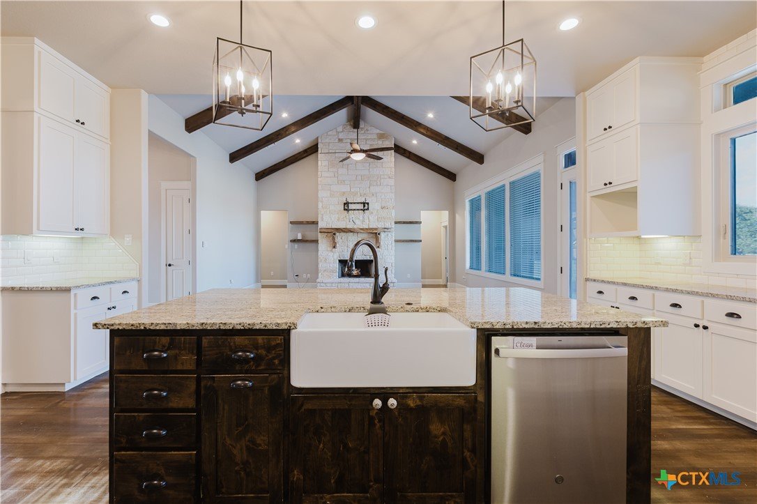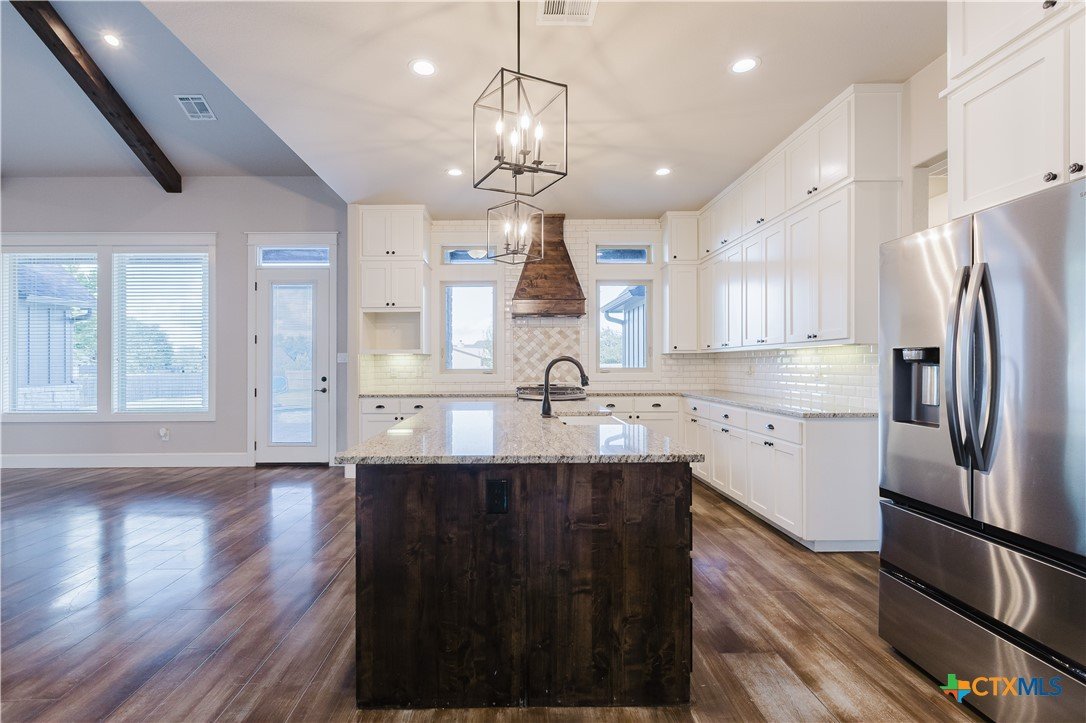 Located on a peaceful cul-de-sac in the heart of Salado, this beautifully designed home sits on a generous 0.7-acre lot and offers a true retreat both inside and out. From the sparkling backyard pool to the converted shed gym, every inch of this property is crafted with purpose and style. Inside, you’re welcomed by cathedral ceilings with wood beams that add depth and architectural interest. The polished, stylized concrete floors throughout the main living space set a bold tone, anchored by a stunning floor-to-ceiling stone fireplace that draws the eye and creates a warm focal point. The kitchen is large and functional, with granite countertops, extensive cabinet storage, and open sightlines to the spacious dining room and living areas—ideal for entertaining or daily life. The dining area easily accommodates large gatherings while remaining open and connected. Downstairs offers 4 bedrooms and 3 full bathrooms, including a guest bedroom with its own en-suite. The other two secondary bedrooms share a full bathroom with dual vanities. The primary suite feels like a private wing, complete with a garden tub, stone walk-in shower, dual vanities, and a massive walk-in closet that connects directly to an oversized laundry room with built-ins and a sink. Upstairs, a flex bonus room can serve as a media room, home office, or 5th bedroom. Additional highlights include a covered front porch, shaded back patio, side-entry garage, extended driveway, solar panels, central vac system and ceiling fans in every room for year-round comfort. All located within the highly rated Salado ISD, this home delivers unique finishes, generous space, and thoughtful features from top to bottom
