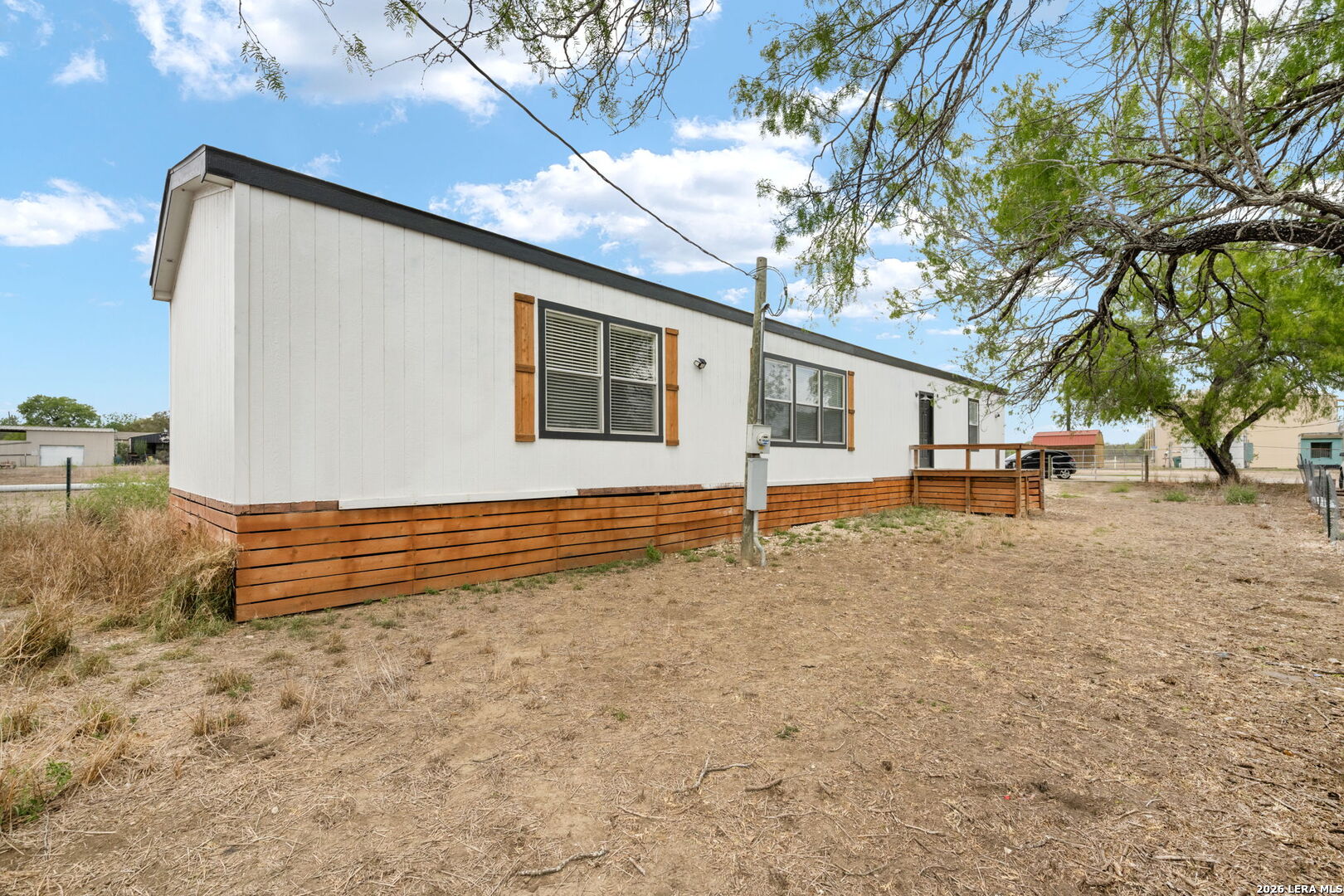 HERE YA GO THE CUTEST HOUSE IN JOURDANTON**** 3 BEDROOM 2 BATH**** YARD IS FENCED WITH STORAGE UNIT*****THE SKIRTING AROUND THE HOME JUST MAKES THE HOUSE POP WITH CHARM****FRONT DECK FOR THOSE RELAXING TIMES TO ENJOY THE OUTDOORS****GREAT OPEN FLOOR PLAN WITH LARGE KITCHEN AND CENTER KITCHEN BAR FOR ALL YOUR ENTERTAINING*** PRIMARY BED AND BATH SPLIT FLOORPLAN*****BUILTIN HUTCH IN THE DINING ROOM***UTILITY ROOM OFF THE KITCHEN***THIS HOME IS AN OVER SIZED SINGLE WIDE*****SELLERS DID SOME UPDATING INSIDE!