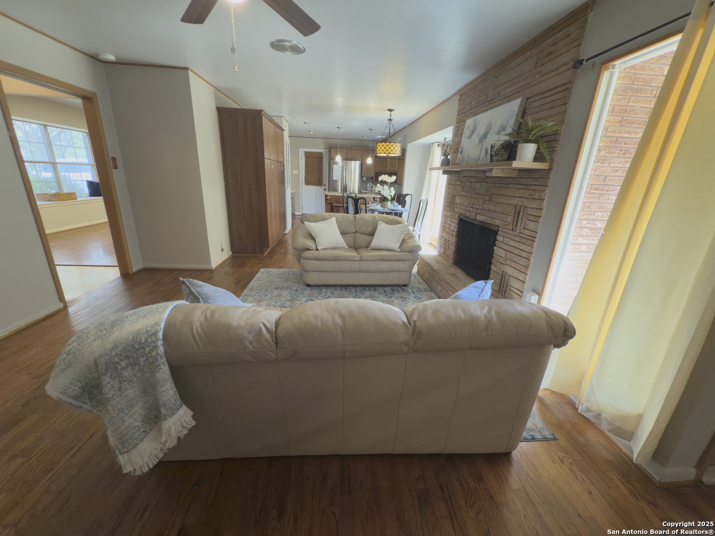 Step into this charming 3-bedroom, 2-bathroom single-family, one-story, home located in the desirable Dreamland Oaks subdivision of San Antonio. This 1607 square foot residence features central air and forced air heating, a cozy fireplace, and an attached two-car garage. Enjoy the benefits of a prime location, close to Larkspur Elementary School, Jackson Middle School, and Churchill High School. NO HOA. Nice large backyard! Short-term lease available; rates vary by term and market conditions.