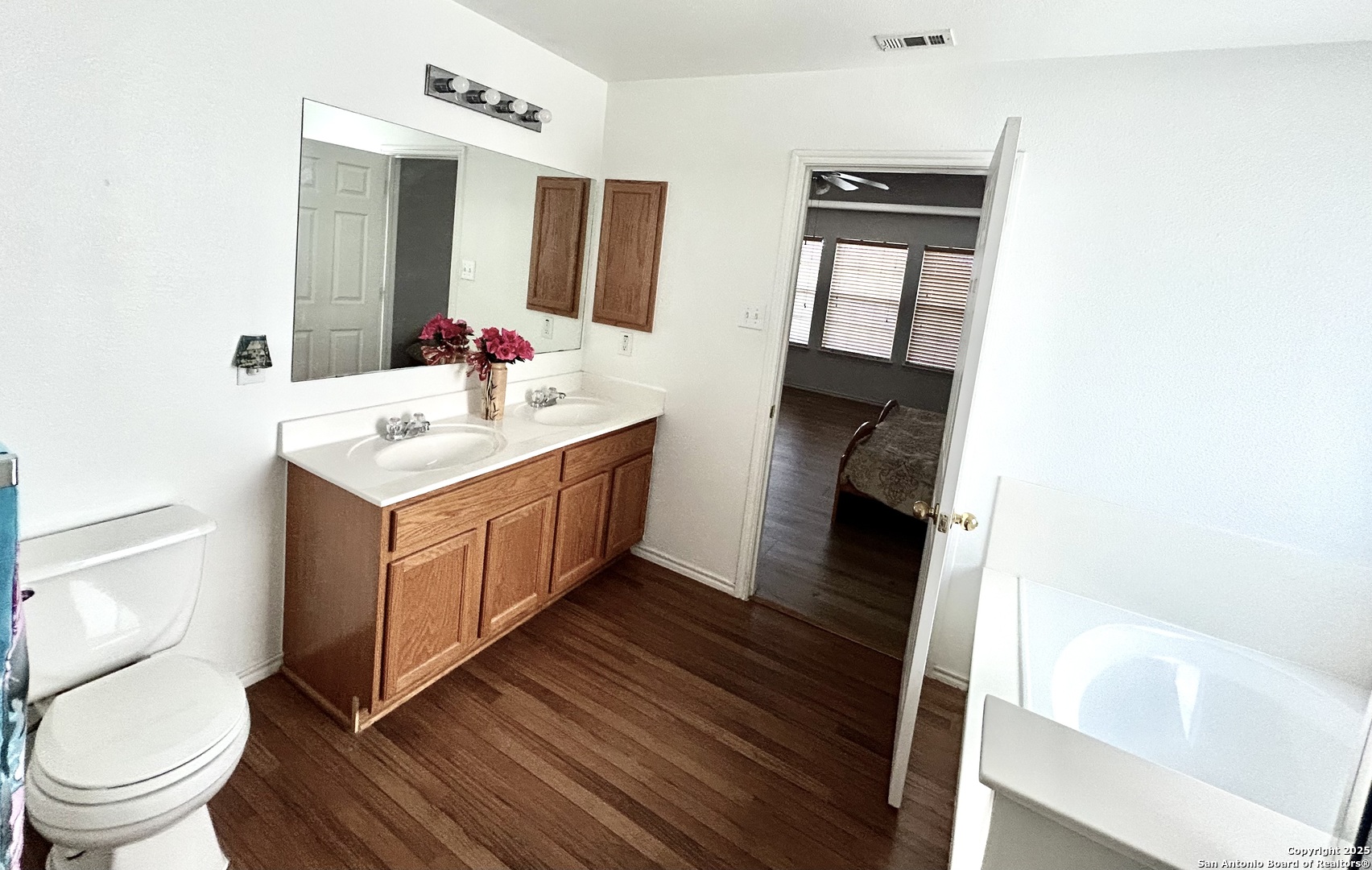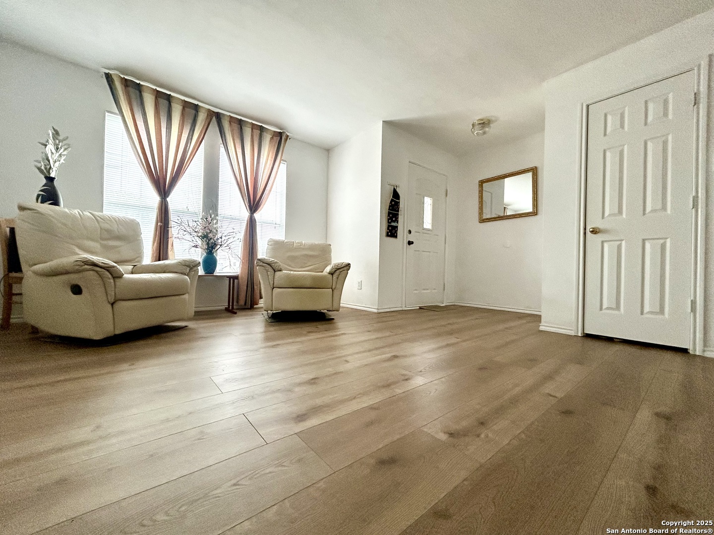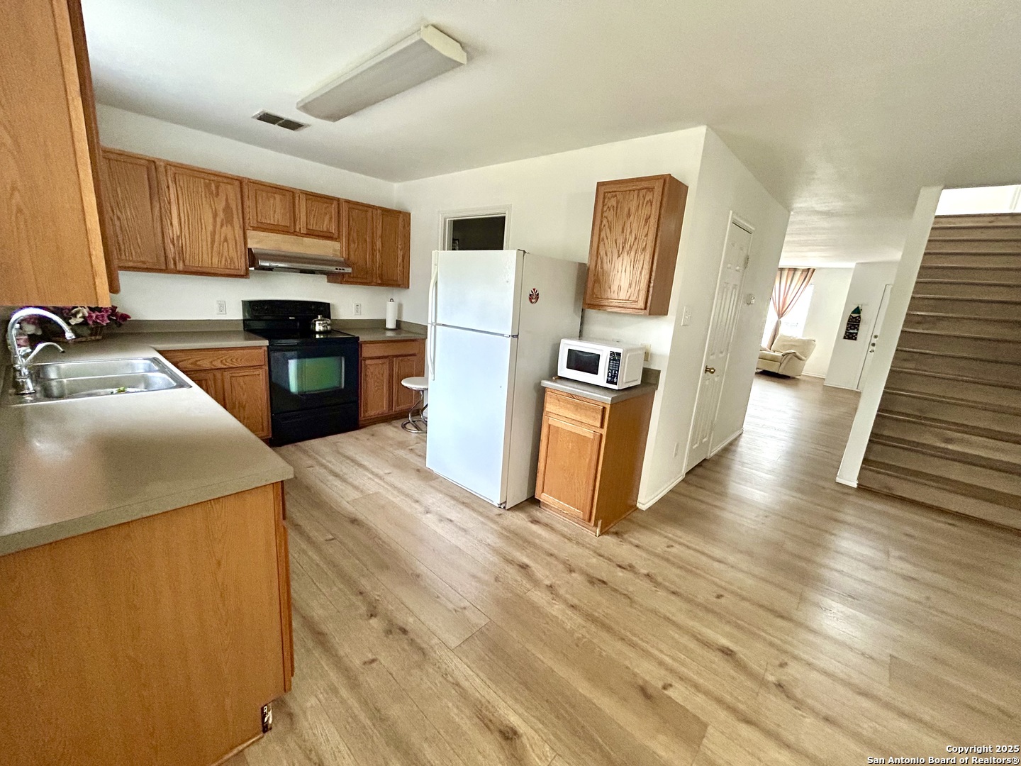 Great location, Open floor plan, Real oak staircase and Luxury vinyl plank flooring, Oversized master bedroom, oversized closets, Full bathrooms with double vanity, Covered patio, Mature oak and jujube trees. Welcome to this beautifully maintained two-story home located in the established River Mist Subdivision. This 3-bedroom, 2.5-bath home features an open floor plan with flexible living spaces perfect for both relaxation and entertaining. Stylish upgrades include high-end vinyl flooring throughout and real oak wood stairs that add warmth and character to the interior. The oversized primary suite offers a peaceful retreat with a large closet, double vanity, separate garden tub, and shower. The spacious secondary bedrooms are designed with comfort in mind and all rooms are equipped with ceiling fans. Step outside to a covered patio that opens to a large, fenced backyard filled with mature oak trees and exotic jujube trees, creating a tranquil outdoor escape. This prime location offers unbeatable convenience-just minutes from UTSA, USAA, the Medical Center, La Cantera, and The Rim.