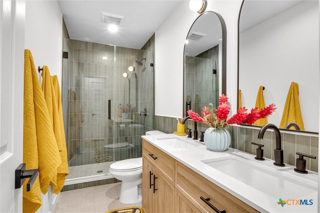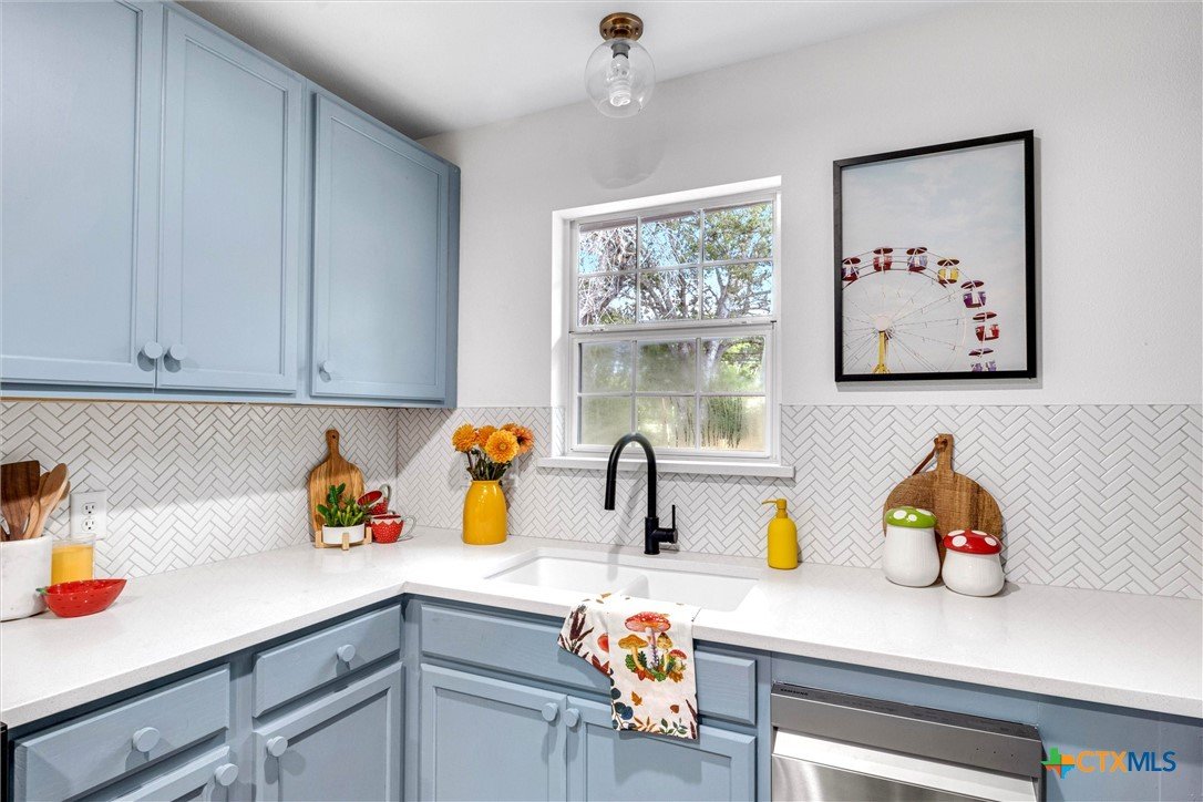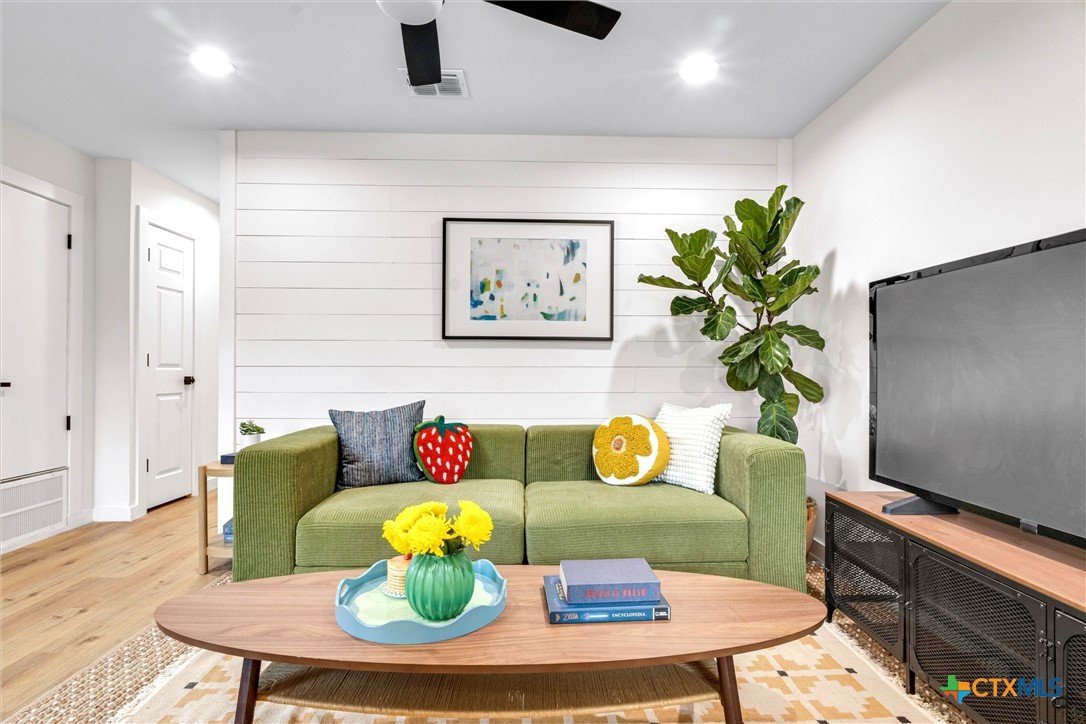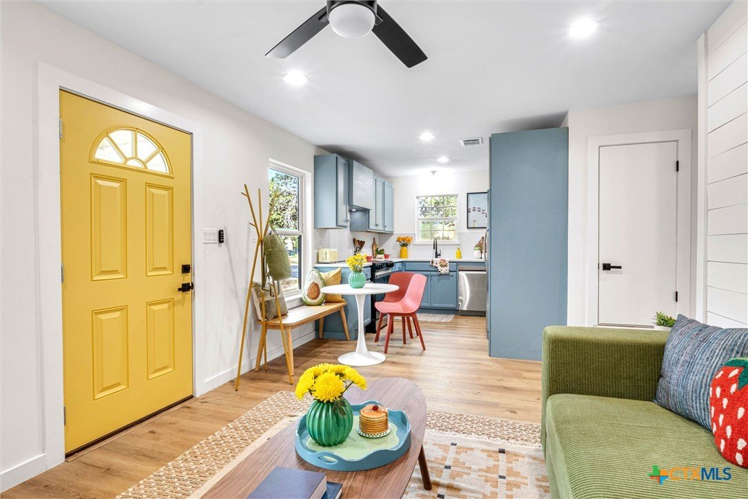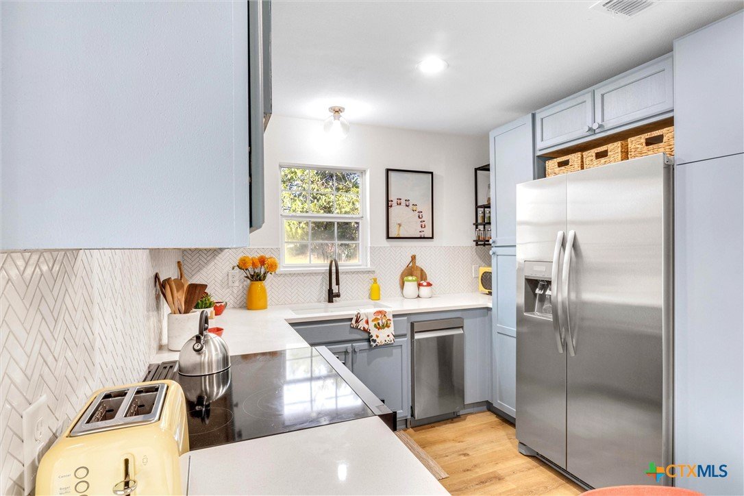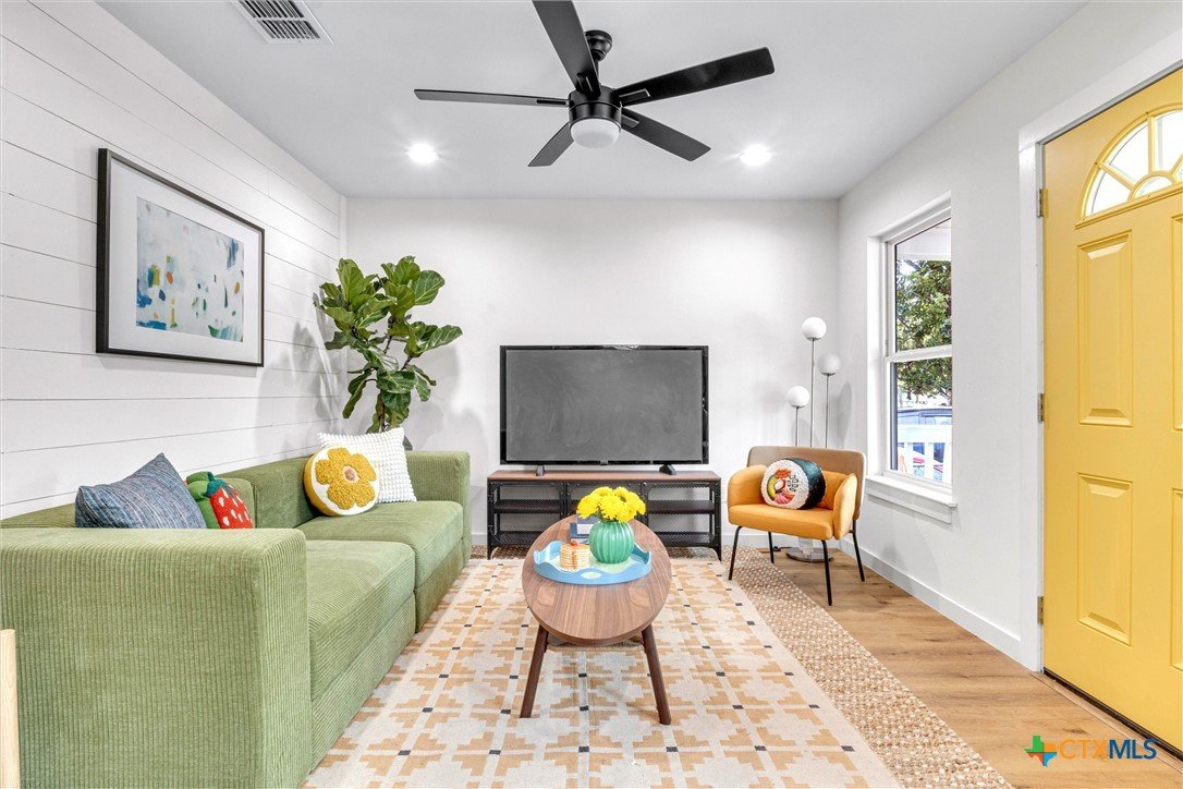 *Seller is offering up to $6k toward a rate buydown! This home also qualifies for a reduced interest rate through Primis Mortgage! See flyers in photos for details.* Welcome to 1103 Marshall Street, an adorable ’50s-era cottage reimagined for a modern, vibrant world! This home renovation was filmed for a major cable network TV show that will air in 2025. All components and systems have been upgraded since summer 2024, including HVAC, electrical, plumbing, roof, insulation and water heater. The interior makes the most of its space, featuring a primary suite, three guest bedrooms and a full guest bath with double vanity and walk-in shower. Natural light fills the open-concept living/dining area through brand-new windows and gleams off the new wood-look vinyl floors. The kitchen is where fun meets functional - all new Frigidaire appliances, shaker-style cabinets, quartz countertops, herringbone tile backsplash and built-in washer and dryer. Step out the back door onto a massive 25x10-foot deck that is sure to make this home the spot for friendly gatherings! The back and side yards leave plenty of room for pets or outdoor fun, and in the front, the new siding, exterior paint, privacy fence and fresh sod help this property pop with cute curb appeal! Located less than 2 miles from Texas State and 4 miles from the outlet malls - with tons of shopping, dining and entertainment between - this property is a fantastic investment in an historic neighborhood that’s primed for a revival! (Note: This home renovation was filmed for a major cable network TV show that will air in 2025.)