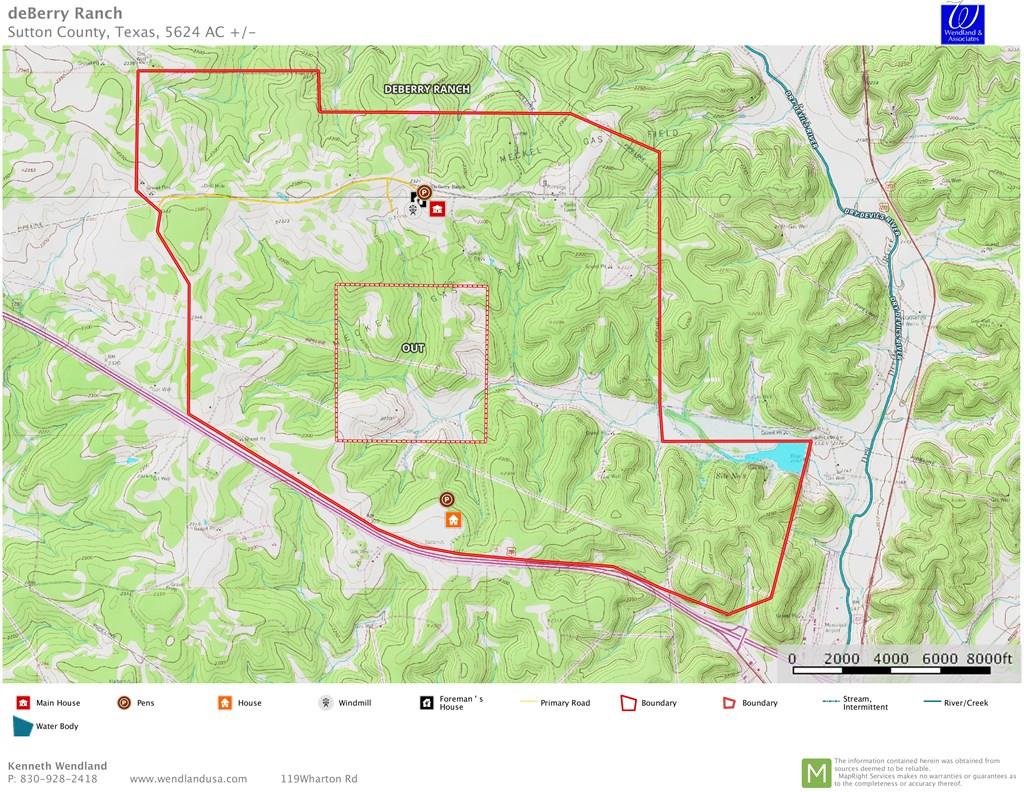 This beautiful ranch is 4 miles W of Sonora. The paved IH 10 frontage rd is the S boundary.The W boundary is paved CR 108. Paved Private Rd 1104 leads to the headquarters and the gas substation.Been in the family for over 75 years. Most of the improvements are over 50 years old & the main house has not been lived in for over 30 years. There are 3 sets of corrals, 8 water wells with submergible pumps or windmills.Water is piped to the rest of the ranch with numerous troughs and earthen ponds.There is an abandoned artesian well "Wall's Well " which supplied early settlers and Indians with fresh water.Currently being used for agriculture as grazing cattle and goats The ranch has been leased for hunting for hunting of whitetail deer and turkey.Terrain ranges from gently rolling to hilly.