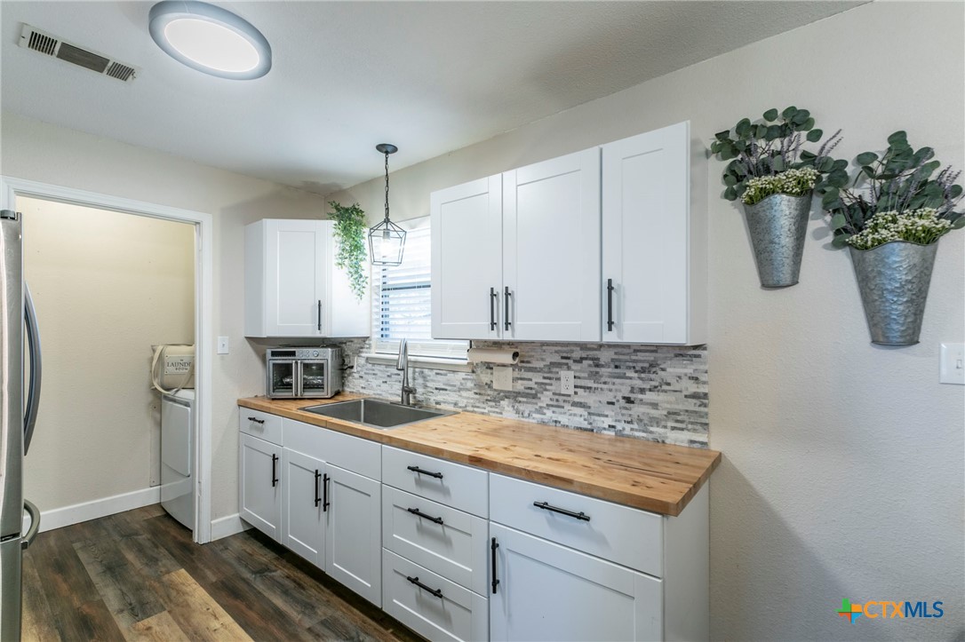 This recently updated 2-bedroom, 1-bath home is move-in ready with modern finishes and stylish updates throughout. Featuring neutral paint and durable LVT flooring, the interior feels fresh and inviting. The updated kitchen showcases crisp white cabinetry, butcher block countertops, and stainless steel appliances, creating a bright and functional space for cooking and entertaining. Step outside to enjoy a fully privacy-fenced backyard shaded by mature trees—perfect for unwinding or hosting friends and family. Conveniently located near shopping and schools, this home is part of the highly regarded Belton ISD, with students attending Hubbard Branch Elementary, Belton Middle School, and Belton High School. Just under 3 miles from UMHB, 9 miles from Baylor Scott & White Hospital, and only 1 mile from I-35, this location offers easy access to work, travel, and daily essentials. Don’t miss this fantastic opportunity—schedule your showing today!