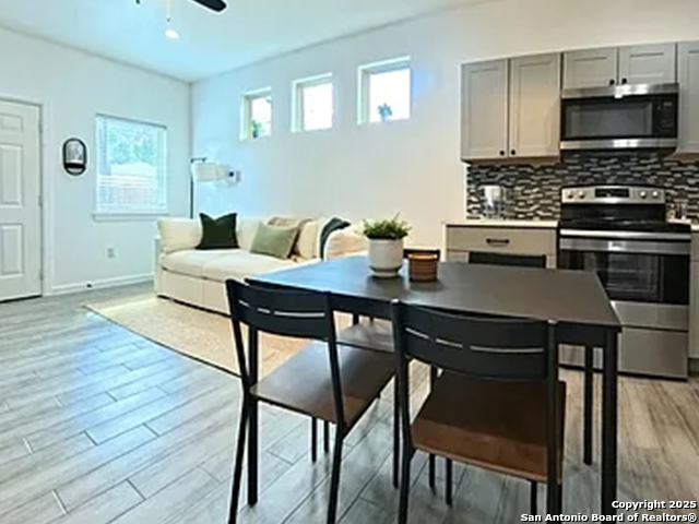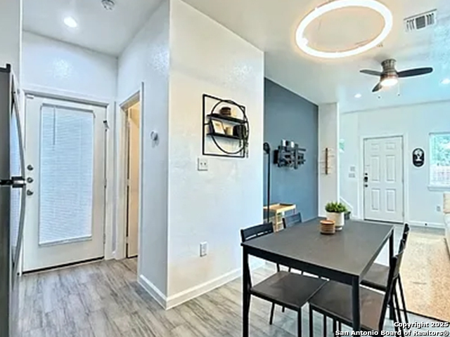 Enjoy more for less! Now's the time to take advantage of the special rent for this partially furnished 3 bed, 2.5 bath home (built in 2022) located minutes from downtown. Open floor plan with eat-in kitchen (Includes Refrigerator), primary bedroom down stairs with walk-in closet and full bath, two upstairs bedrooms with full bath, upstairs balcony (with storage closet), upstairs laundry area (stackable washer/dryer included), high speed internet and security system (includes exterior camaras). Located near city highways for convenient travel to local bases (Lackland AFB, Fort Sam Houston, San Antonio Medical Center), shopping, and downtown. Simple furnishings to help make moving in a little easier. Pets welcome (approval required; monthly and/or admin fees vary). Showings by appointment.