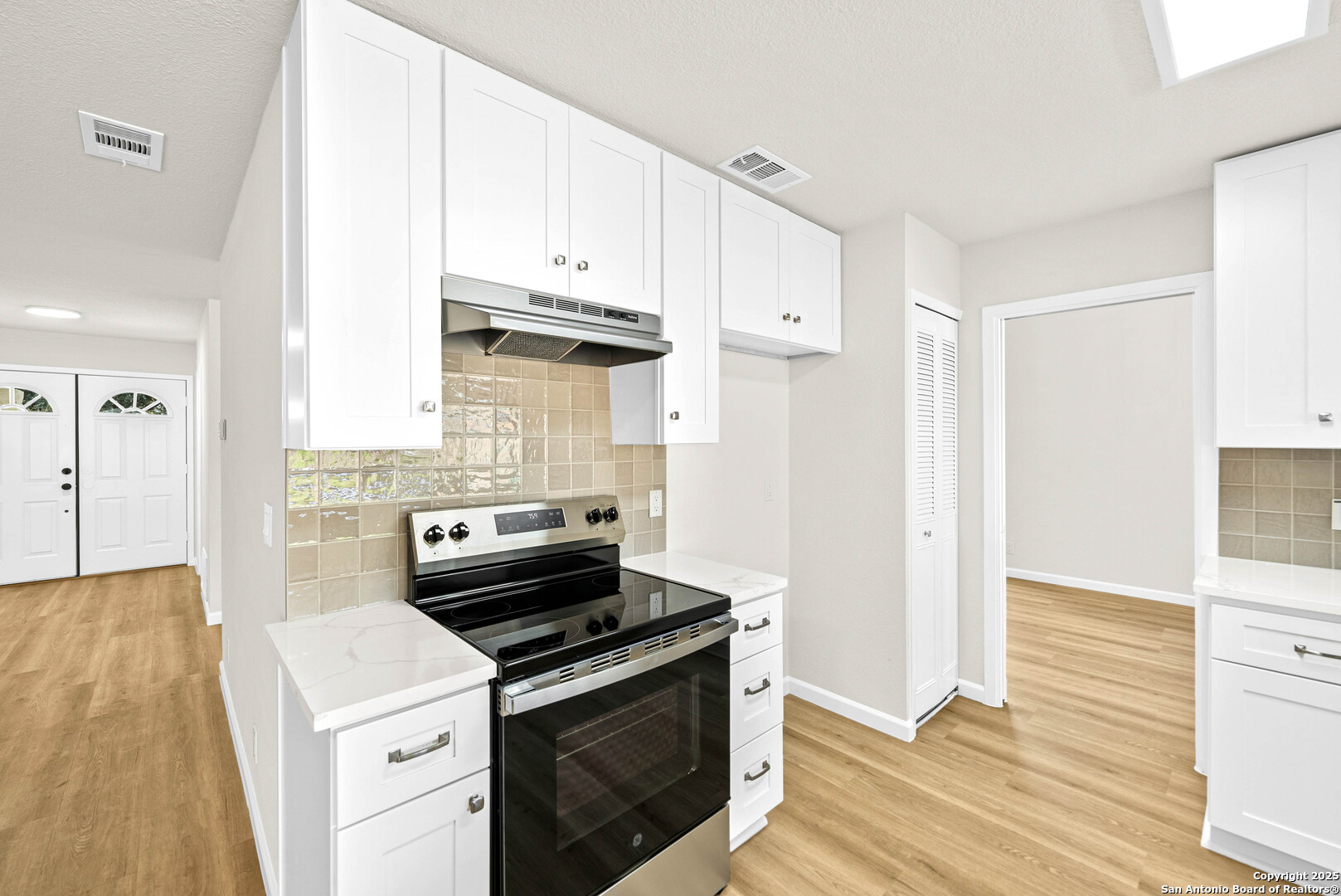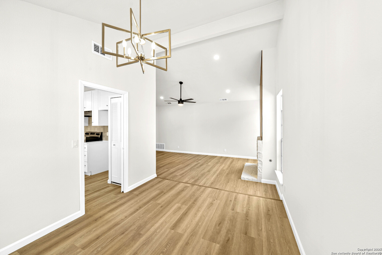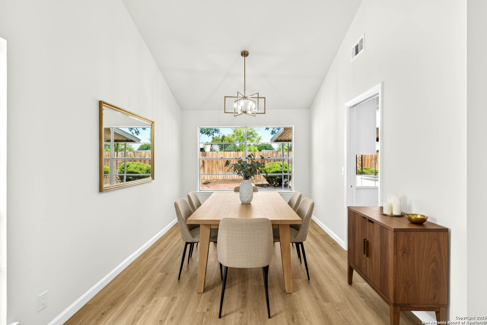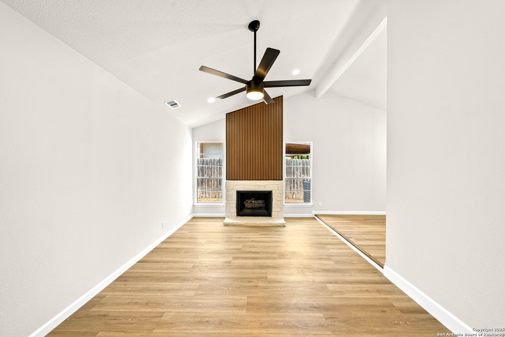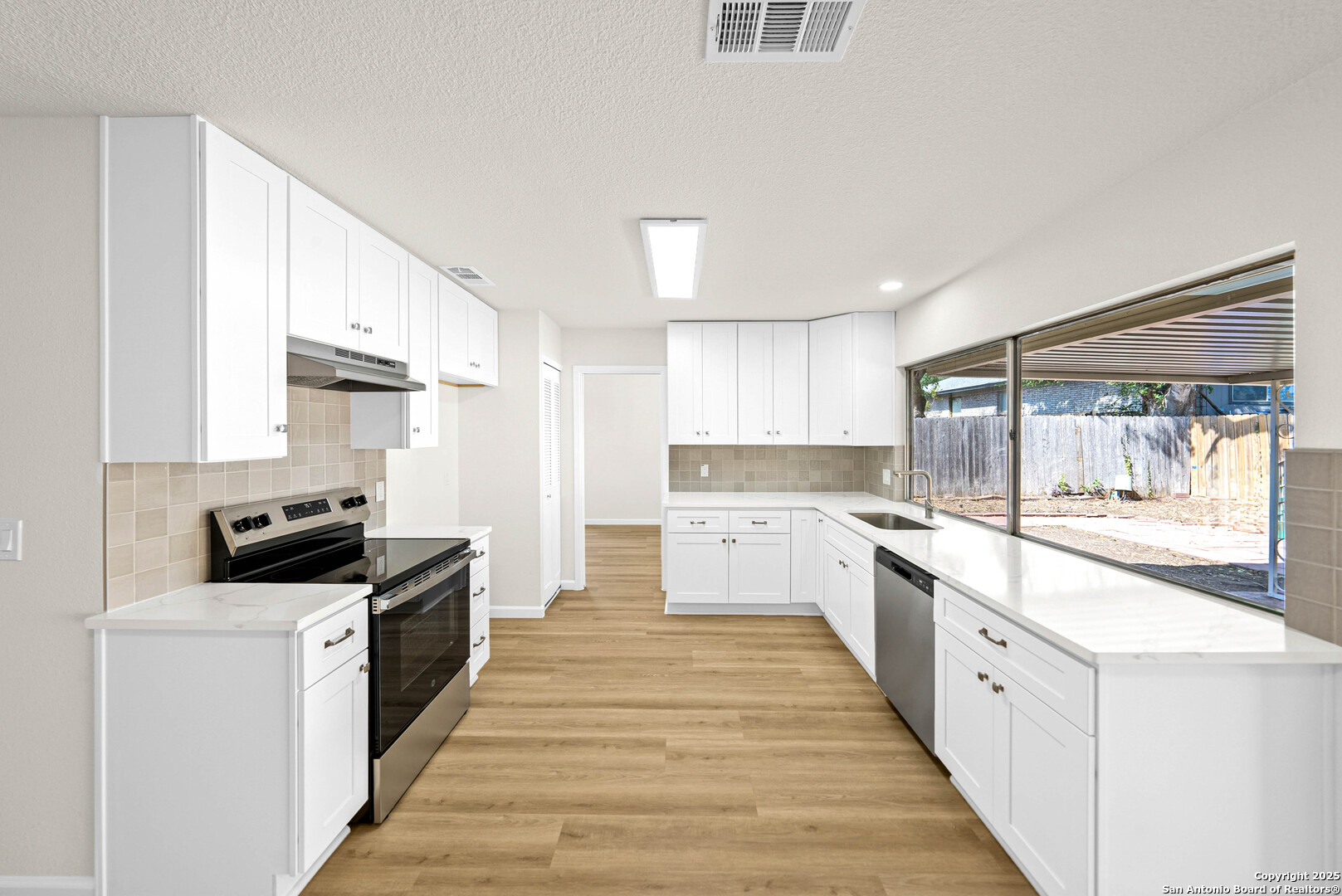 Welcome to 1106 Rio Linda St- a beautifully remodeled traditional home, where modern updates meet timeless charm. Featuring 3 spacious bedrooms and 2 full baths, this inviting residence boats an open-concept layout filled with natural light and new wood-like flooring. The living room offers soaring ceilings, a sleek accent wall with a cozy fireplace, and plenty of room for family gatherings. The bright kitchen shines with crisp new white cabinetry, stainless steel stove, quartz countertops, and a picture window overlooking the backyard. Enjoy meals in the charming dining area with vaulted ceilings and an elegant chandelier. A separate dining area also awaits for large gatherings perfect for hosting! Double doors welcome you into the primary bedroom with an expansive wall of closets that provide abundant storage. A stylish ceiling fan adds comfort and contemporary flair, while natural lighting peeks through a private outdoor access. The adjoining en-suite bath features a beautiful walk-in shower that showcases full-height tile walls and a sleek floor pan. Including a spacious double vanity with new quarts countertops, plumbing fixtures, and a large wall-to-wall mirror enhancing the sense of space and light, illuminated by recessed lighting above. This home provides the perfect blend of community and modern comfort. Schedule your showing today!