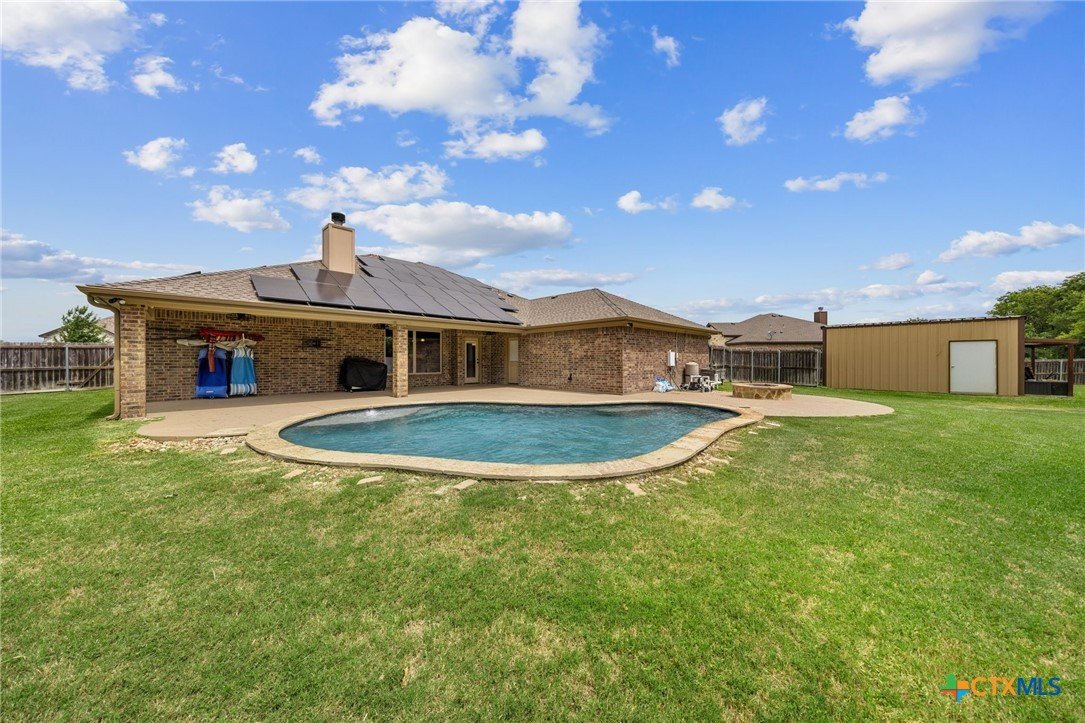 **Seller Offering $5,000 for Closing Costs** This stunning ONE-OWNER, meticulously cared-for home offers everything you need! Features include a LOW TAX rate, a beautiful in-ground SALTWATER pool, and a storage building. The exterior is enhanced with color-changing outdoor LED lighting and paid-off solar panels, ensuring energy efficiency and lower utility costs. Step inside to discover four spacious bedrooms, two dining areas, and a dedicated office. The heart of the home is an elegant kitchen featuring a gorgeous, easy-to-maintain solid walnut countertop island that adds warmth and elegance to the space. For those who enjoy tinkering or need extra storage, a workshop pre-wired for electricity is an excellent addition. Enjoy improved water quality and extended appliance life with the included water softener. Need additional space? The fully floored attic provides ample storage, and the epoxy-coated garage floor adds both durability and style to your home. Don't miss out on this incredible opportunity to make this house your dream home! Plus, don't forget about the low tax rate!