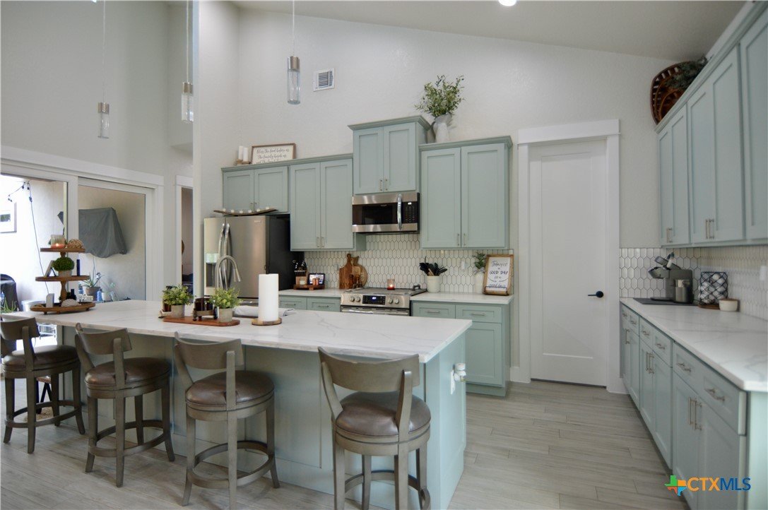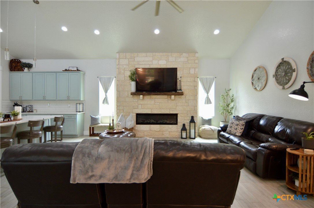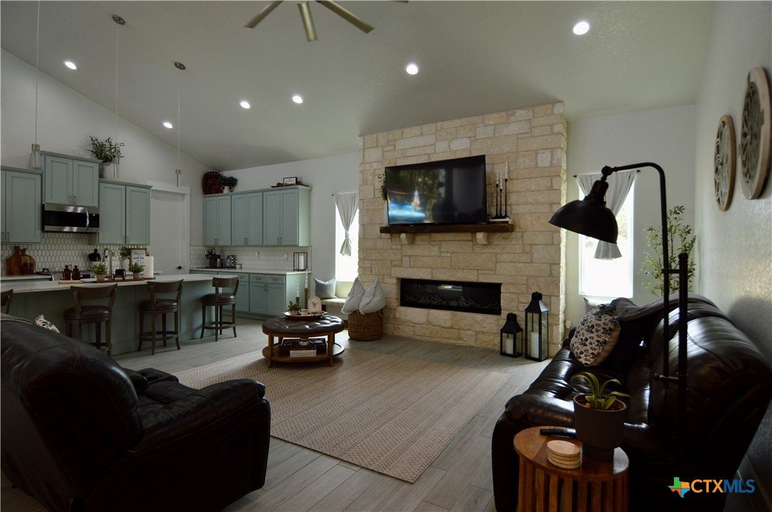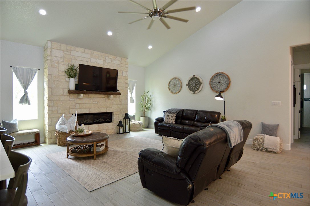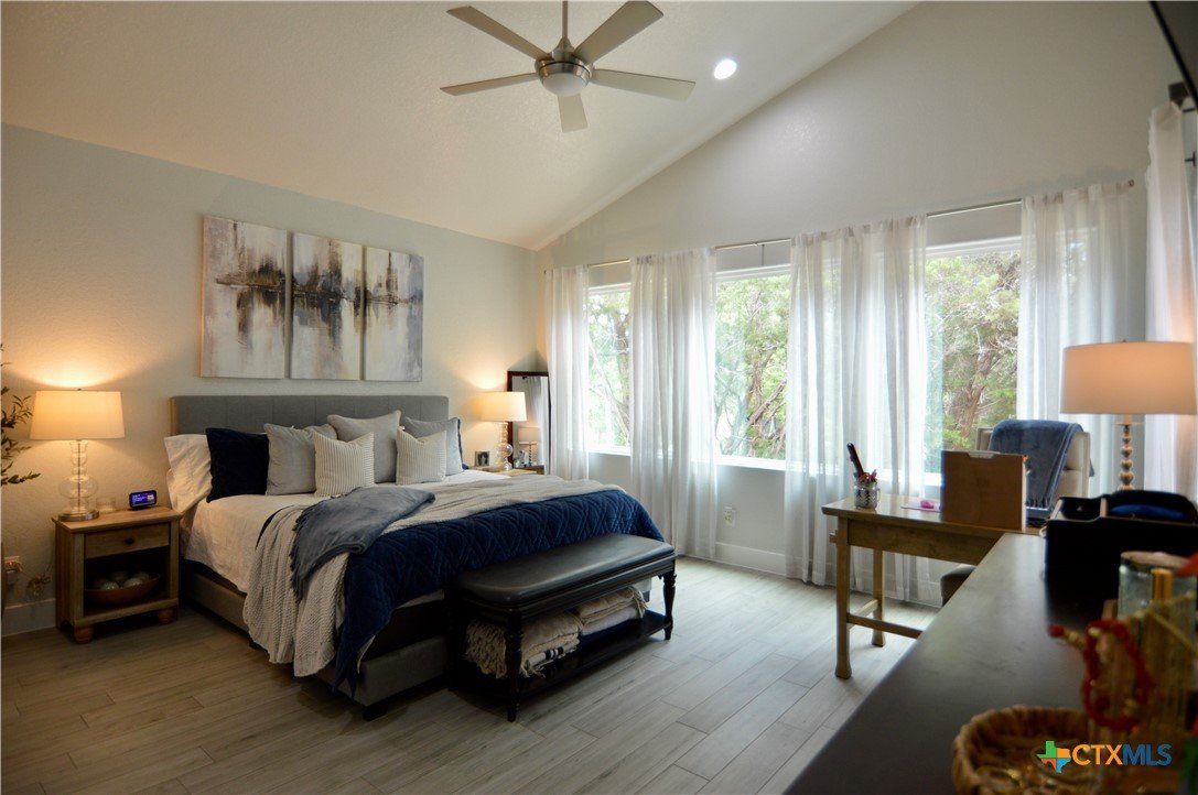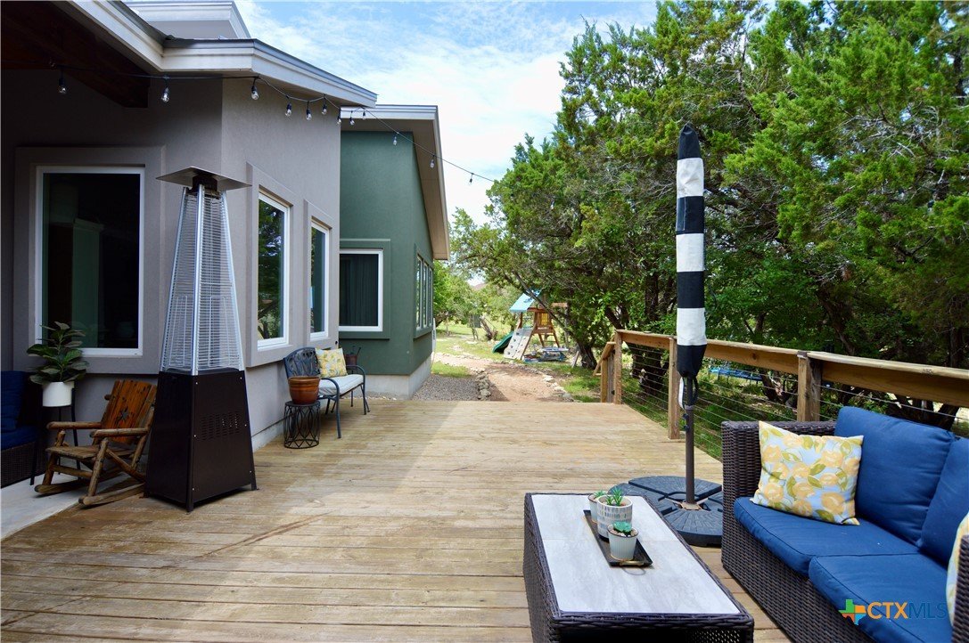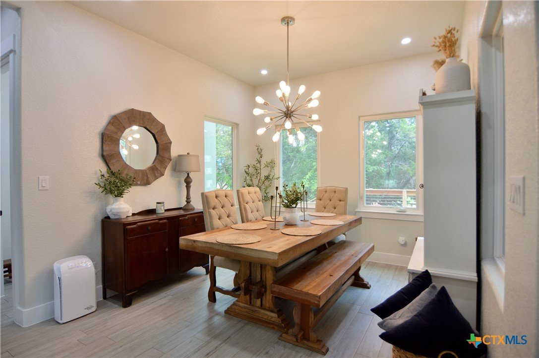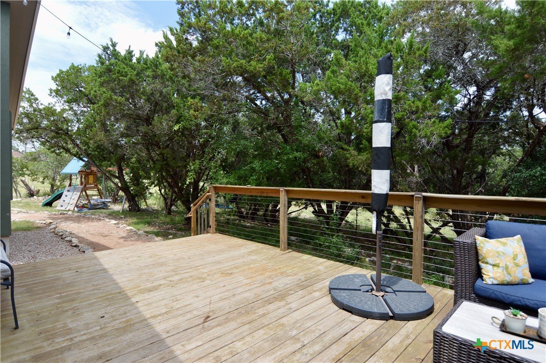 Nestled in the serene Mystic Bluffs community of Canyon Lake, this stunning 2,503 sqft home on a sprawling 1-acre lot offers the perfect blend of luxury and Hill Country charm. With 3 spacious bedrooms, 3 full baths, and 1 half bath, this single-family residence is ideal for families, entertainers, or those seeking a tranquil escape. Step inside to an open-concept living area with soaring ceilings, abundant natural light, and breathtaking views of the surrounding landscape. The gourmet kitchen is a chef’s dream, featuring sleek quartz countertops, stainless steel appliances, and a large island perfect for gatherings. The primary suite is a private oasis with a spa-inspired ensuite boasting dual vanities and generous closet space. Two additional bedrooms, each with access to full baths, offer flexibility for guests or a home office. Outside, the expansive lot is an entertainer’s paradise, featuring a large deck ideal for hosting and a custom backyard fire pit for cozy evenings under the stars. Surrounded by mature trees, the property provides privacy and ample space for future additions like a pool or garden. Enjoy the freedom of no HOA in this nicely maintained neighborhood, which benefits from basic restrictions to preserve its charm and appeal. Just minutes from Canyon Lake, you’ll have easy access to boating, fishing, and hiking.