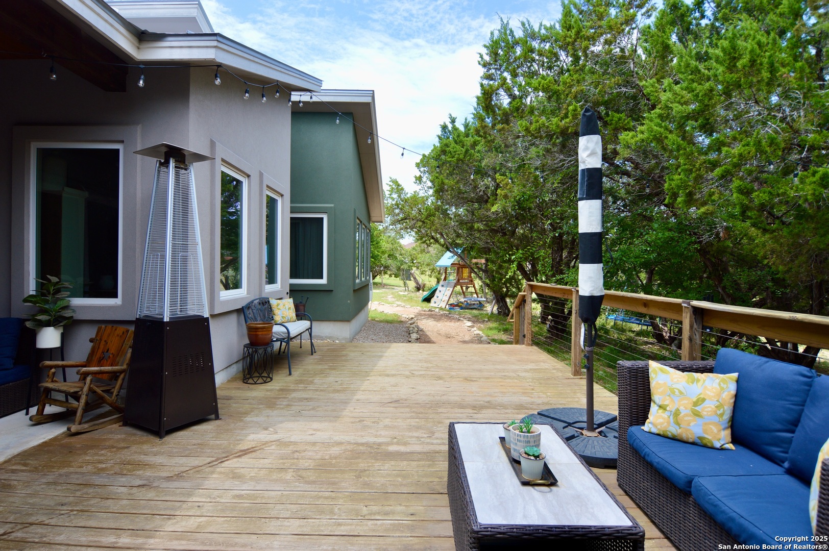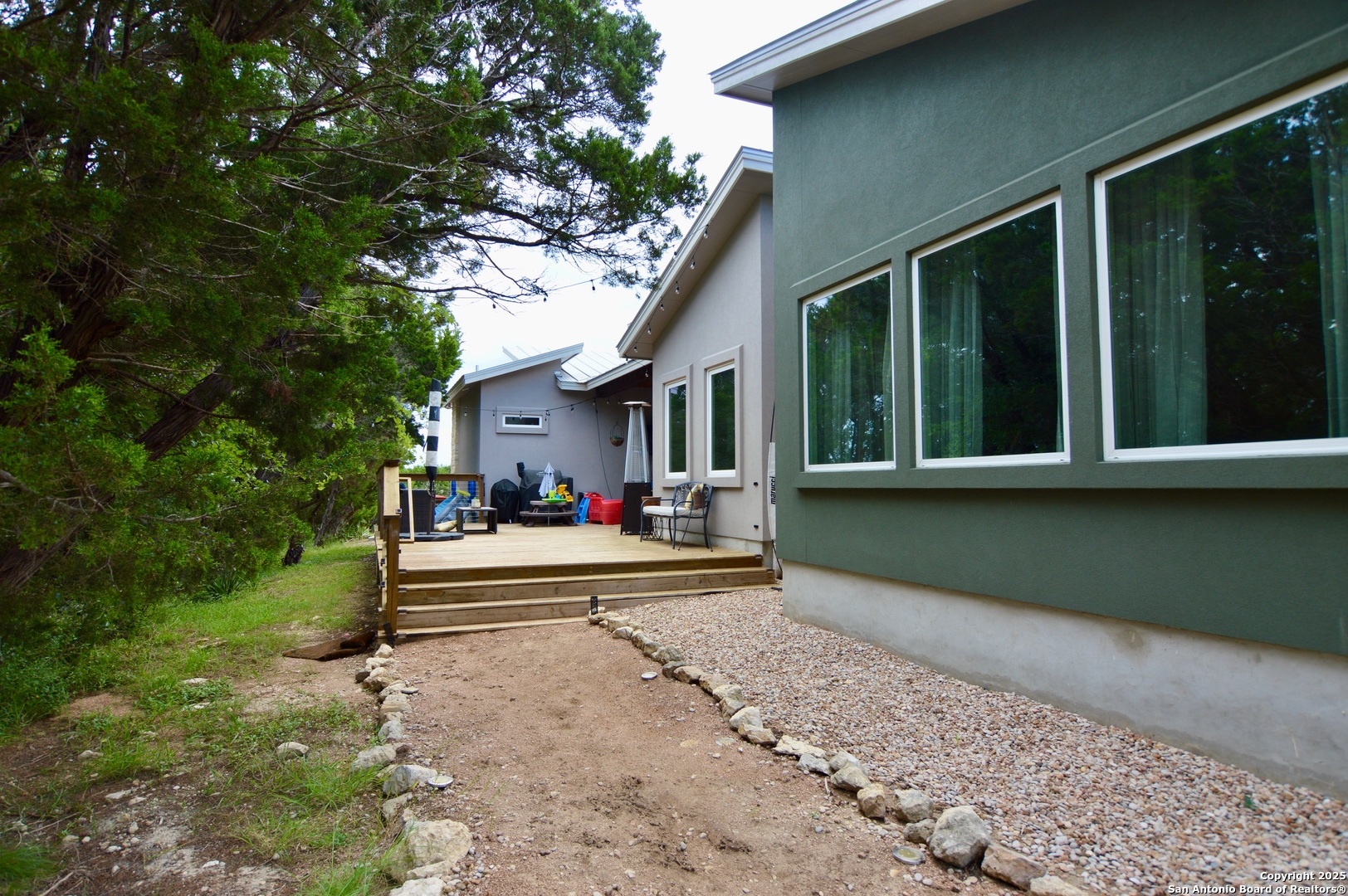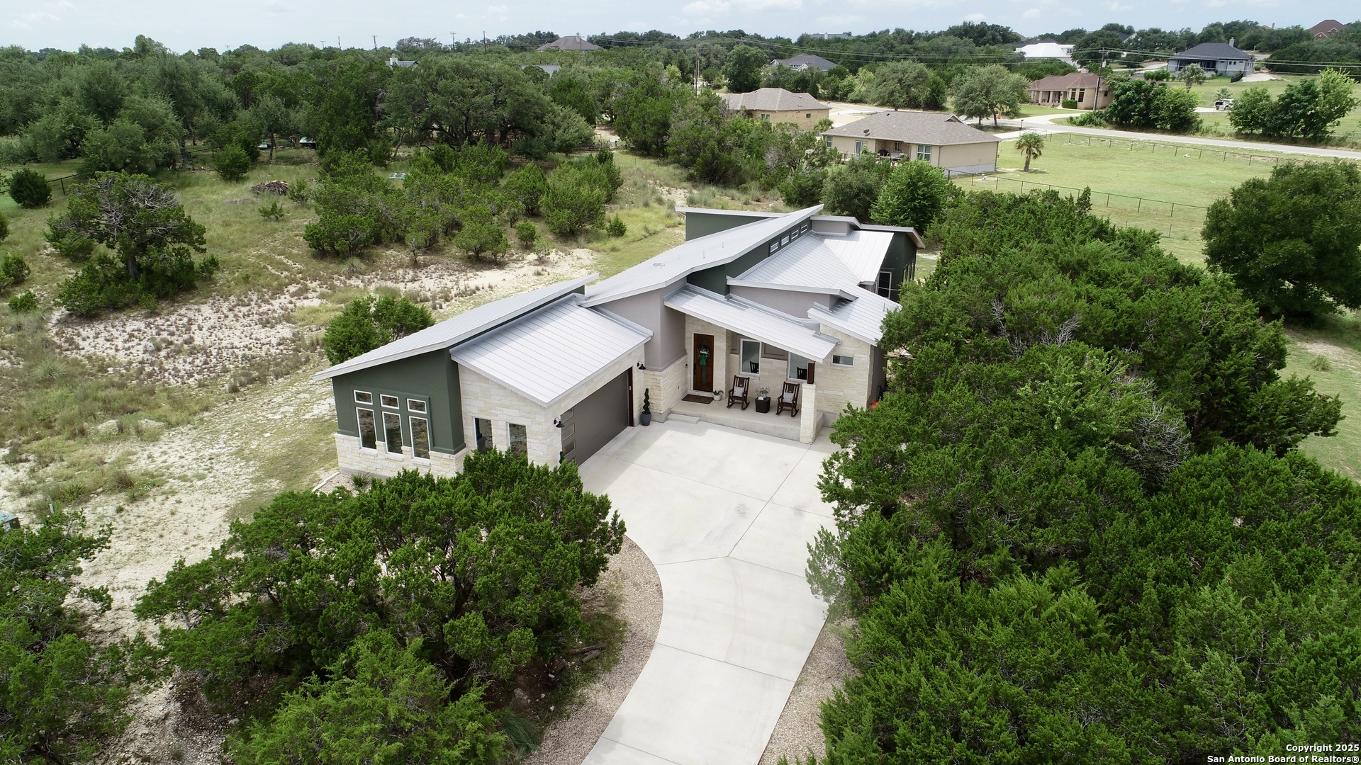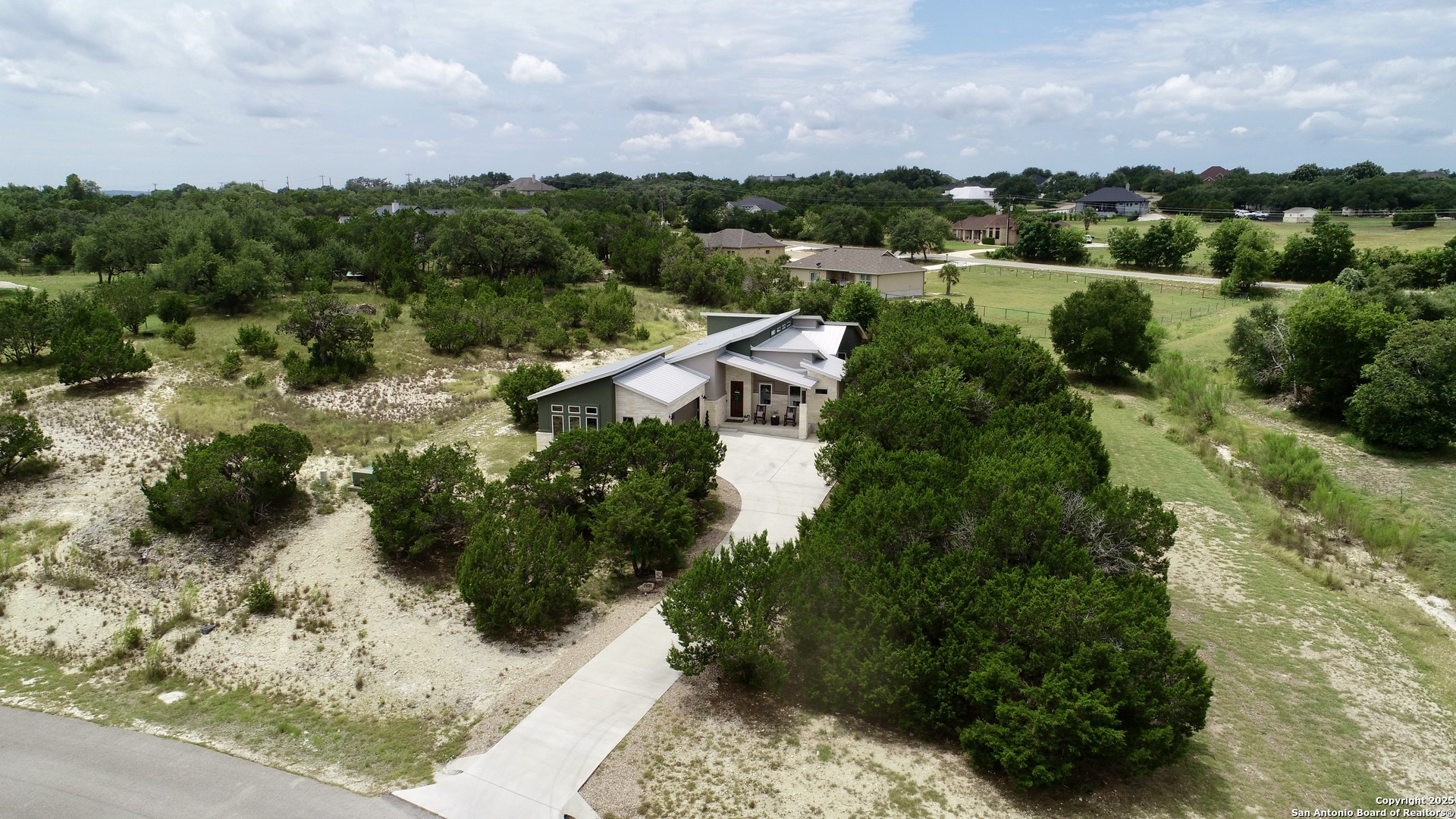 Nestled in the serene Mystic Bluffs community of Canyon Lake, this stunning 2,503 sqft home on a sprawling 1-acre lot offers the perfect blend of luxury and Hill Country charm. With 3 spacious bedrooms, 3 full baths, and 1 half bath, this single-family residence is ideal for families, entertainers, or those seeking a tranquil escape. Step inside to an open-concept living area with soaring ceilings, abundant natural light, and breathtaking views of the surrounding landscape. The gourmet kitchen is a chef's dream, featuring sleek quartz countertops, stainless steel appliances, and a large island perfect for gatherings. The primary suite is a private oasis with a spa-inspired ensuite boasting dual vanities and generous closet space. Two additional bedrooms, each with access to full baths, offer flexibility for guests or a home office. Outside, the expansive lot is an entertainer's paradise, featuring a large deck ideal for hosting and a custom backyard fire pit for cozy evenings under the stars. Surrounded by mature trees, the property provides privacy and ample space for future additions like a pool or garden. Enjoy the freedom of no HOA in this nicely maintained neighborhood, which benefits from basic restrictions to preserve its charm and appeal. Just minutes from Canyon Lake, you'll have easy access to boating, fishing, and hiking.