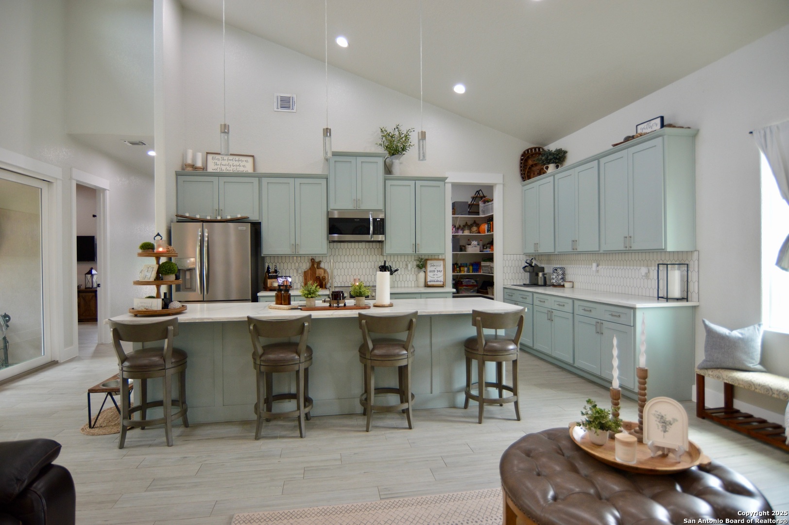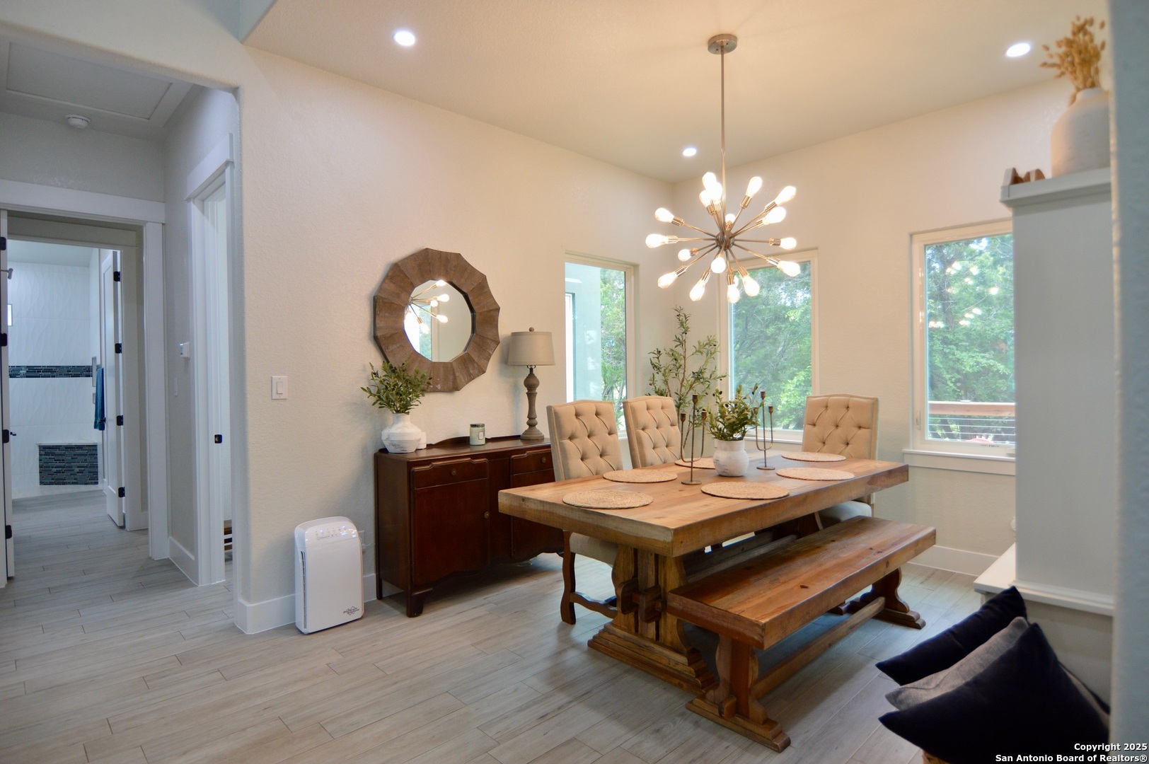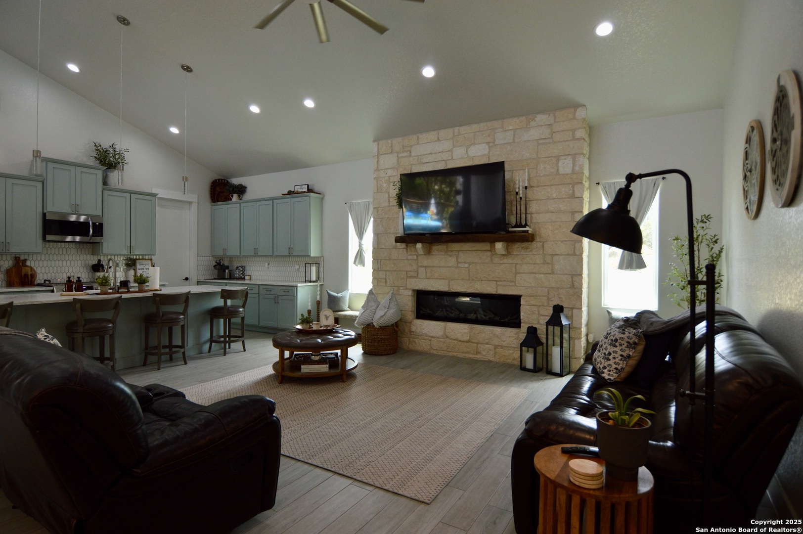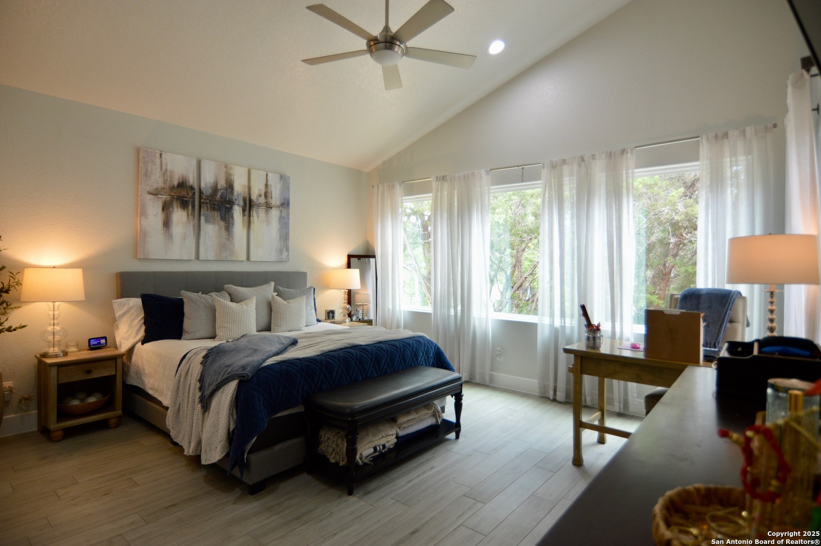 Nestled in the serene Mystic Bluffs community of Canyon Lake, this stunning 2,503 sqft home on a sprawling 1-acre lot offers the perfect blend of luxury and Hill Country charm. With 3 spacious bedrooms, 3 full baths, and 1 half bath, this single-family residence is ideal for families, entertainers, or those seeking a tranquil escape. Step inside to an open-concept living area with soaring ceilings, abundant natural light, and breathtaking views of the surrounding landscape. The gourmet kitchen is a chef's dream, featuring sleek quartz countertops, stainless steel appliances, and a large island perfect for gatherings. The primary suite is a private oasis with a spa-inspired ensuite boasting dual vanities and generous closet space. Two additional bedrooms, each with access to full baths, offer flexibility for guests or a home office. Outside, the expansive lot is an entertainer's paradise, featuring a large deck ideal for hosting and a custom backyard fire pit for cozy evenings under the stars. Surrounded by mature trees, the property provides privacy and ample space for future additions like a pool or garden. Enjoy the freedom of no HOA in this nicely maintained neighborhood, which benefits from basic restrictions to preserve its charm and appeal. Just minutes from Canyon Lake, you'll have easy access to boating, fishing, and hiking.