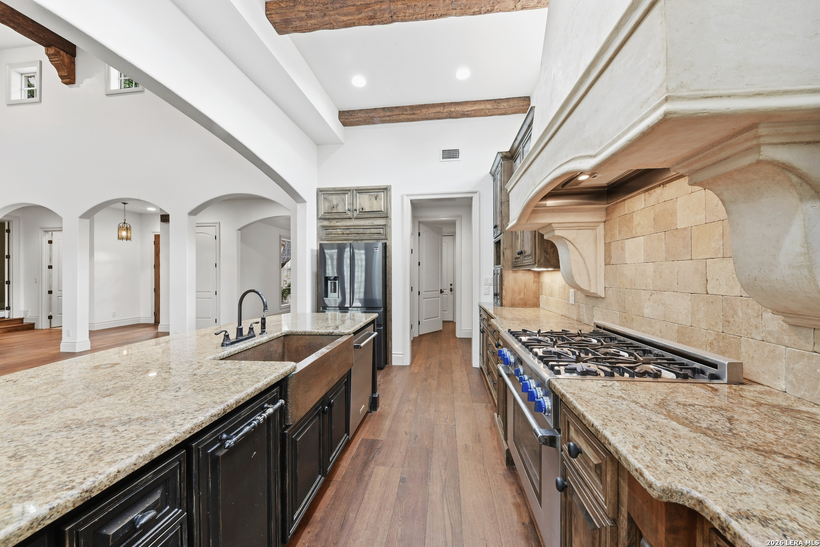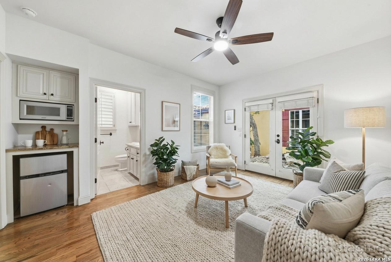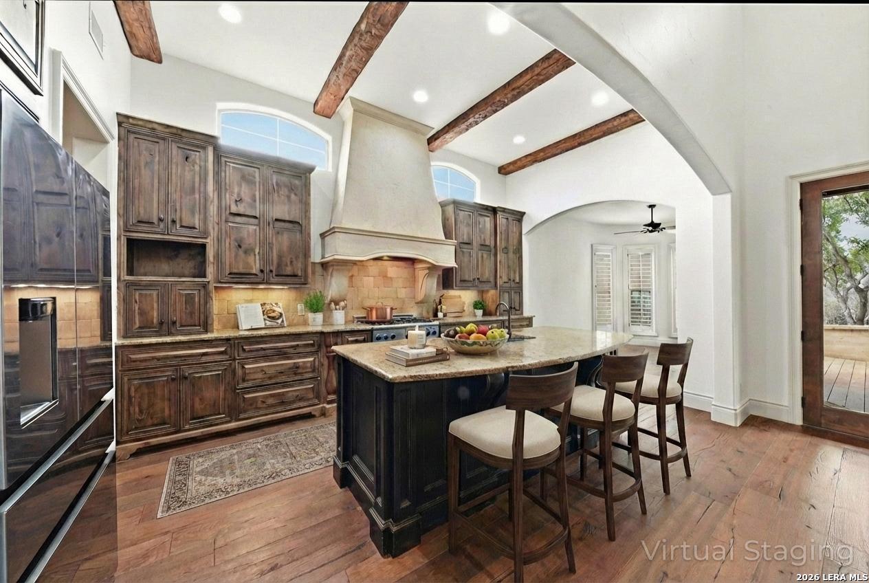 Nestled in a quaint Tuscan-style neighborhood, this builder's custom home offers timeless elegance with a modern open-concept layout. Thoughtfully designed with high-end European finishes throughout, every detail speaks of craftsmanship and sophistication. The inviting casita features its own living room, spacious bedroom, large walk-in closet, and a convenient mini fridge. Perfect for guests, multi-generational living or private home office. Enjoy exclusive tree covered access to the beautiful crystal clear Comal River, adding leisure and lifestyle to an already desirable location.