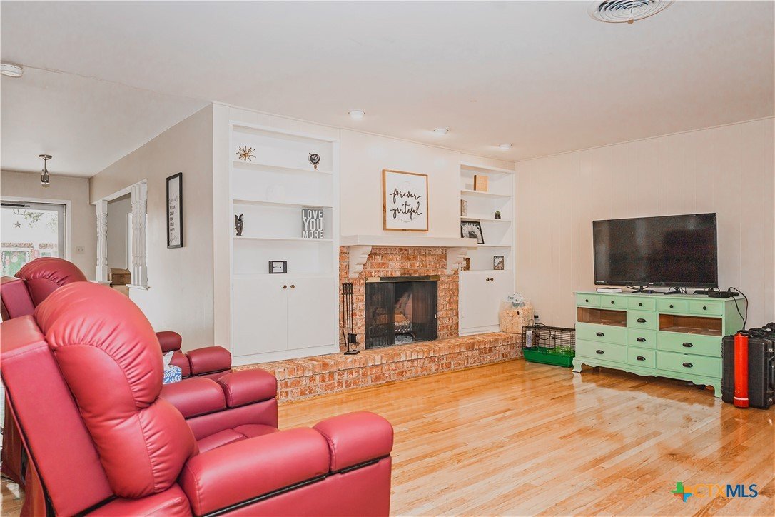 Spacious Corner-Lot Brick Home with Multiple Living Areas + Flex Room. Welcome to this expansive 4-bedroom, 2.5-bath brick home offering multiple living and dining spaces along with a versatile floor plan. Inside, you'll find beautiful original oak flooring, a cozy fireplace with custom built-ins, and a kitchen equipped with double ovens and abundant storage throughout. The layout includes a generously sized in-house laundry room and plenty of room for everyone.
