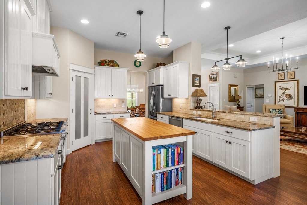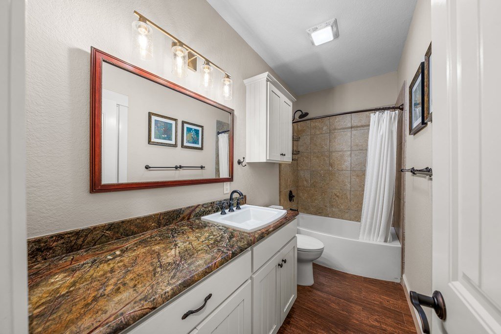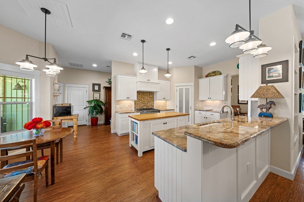 Discover the allure of Texas Hill Country living in this stunning 4 bed/2 bath home by Hills of Texas Homes, nestled on 1.72 acres in the coveted Cypress Springs Estates. This impeccably maintained residence boasts an open floor plan with ceramic tile flooring, a spacious dining area, a cozy kitchen nook, granite countertops, gas cooking, a walk-in pantry, and ample cabinetry. The primary suite offers two large walk-in closets, an upgraded bathroom with a roll-in shower, dual shower heads & bench. Perfect for outdoor entertaining, the covered patio includes a gas fireplace, epoxy/chip sealer, and a connection to the main propane tank for your grill. The upstairs bonus room (392 sq ft), finished with vinyl plank flooring and wood stairs, offers a flex space, workout room, or office. Additional highlights include a 3-car garage with cabinetry & epoxy floor, a generator, a large, detached insulated workshop (660 sf) with 2 mini-splits,12 ft garage door & equipped with compressed air piping. Enjoy access to Cypress Springs Estates amenities: Guadalupe River Park, pool, tennis/pickleball, party pavilion, canoes, firepit, and picnic areas. Don't miss this exceptional opportunity!