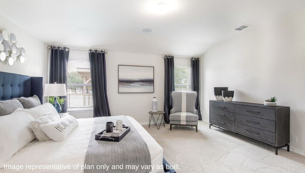 Introducing The Lombardi, a two-story home featured in our High Garden community in Comfort, TX. This floor plan offers 3 classic front exteriors, and a 2-car garage. Inside this 5 bedroom, 2.5 bathroom home, you'll find 2539 square feet of open-concept living. A deep-set, covered porch (per plan) opens to a foyer, formal dining room, and powder room. A butler entry connects the dining room and spacious kitchen lined with abundant cabinetry and quartz-top counterspace. Classic white subway tile backsplash and stainless steel appliances are a perfect accent, and a kitchen island with a deep single basin kitchen sink faces the living room. The private main bedroom suite is located off the living room and features a luxurious garden bath tub, a separate walk-in shower with tile surround, double vanity sinks, ceramic tile flooring, a separate door for the toilet and a large walk-in closet. Head up the stairs and tour the second floor of your brand new home! A versatile loft area greets you at the top of the stairs, complete with quality carpet and tons of natural light. Your four secondary bedrooms are located off the loft and include carpet flooring and spacious walk-in closets. Additional features include 9-foot ceilings, 2-inch faux wood blinds throughout the home, luxury vinyl plank flooring in the entryway, living room, kitchen, and dining room, ceramic tile at all bathrooms and utility room, pre-plumb for water softener loop, and more! You'll enjoy added security in your new home with our Home is Connected features. Using one central hub that talks to all the devices in your home, you can control the thermostat and locks, all from your cellular device.