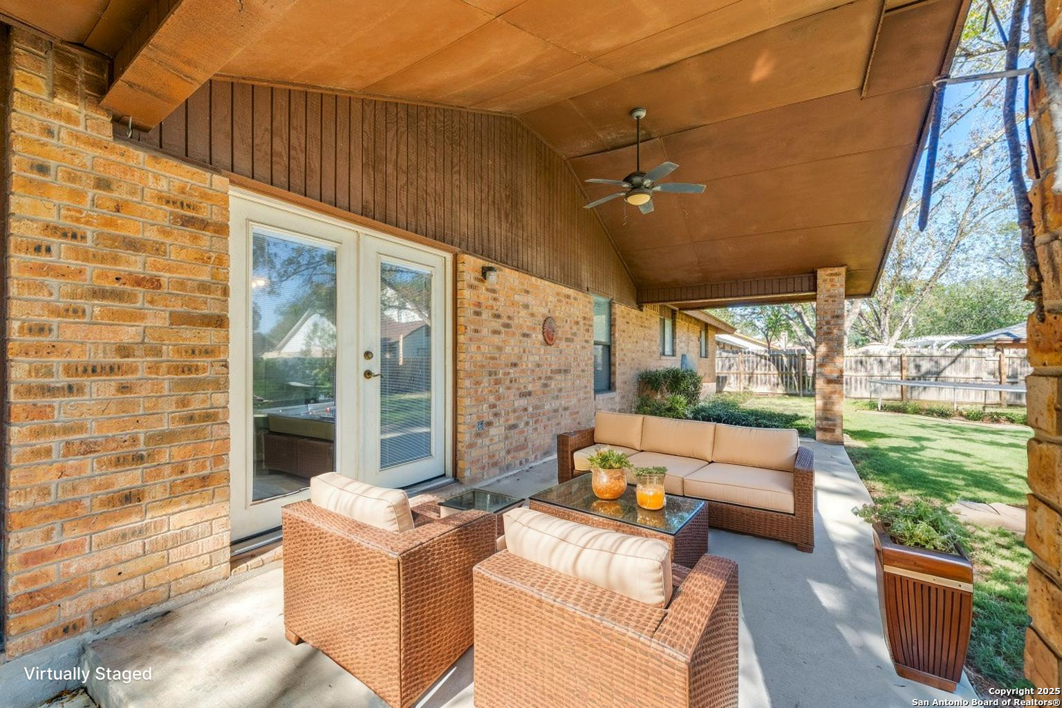 Welcome to this charming 3-bedroom, 2-bath home nestled on a spacious lot with mature shade trees and a welcoming circular driveway. Featuring a 3-car garage and two cozy fireplaces, this home offers warmth, character, and plenty of room to make it your own. Step through the brick archway into a private front courtyard that leads to the bright entryway. Inside, a large living area showcases a beautiful brick fireplace and wood accent wall-perfect for relaxing or entertaining. The kitchen offers abundant cabinet space, a pass-through window to the living room, and an adjoining dining area with French doors that open to the backyard. The primary suite is generously sized with a walk-in closet and private bathroom, while the additional bedrooms offer great storage and space. Outside, enjoy a huge covered patio, perfect for gatherings, grilling, or simply unwinding while overlooking the large fenced yard-complete with room for play, pets, or future projects. With its solid brick construction, thoughtful layout, and endless potential, this home is ready for its next chapter. Come see all the possibilities this Seguin gem has to offer!