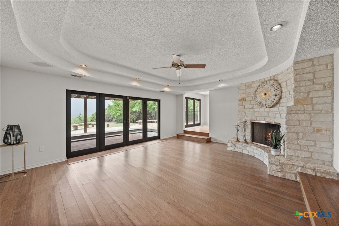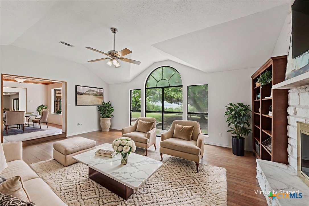 Beyond the gated entrance, a home full of character and comfort awaits on more than 6.3 acres, with sweeping views of the lake that never grow old. Designed for those who appreciate space and scenery, this property offers more than 3,690 square feet of inviting living space, accented by a detached 3-car garage and an extensive two-level deck where the lake seems to stretch endlessly before you. Located in a quiet, secluded neighborhood with an active neighborhood watch, the setting offers a strong sense of community while maintaining plenty of privacy. Wildlife is abundant here, and there’s ample room to, care for, or raise horses—with a small corral already in place and horse trails that run along the back of the property. Outdoor enthusiasts will appreciate direct access to Dana Peak Park via walking trails located just beyond the property line, making it easy to explore the area on foot, horseback, or bike. Step inside to discover a layout built for living and gathering, featuring four bedrooms, two full baths, two separate half baths, a home office, two dining rooms, and two spacious living areas on the main floor—each centered around its own fireplace. A striking spiral staircase leads to an oversized loft upstairs, complete with built-in bookcases, a bar area, and access to the upper deck. The open kitchen has a rich wood plank ceiling and outfitted with granite counters, and double built-in ovens. The adjoining dining area, wrapped in windows, brings in the beauty of the outdoors with every meal. Throughout the home, thoughtful built-in features provide plenty of organization and storage, blending convenience with character. Whether it’s gathering around the fire on cool evenings, hosting celebrations on the decks, enjoying the surrounding nature, or taking off on foot or horseback along the nearby trails, this home offers a lifestyle that’s hard to find and easy to love. The square footage calculation doesn't include storage upstairs.