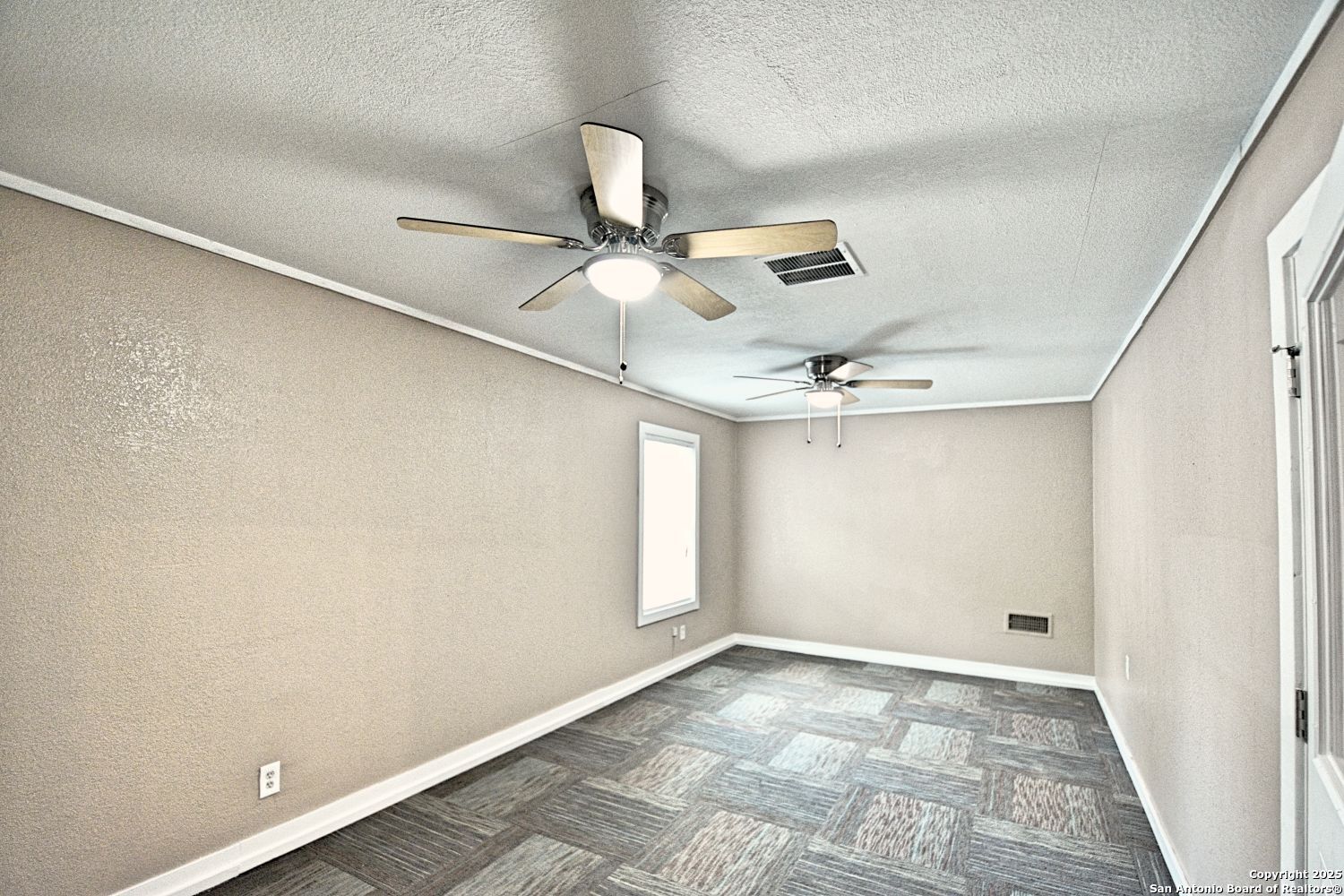 Commercial private office space is fully carpeted with 2 ceiling fans, window with a view of the parking lot, and glass window door for signage/decal. Welcoming common area has vinyl flooring, 2 bathrooms, and kitchenette area with cabinet space, ceramic tiled counter top, microwave, sink, coffee, and dual sinks. Downstairs is the waiting area, mail room access, and conference room at first come, first serve basis. Office building is conveniently located along busy Hwy 46, near Loop 337, city hall, and Downtown New Braunfels.