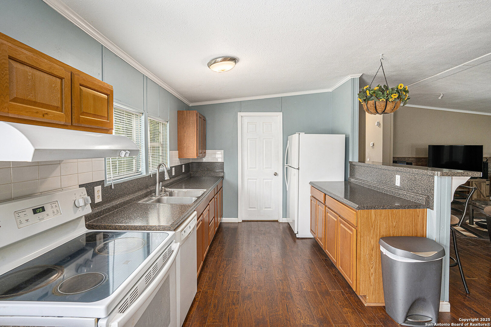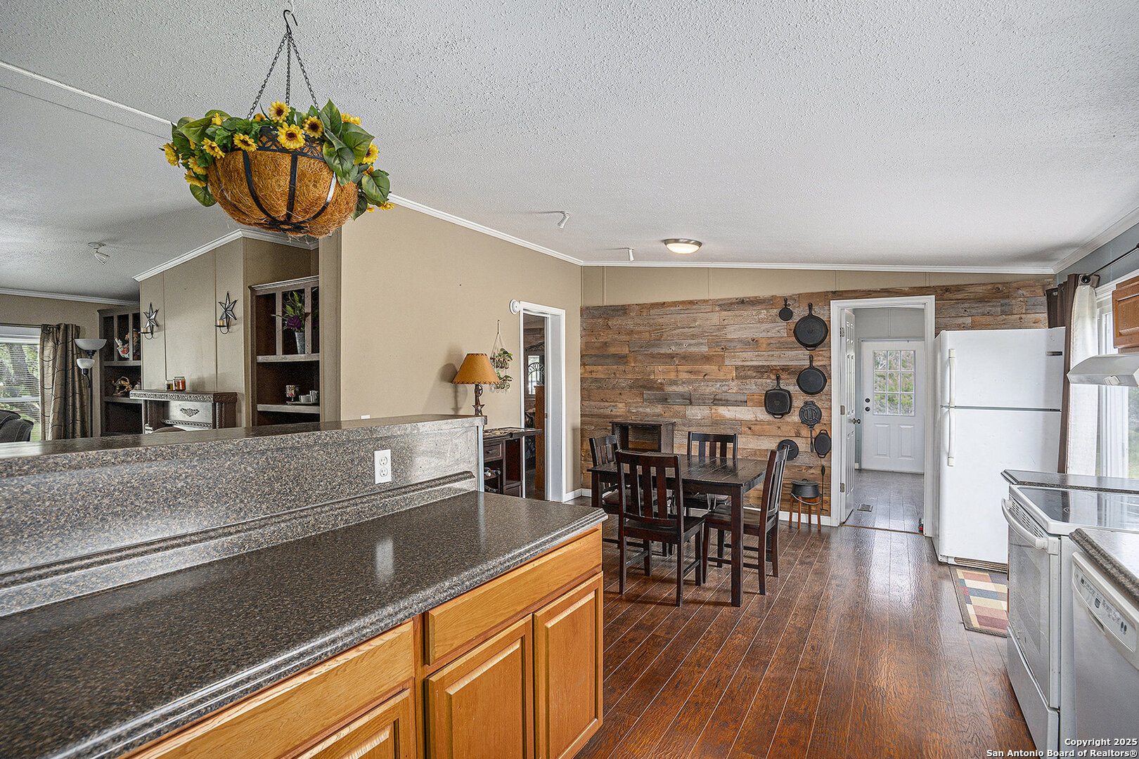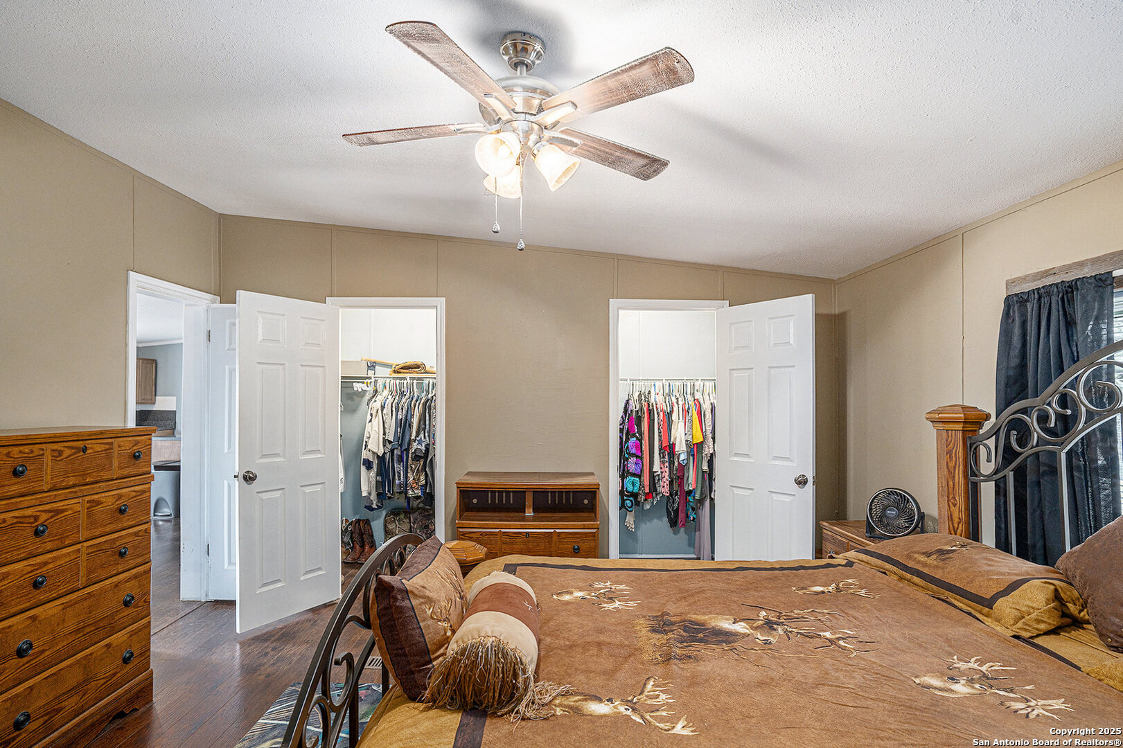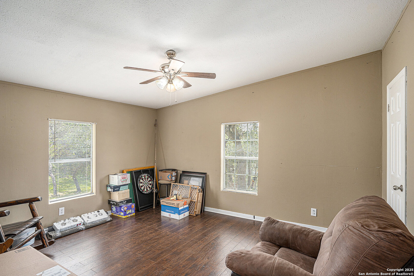 Welcome Home! Experience affordable hill country living in this beautifully maintained 3-bedroom, 2-bath manufactured home, situated on just over an acre and backing up to 1,000 acres of scenic landscape. The spacious primary suite features a large walk-in closet and a private ensuite bath. New sliding glass doors in the dining area open to expansive backyard views, bringing the outdoors in. The open-concept kitchen offers generous cabinet space, a walk-in pantry, and flows effortlessly into the living room-perfect for gatherings and everyday living. Comfort is key with a brand-new A/C unit for year-round climate control. The laundry room adds convenience with extra cabinetry and direct outdoor access. Recent upgrades include NEW heavy composition roof, new vinyl siding, crawl space skirting, and new double pane windows! Outdoors, you'll find a fenced front yard, a new covered porch, a storage shed, and daily visits from friendly deer and local wildlife. Located just outside city limits, this peaceful property is only 15 minutes from I-35 and Texas State University, and within 30-45 minutes of both Austin and San Antonio. With a low tax rate, nearby playground access, and move-in-ready condition, this is hill country living at its best!