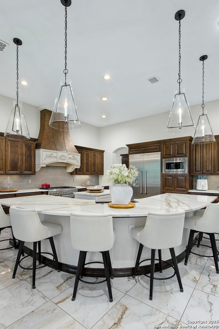 NICHE Properties is please to introduce the epitome of luxury living to the marketplace. This glorious one level 5018+/- square foot exquisite estate is located in highly desirable guarded and gated Anaqua Springs. It has been recently remodeled to top tier perfection elevating this already awesome offering with breathtaking new soft contemporary and perfectly selected Ralph Lauren and RH lighting, fabulous new marble and wood flooring, spacious open floor plan. You will be captivated by this unique epicurean offering curated with such perfection that it rivals any others. Situated on a 2.2+ acre private, lushly landscaped and verdant setting, every detail addressed to perfection. From the HIGHLY IMPRESSIVE 3000+ bottle temperature controlled wine room, the inspired Chef's kitchen options, to the glistening pool/spa and outdoor commercial kitchen with dining and living room, the attention to custom details are truly everything a discerning buyer could desire. Experience this luxe property personally to truly understand its elegant and bespoke style with a most welcoming vibe.
