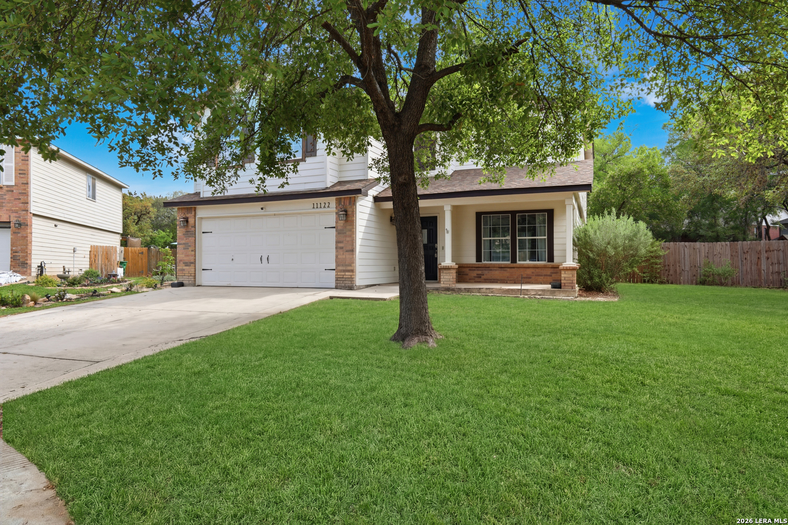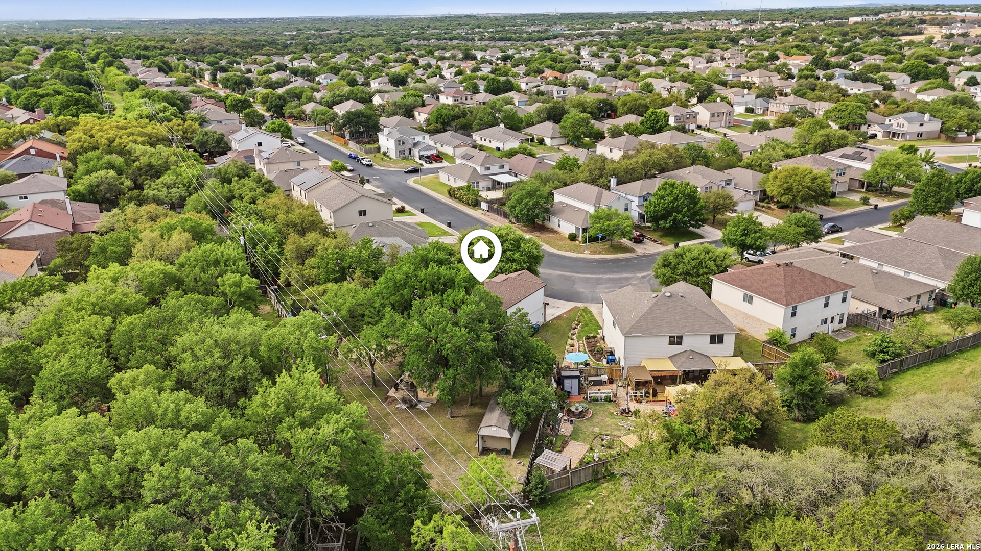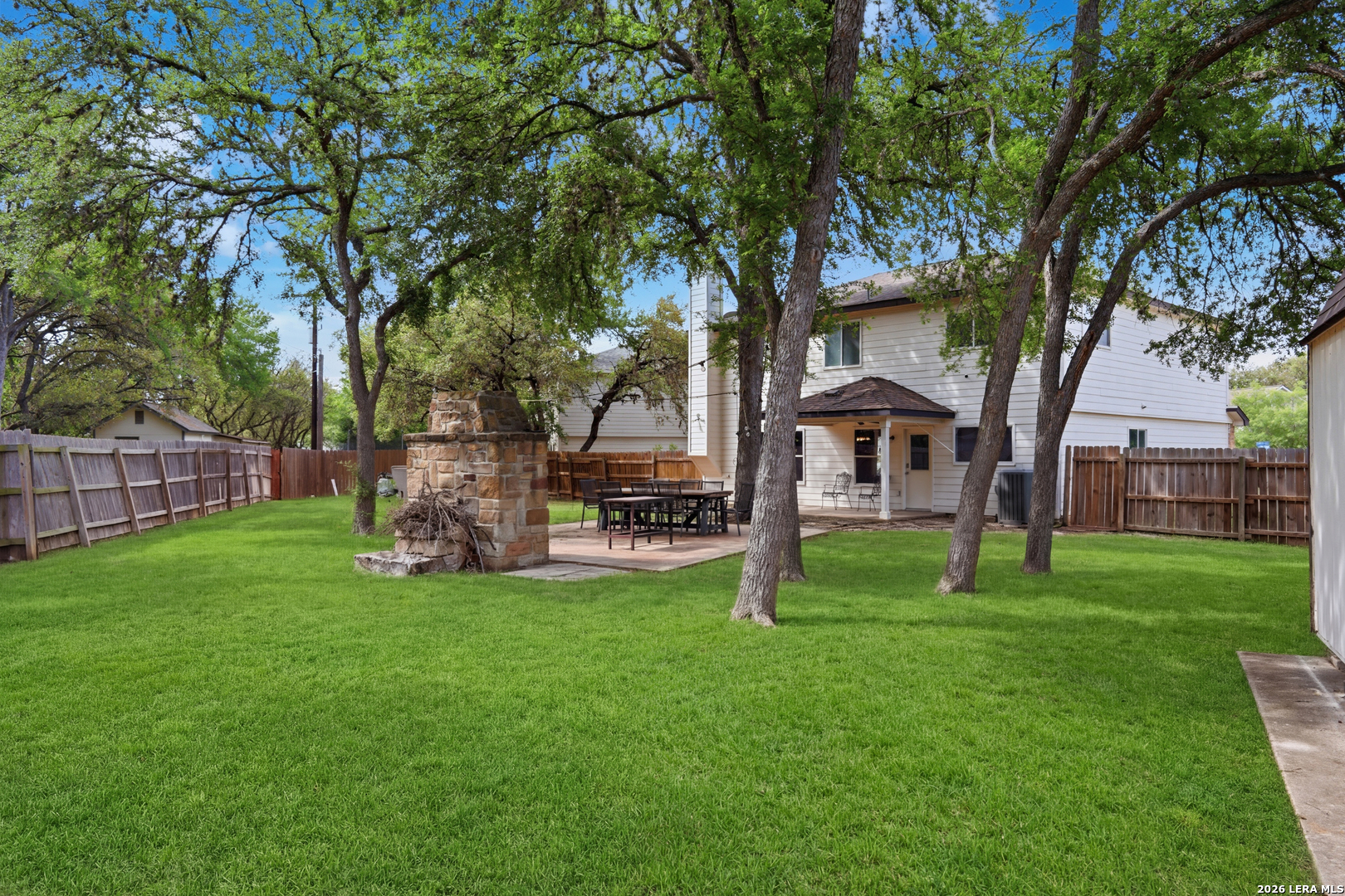 Beautifully updated 4-bedroom, 2.5-bath home nestled on a quiet cul-de-sac within sought-after Northside ISD. Thoughtfully designed with all bedrooms and a versatile office/flex space upstairs that can be a 4th bedroom, offering both privacy and flexibility for modern living. The open-concept main level is perfect for entertaining, featuring a spacious living area that flows seamlessly into the kitchen, highlighted by distinctive lighting and ample workspace. Step outside to a true backyard retreat with a custom outdoor fireplace, expansive 22x18 covered patio, mature trees, and a storage shed-ideal for relaxing or hosting year-round. Residents enjoy access to neighborhood amenities including a park, playground, and sports court, all with convenient proximity to Loop 1604 and Kyle Seale Parkway.