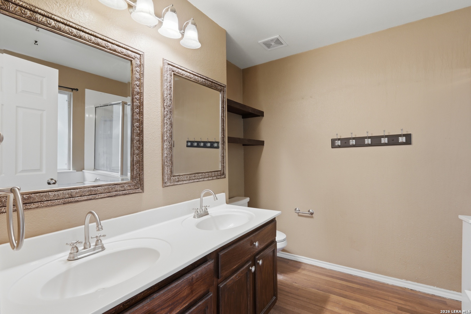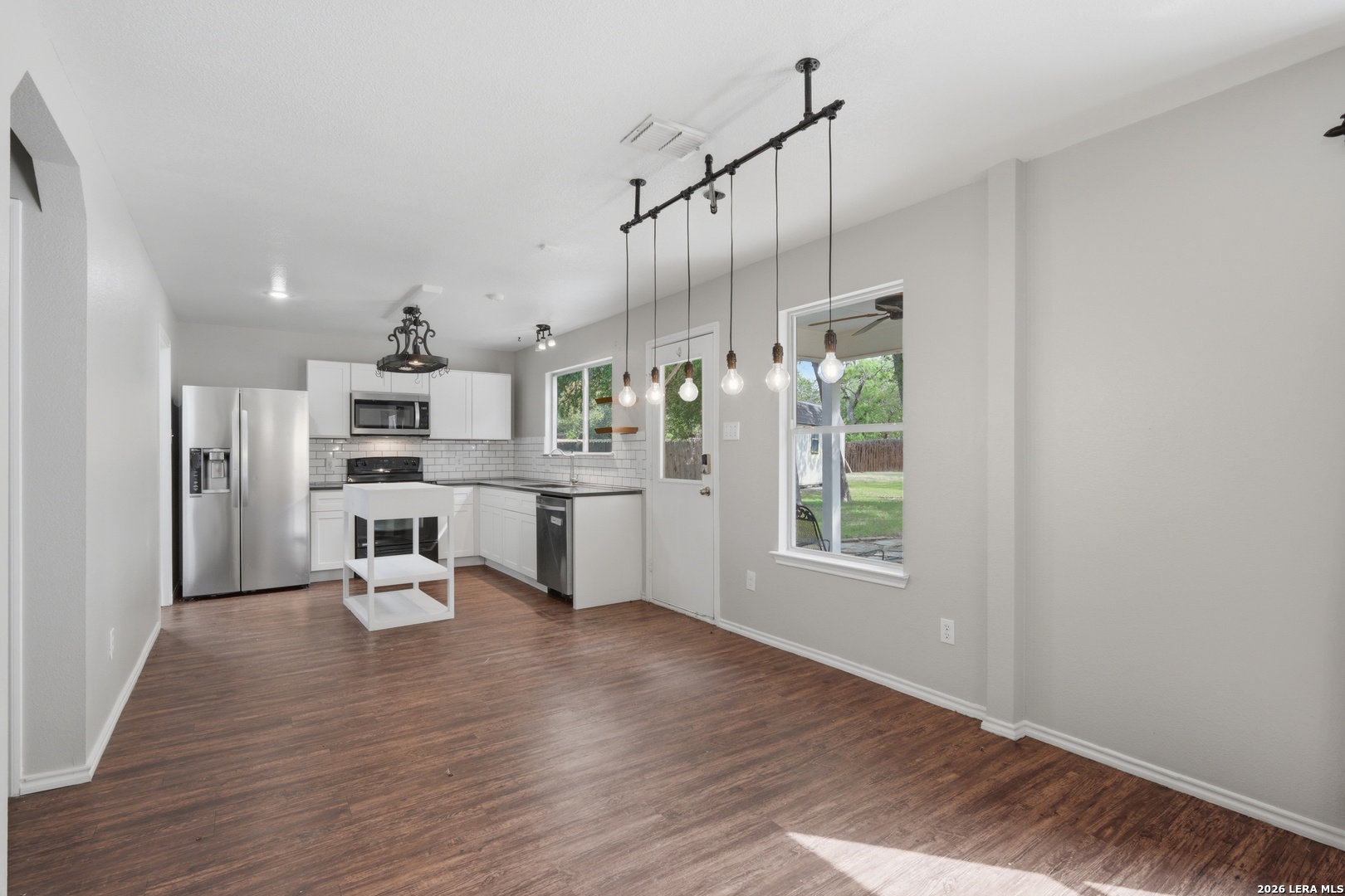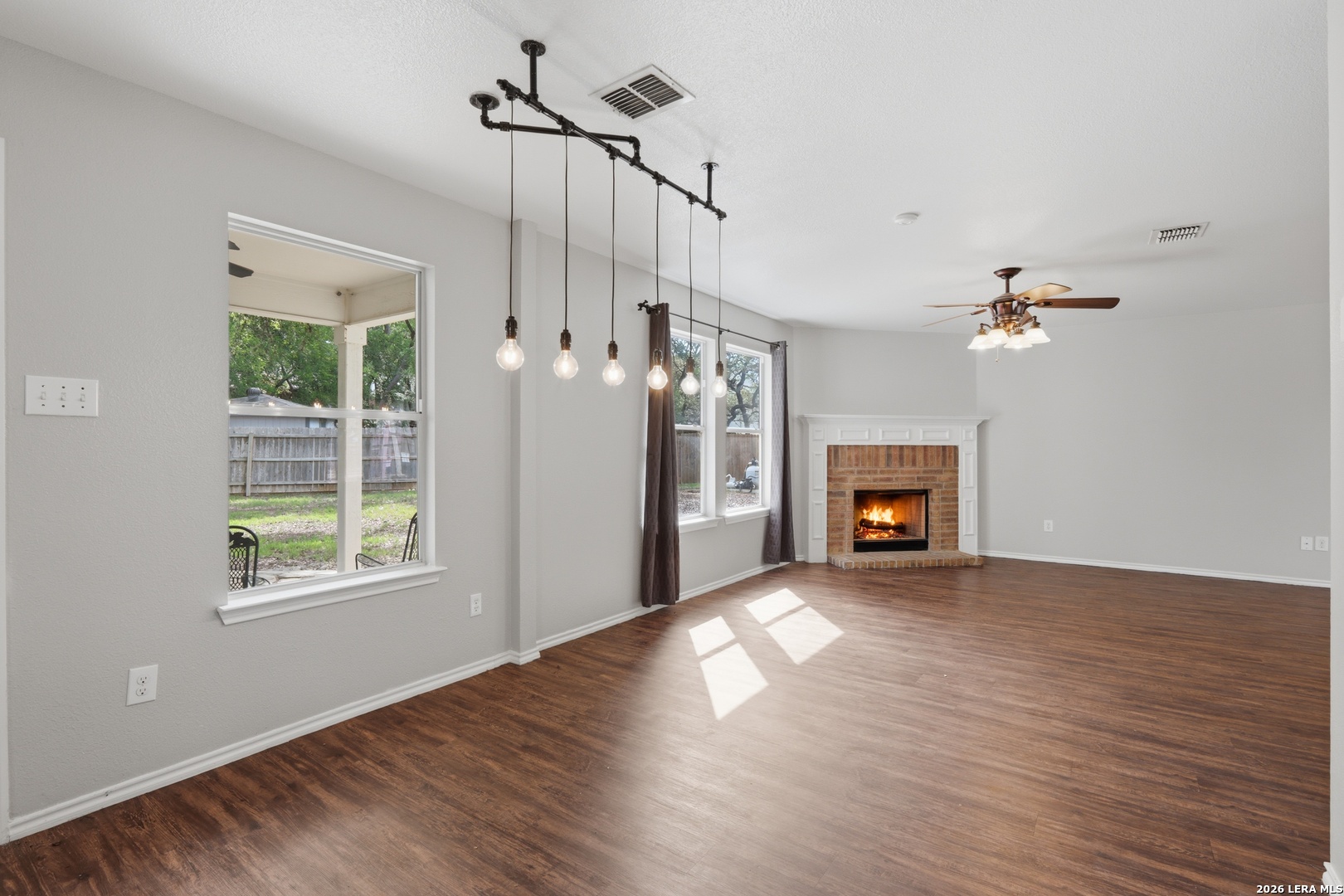 Beautifully updated 4-bedroom, 2.5-bath home nestled on a quiet cul-de-sac within sought-after Northside ISD. Thoughtfully designed with all bedrooms and a versatile office/flex space upstairs that can be a 4th bedroom, offering both privacy and flexibility for modern living. The open-concept main level is perfect for entertaining, featuring a spacious living area that flows seamlessly into the kitchen, highlighted by distinctive lighting and ample workspace. Step outside to a true backyard retreat with a custom outdoor fireplace, expansive 22x18 covered patio, mature trees, and a storage shed-ideal for relaxing or hosting year-round. Residents enjoy access to neighborhood amenities including a park, playground, and sports court, all with convenient proximity to Loop 1604 and Kyle Seale Parkway.