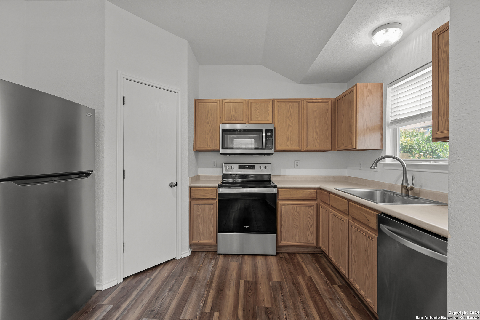 This beautiful one story home for lease includes three bedrooms, two baths, and was built in 2004 awaits you in the desirable Laurel Canyon Subdivision. Kitchen has dining space off to the side and the lease includes all newer appliances making this home move-in ready! (washer/dryer/fridge INCLUDED!) The garage even has hanging storage racks, and HVAC system is from 2016. Enjoy residing on this lot tucked into the neighborhood with easy access to 1604. Come see today!