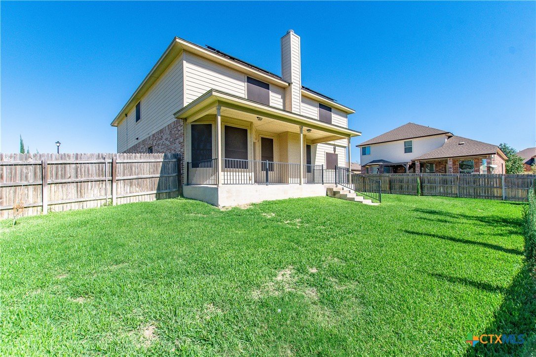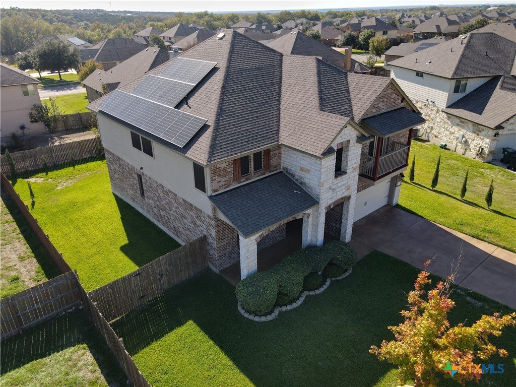 Welcome to this inviting 4-bedroom + flex space, 2.5-bath haven of luxury and comfort nestled in a quiet cul de sac. This stunning residence boasts an array of impressive features that cater to your every desire. This home is crowned with a 2-car garage, providing ample space for vehicles and your storage solutions for your recreational gear, tools, and more. Upon entry, you'll be captivated by the grandeur of the layout, designed to offer both expansive living spaces and a cozy, intimate atmosphere. The spacious interior is complemented by a thoughtful office space, allowing for productivity without leaving the comfort of home. Step into the heart of the home and discover a culinary masterpiece - a gourmet kitchen that will delight even the most discerning chefs. Adorned with sleek granite countertops, the kitchen is equipped with top-of-the-line appliances including a double oven that makes hosting gatherings a breeze. The center island not only serves as a functional workspace but also encourages socializing and camaraderie. The harmonious flow of the kitchen area ensures that every culinary adventure is met with ease and style. Create your spa-like experience in the master bathroom which features a double vanity, generously sized walk-in closet, walk-in shower and large garden tub. Retreat to the oversized private backyard and enjoy the luxury of outdoor relaxation and entertainment on a covered patio, perfect for all-season gatherings. This established neighborhood is close to Scott and White Hospitals, shopping and dining. This house also has solar panels..... the best part, they are paid off and you get the savings without paying for them!!! Schedule your showing today!