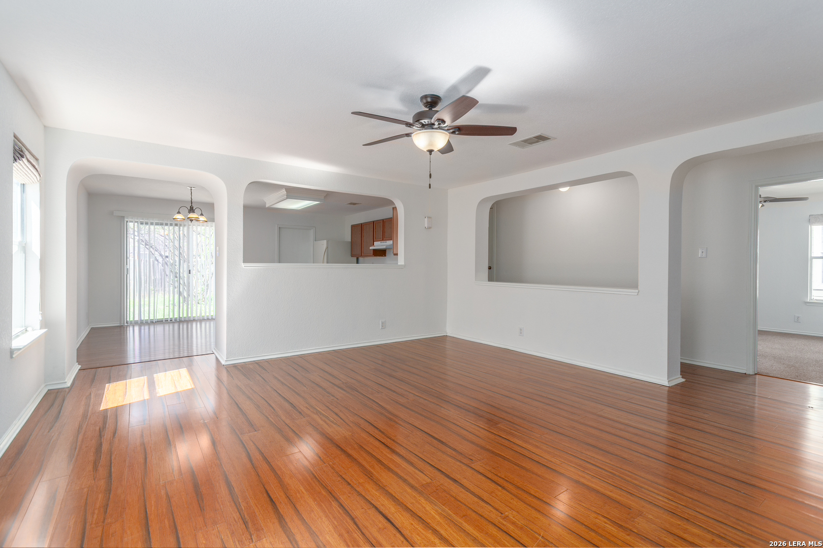 Welcome home! This charming single-story property offers the perfect mix of comfort and convenience, located in the desirable Meadows at Bridgewood community. Inside, you'll find an open-concept layout that seamlessly connects the spacious living area to a cozy eat-in kitchen-ideal for everyday living and entertaining. Wood flooring runs throughout the main living spaces and hallway, adding both style and easy maintenance, while the bedrooms feature soft carpeting for added comfort. Step outside to a private, fenced backyard-perfect for relaxing, playing, or hosting guests. Enjoy access to fantastic community amenities, including a pool, sports court, playground, and picnic areas. Conveniently located within the highly rated NISD school district. Pets are negotiable, making this home a great fit for the whole family!