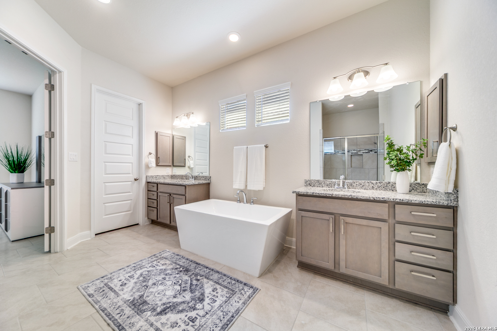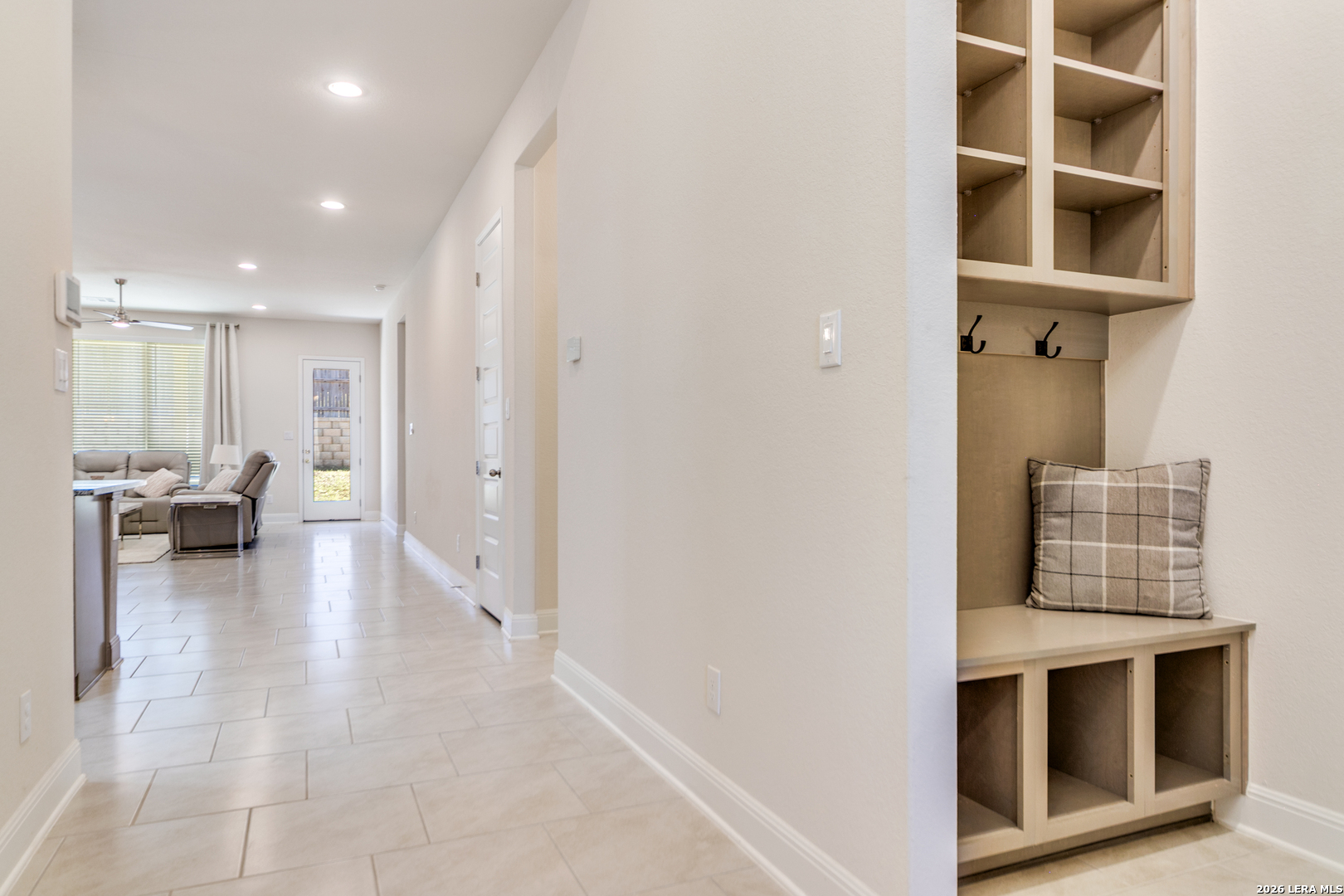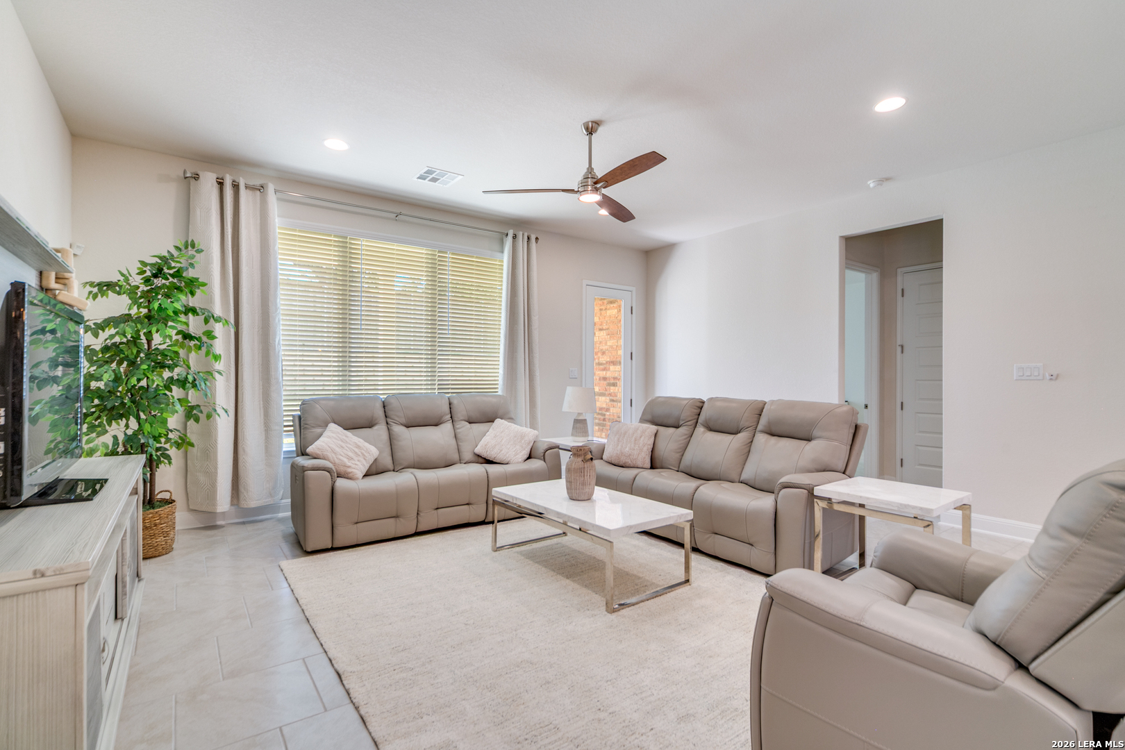Welcome to 1114 Aidenbaum. Nestled within the desirable gated community of the Enclave at Kinder Ranch, and located in the beautiful Sunday Creek section just across the street and within walking distance to both the middle and high school, this stunning single-story residence built in 2022 offers a seamless blend of modern Hill Country style and everyday convenience. Featuring 4 spacious bedrooms and 3.5 baths, the thoughtfully designed open-concept layout is ideal for both refined entertaining and comfortable daily living. The gourmet kitchen anchors the home with an expansive island, sleek solid-surface countertops, and built-in appliances, all overlooking a bright, airy living space enhanced by soaring ceilings and ceramic tile flooring throughout. The private primary suite serves as a true retreat, complete with dual vanities and an oversized walk-in closet. Step outside to a covered patio that opens to a well-maintained backyard, perfect for relaxing or hosting guests. This move-in ready home also offers access to resort-style community amenities including a pool, recreation center, and scenic trails, all while being just minutes from shopping, dining, and major roadways, and zoned to the highly sought-after Comal ISD.