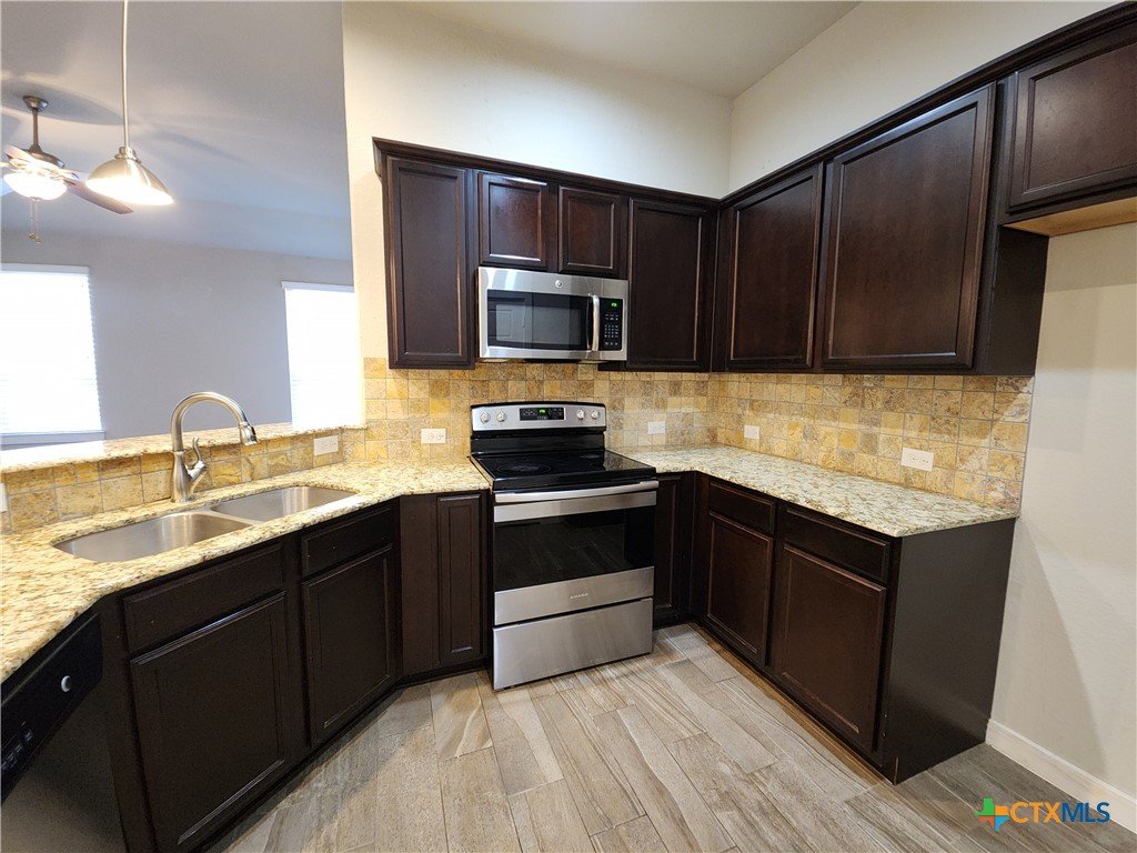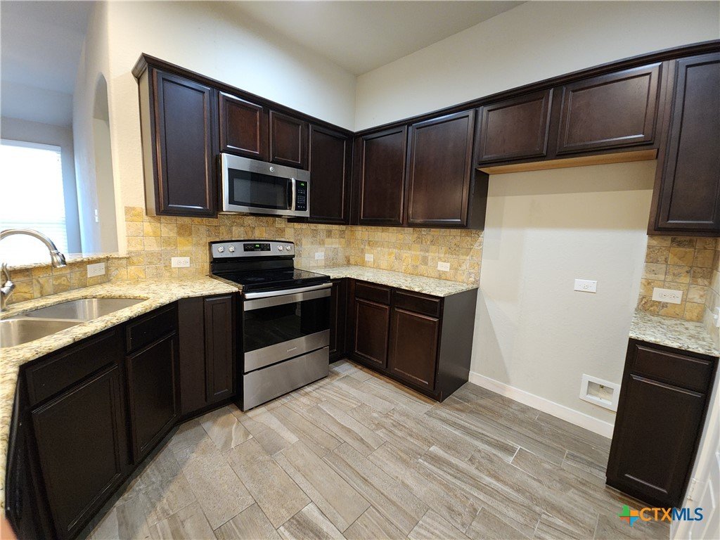 Gorgeous 3/2/2 Duplex Home Located in Comal ISD and Minutes to IH 35 and the Creekside Shopping Area. Tons Of Features: Granite Countertops in the Kitchen with Under Mount Sink, Stainless Steel Appliances, Built-In Microwave, Dishwasher, Stove, Upscale Light & Plumbing Fixtures, Walk-In Shower & Double Vanity in Primary Bath, High Ceilings, Upscale Wood-Look Tile Flooring with Carpet in All Bedrooms, Ceilings Fans, Patio, Sprinkler System, and Privacy Fenced-In Backyard! CISD. 1 Pet Negotiable, 25lb Max. Floor Plan 2530