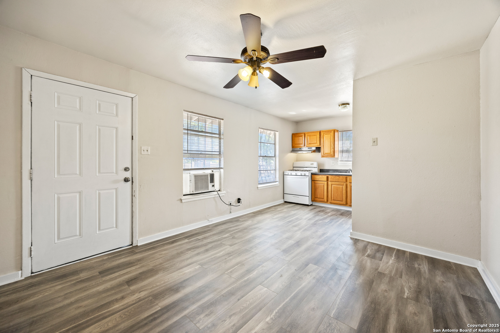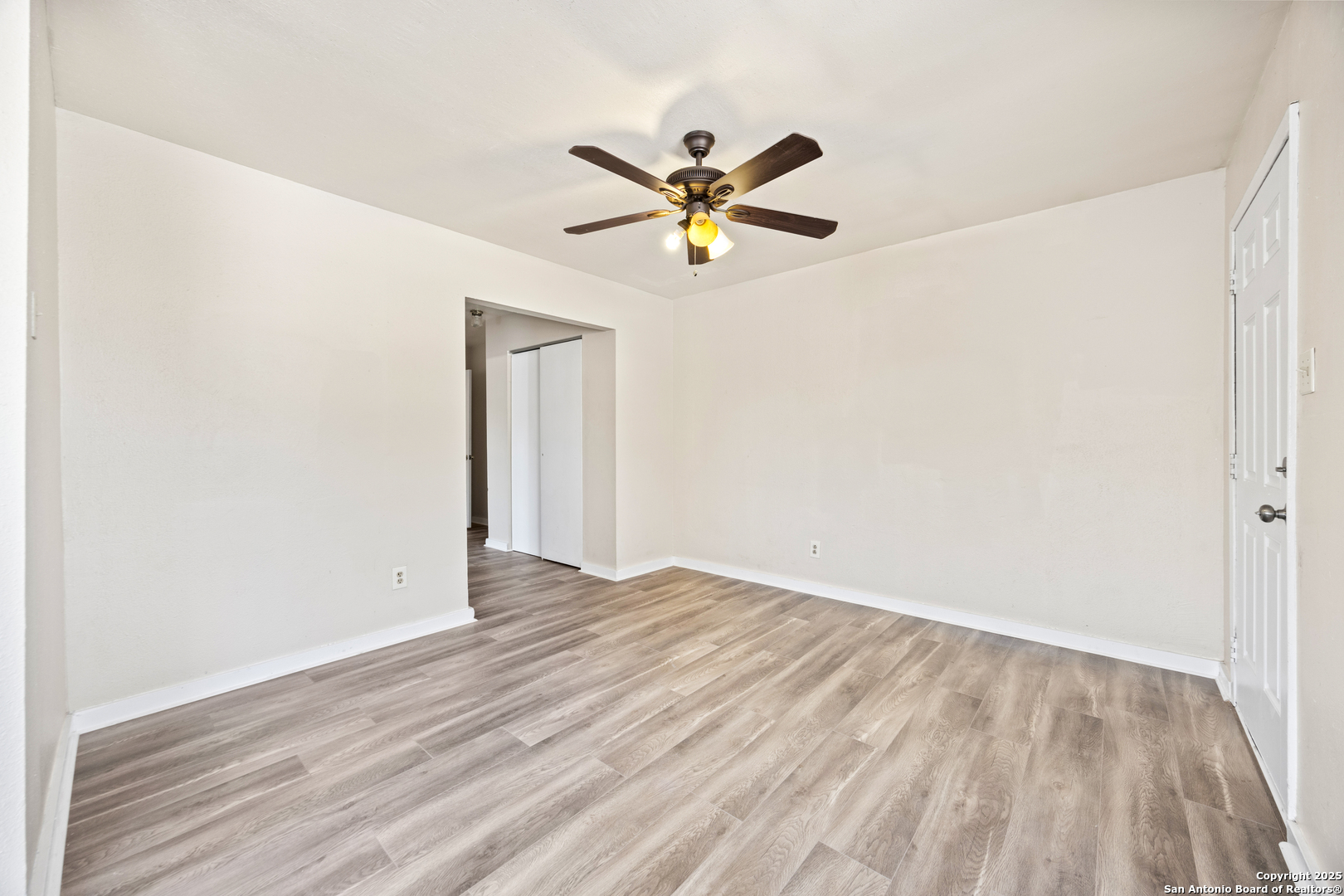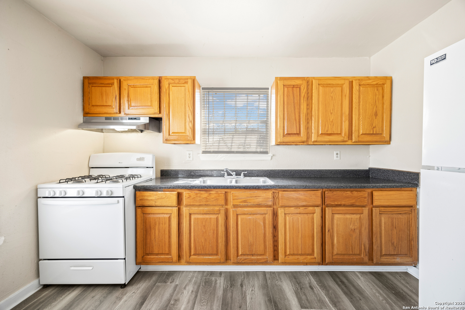 Cozy two bedroom one bath duplex. Offers a spacious open floorplan with New laminate floor all throughout. Kitchen includes refrigerator and beautiful cabinets. Fenced in yard and driveway parking space for two. Pet friendly. Schedule your showing TODAY!