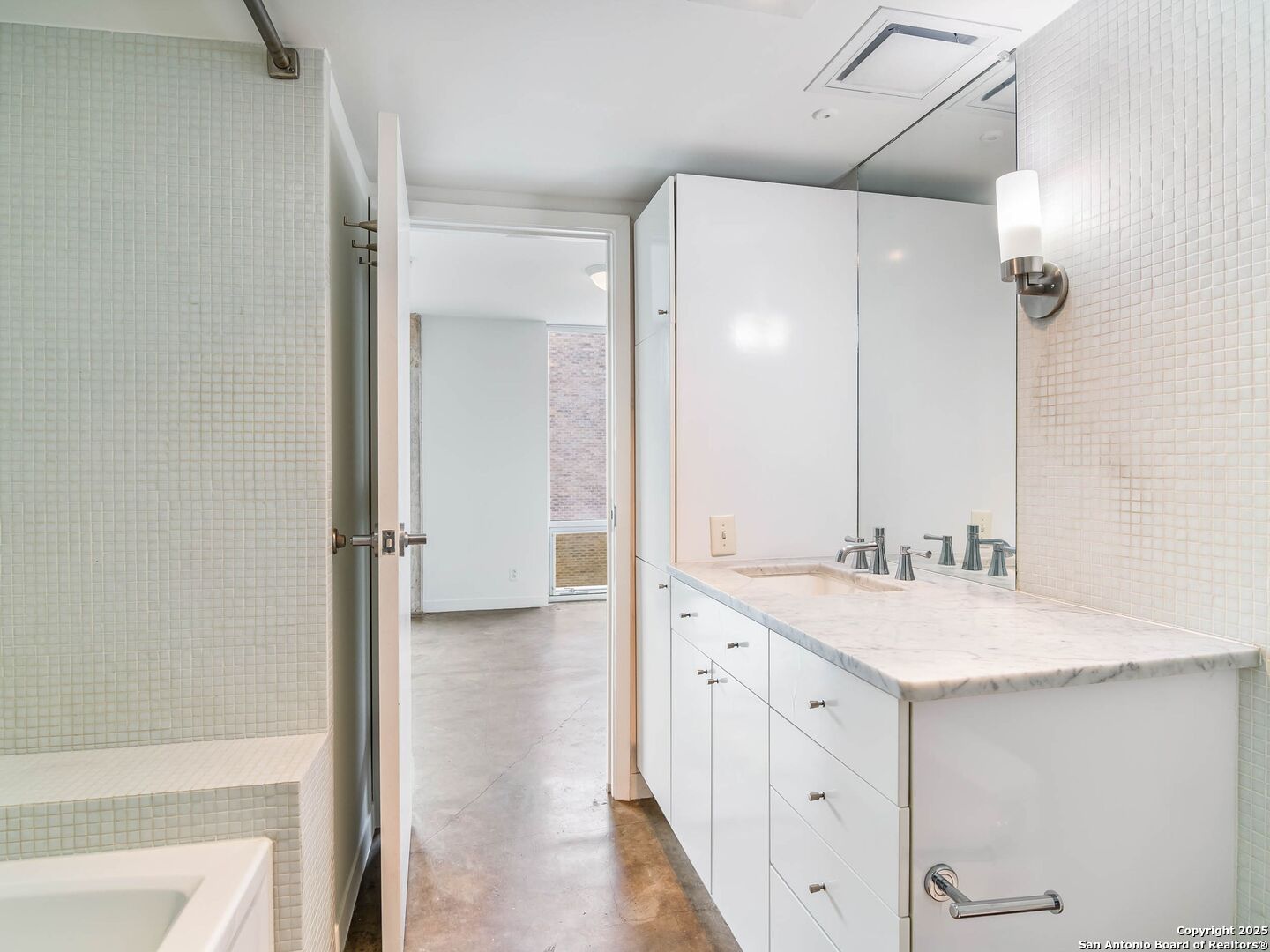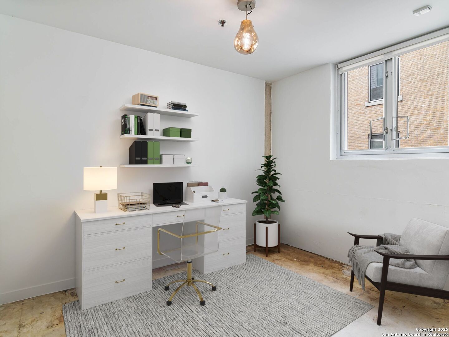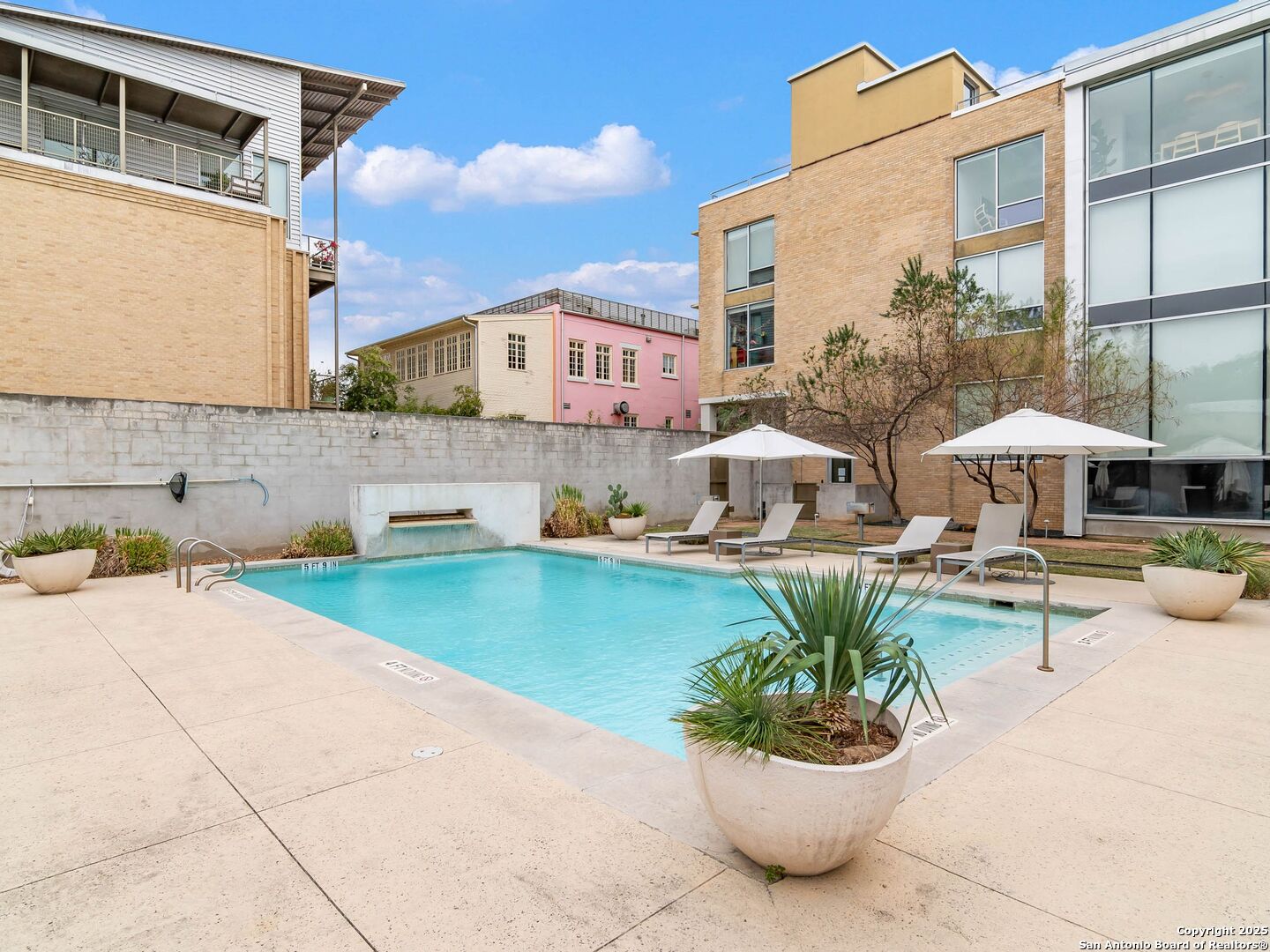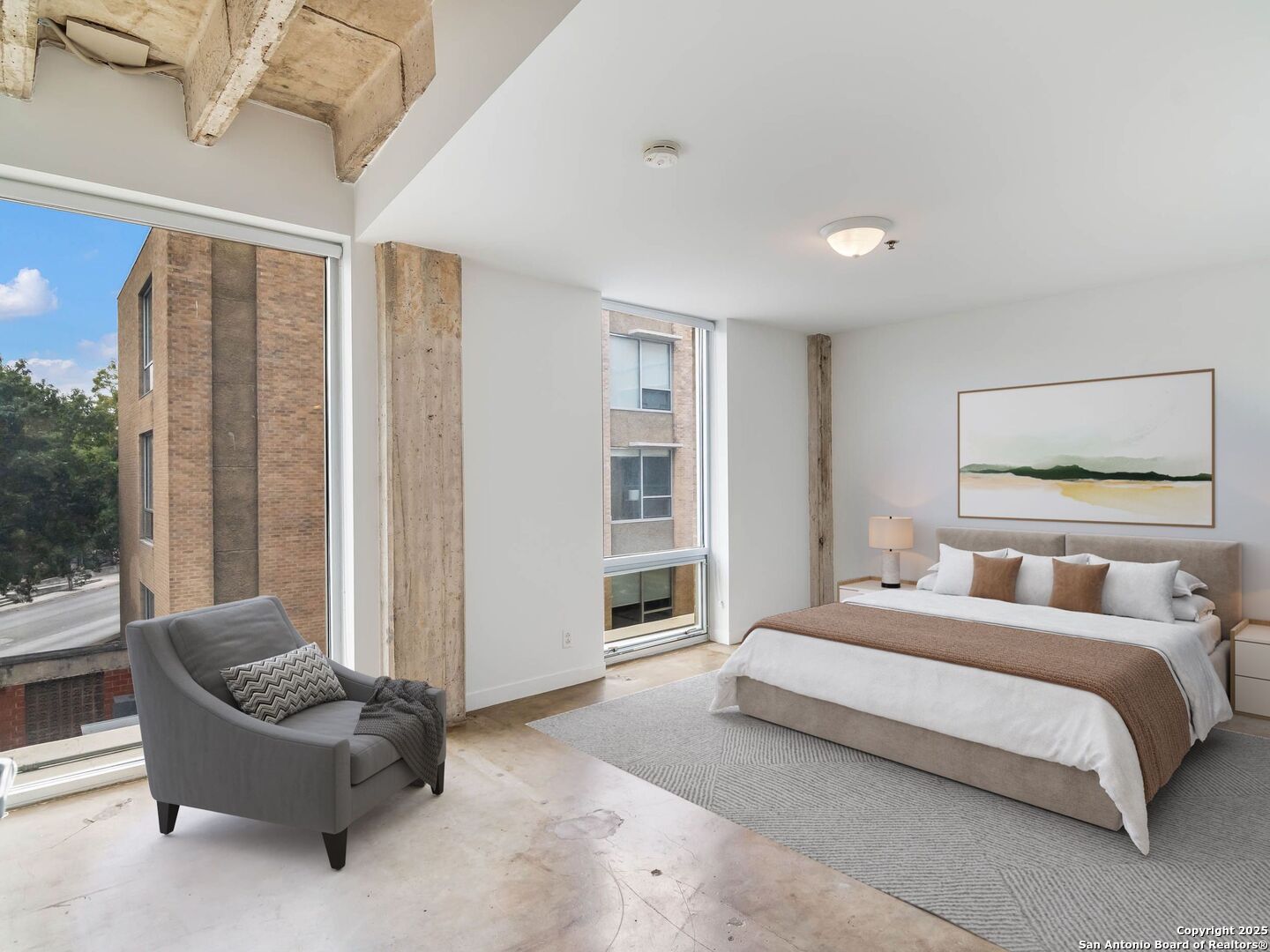 Experience modern luxury at the St. Benedict's Lofts with this stunning 2-bedroom condominium. Boasting an open and sophisticated layout, this home features soaring ceilings, expansive windows that flood the space with natural light, and sleek concrete floors throughout. The kitchen is equipped with high-end appliances, and you'll enjoy the convenience of two dedicated parking spaces. The building offers controlled access, a spa-like pool, and a fully-equipped fitness center for residents to enjoy. Located in the coveted King William Historic District, the St. Benedict's Lofts offer a peaceful retreat by the San Antonio River, just steps from your door. The vibrant local scene, including top restaurants, retail shops, and the Blue Star Arts Complex, is within walking distance, while Hemisfair Park, Downtown, and the attractions of Southtown are easily accessible by bike. With its prime location and exceptional amenities, the St. Benedict's Lofts stand out as one of San Antonio's finest living experiences.