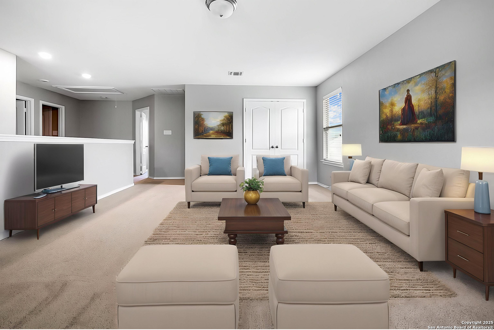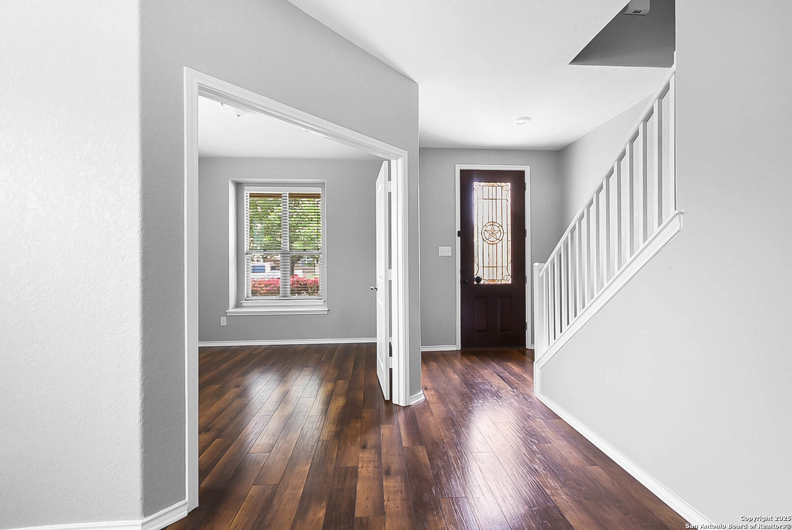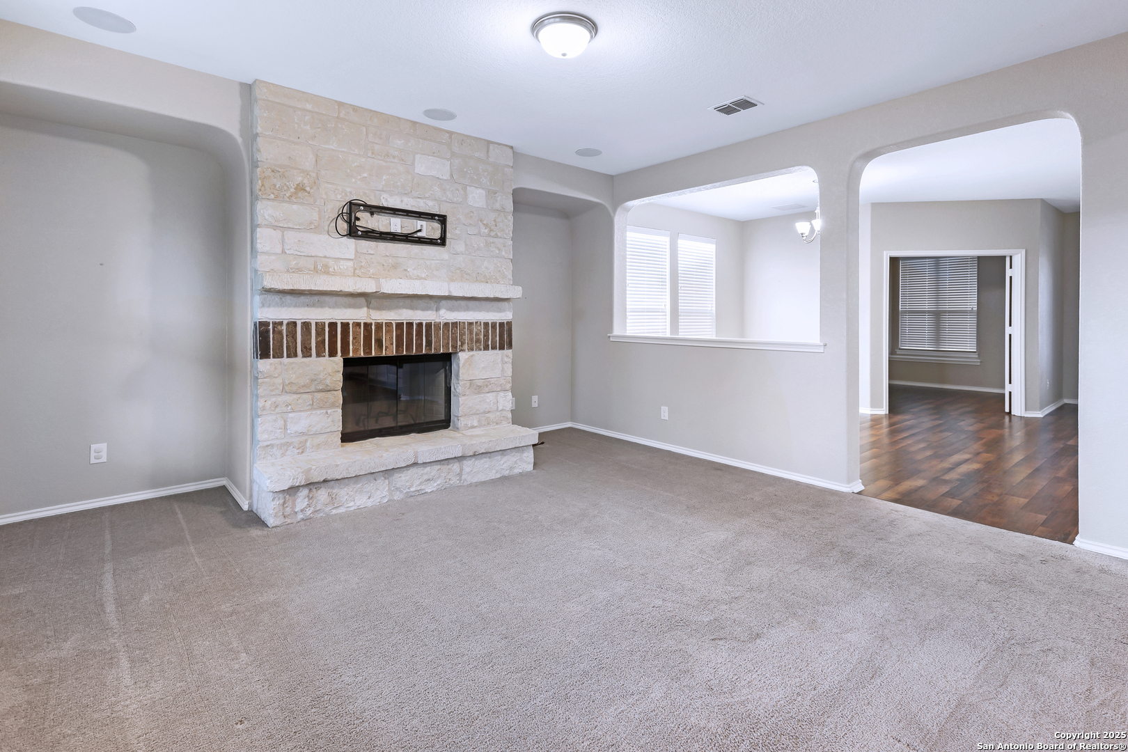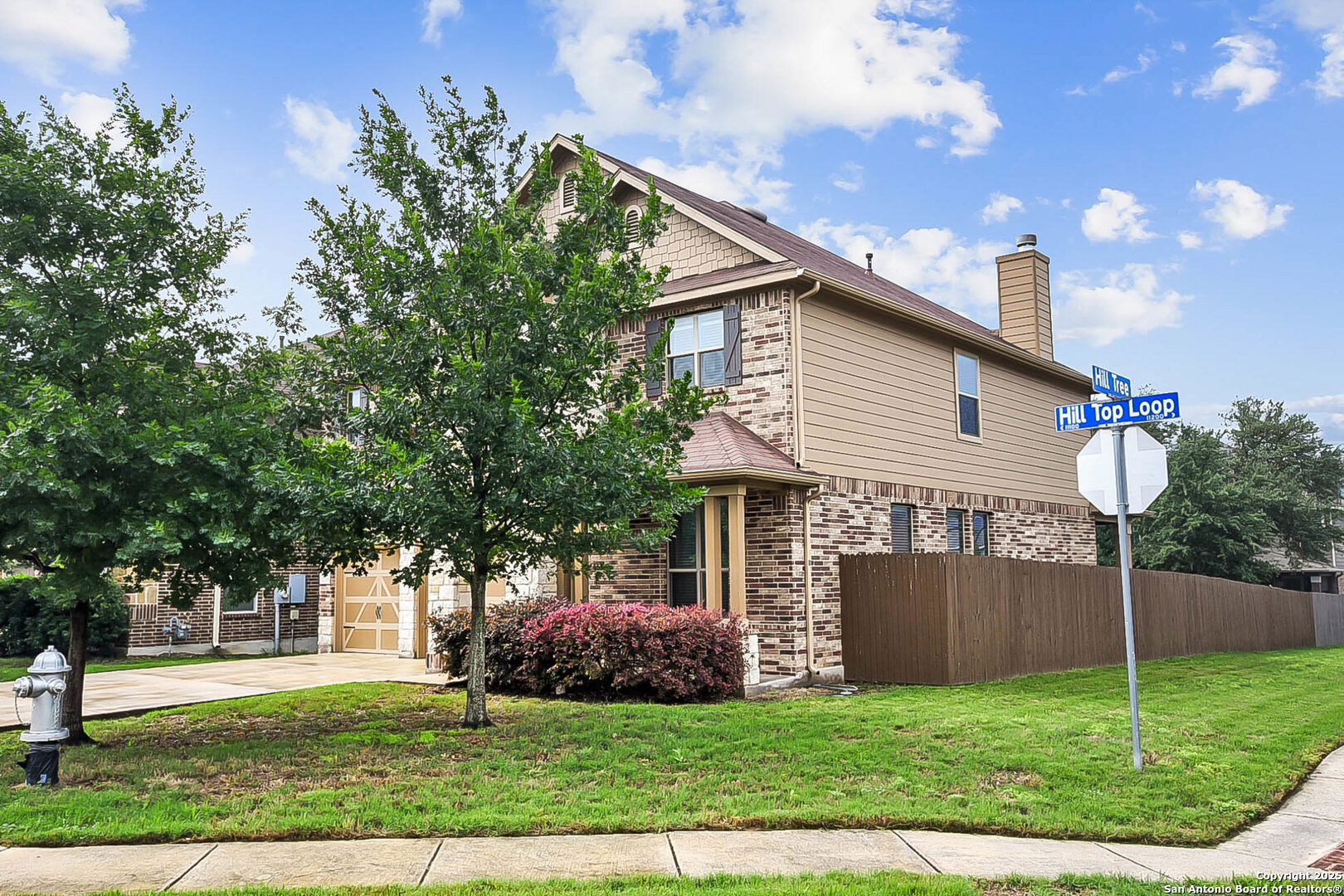 just north of San Antonio in Helotes, this stunning two-story home blends hill country charm with modern convenience. Set on a corner lot with impressive curb appeal, the brick exterior with limestone accents creates a warm, inviting look. Step inside to a bright, open layout featuring a front office area, formal dining room, and a spacious living room with a cozy fireplace. The chef's kitchen is a dream, complete with a large island, ample cabinetry, granite countertops, and a seamless flow to the living area-perfect for entertaining. Upstairs, a versatile loft offers endless possibilities, while the primary suite becomes your personal retreat, complete with an additional sitting area or private office space. Generous secondary bedrooms ensure comfort for all, and the covered patio in the backyard provides a tranquil space for outdoor relaxation. Enjoy the best of both worlds-hill country living with easy access to city amenities.