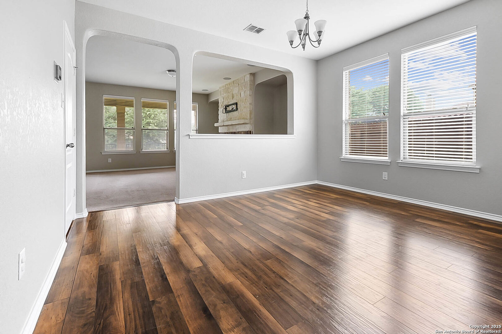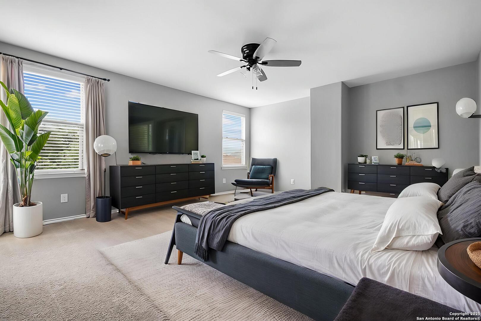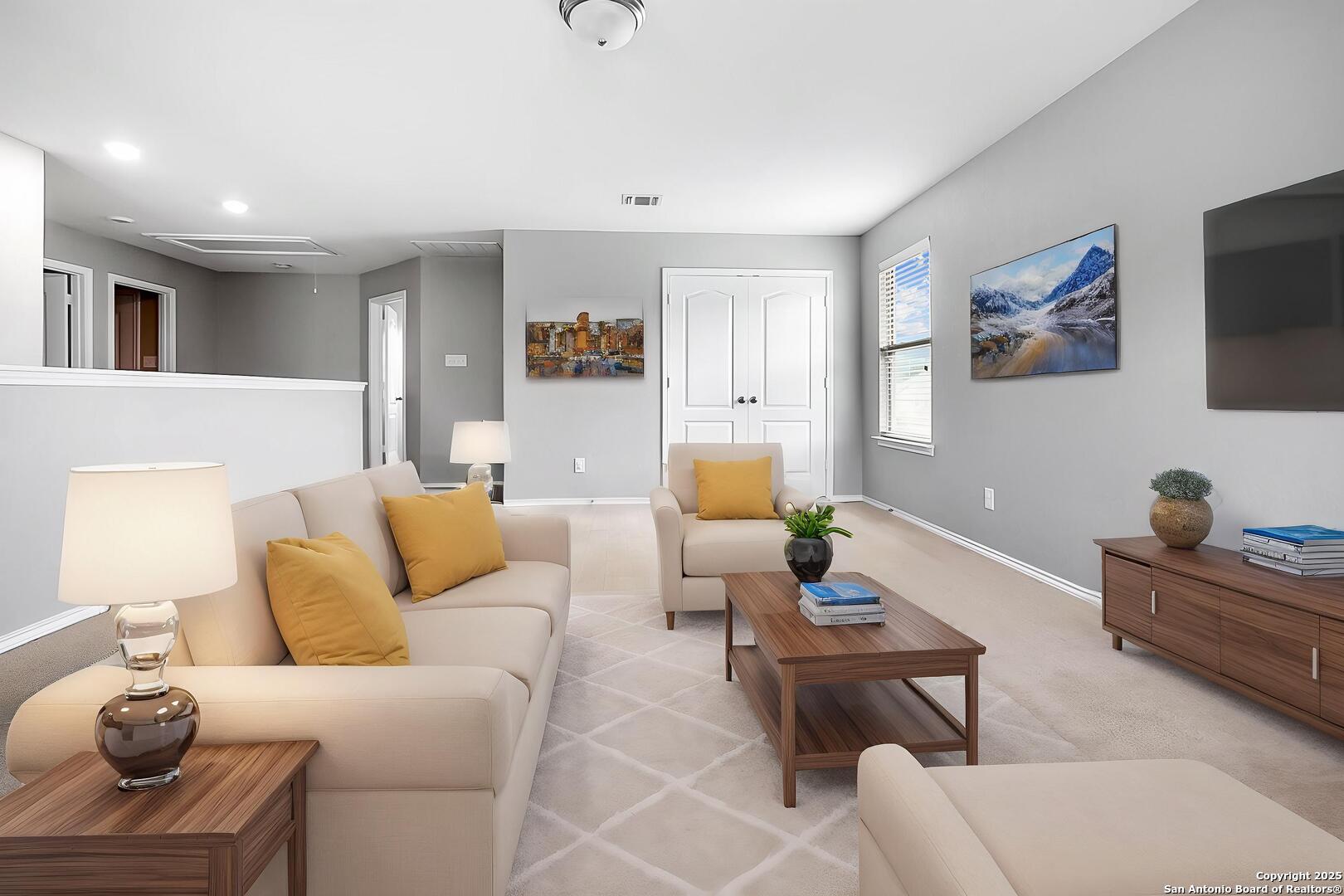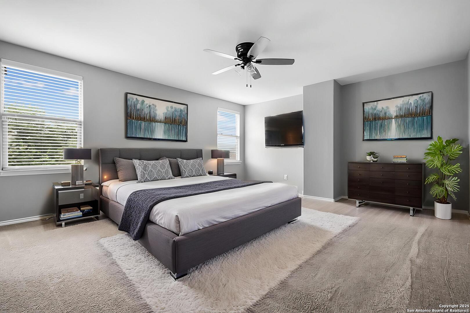 just north of San Antonio in Helotes, this stunning two-story home blends hill country charm with modern convenience. Set on a corner lot with impressive curb appeal, the brick exterior with limestone accents creates a warm, inviting look. Step inside to a bright, open layout featuring a front office area, formal dining room, and a spacious living room with a cozy fireplace. The chef's kitchen is a dream, complete with a large island, ample cabinetry, granite countertops, and a seamless flow to the living area-perfect for entertaining. Upstairs, a versatile loft offers endless possibilities, while the primary suite becomes your personal retreat, complete with an additional sitting area or private office space. Generous secondary bedrooms ensure comfort for all, and the covered patio in the backyard provides a tranquil space for outdoor relaxation. Enjoy the best of both worlds-hill country living with easy access to city amenities.