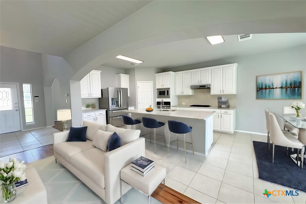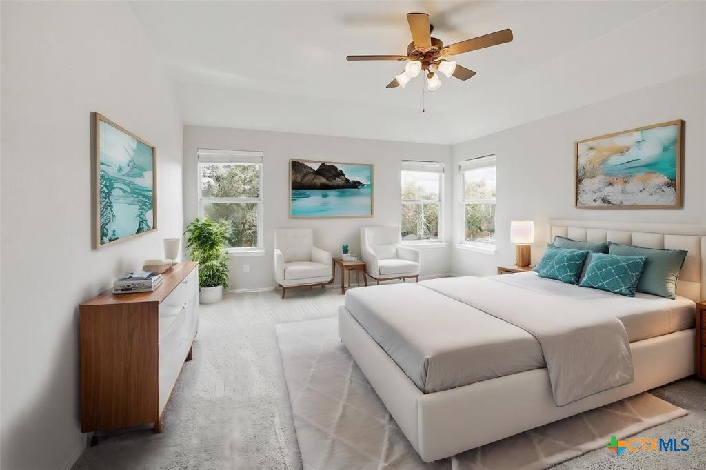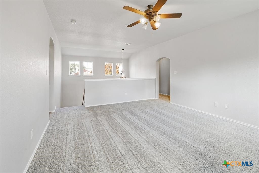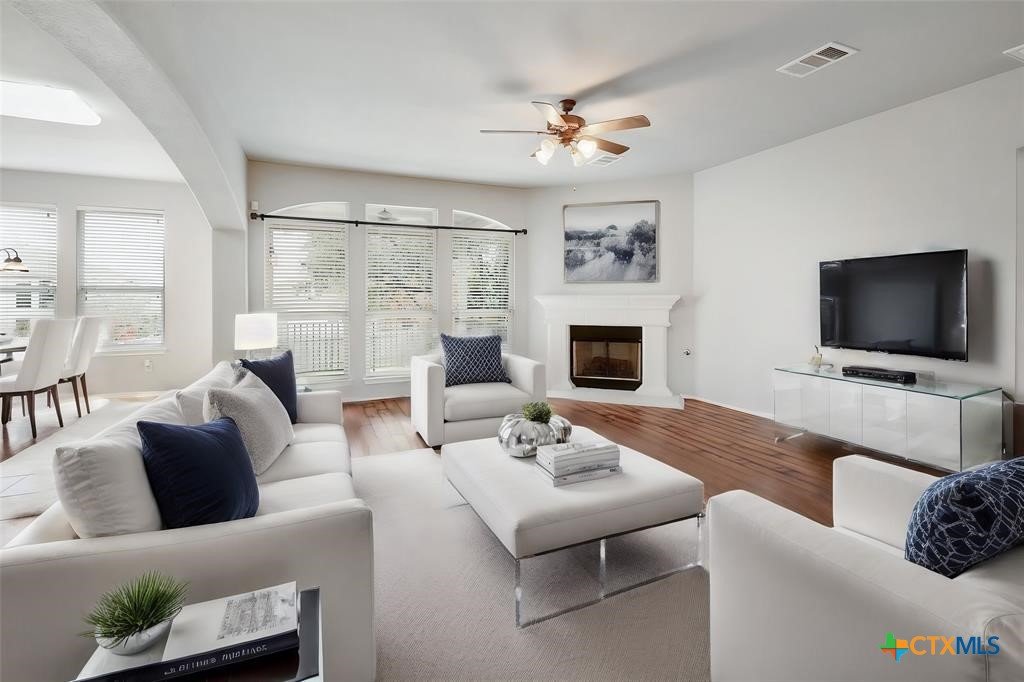 Renovated kitchen shines with bright white cabinetry and stunning granite countertops in this spacious home located in the highly sought-after Boulders at Crystal Falls community. Designed with an open-concept layout, the kitchen flows seamlessly into the living area—perfect for everyday living and entertaining. Features include a breakfast bar, generous pantry, and abundant cabinet storage. Two dining areas provide flexibility for both casual meals and larger gatherings. The private primary suite offers a comfortable retreat, while the upstairs flex room is ideal for a game room, media space, or additional living area. Step outside to a fenced backyards with a covered patio, perfect for relaxing or escaping the Texas heat. Recent updates include fresh interior paint and new carpet, making this home truly move-in ready. Residents enjoy access to exceptional community amenities, including two pools, tennis courts, a public golf course, picnic areas, fishing pond, sand volleyball, scenic walking trails and more.
