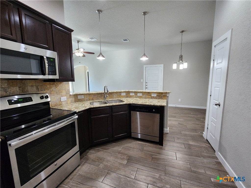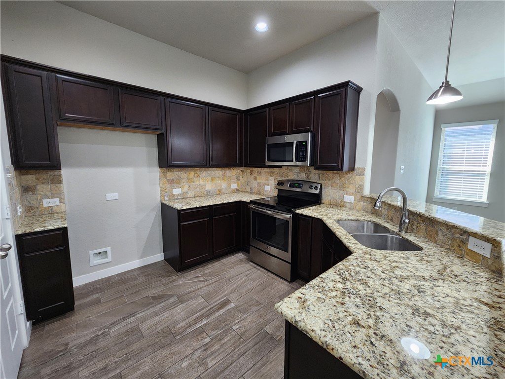 3/2/2 Duplex Home Located in Comal ISD and Minutes to IH 35 and the Creekside Shopping Area. Tons Of Features: Granite Countertops in the Kitchen with Under Mount Sink, Stainless Steel Appliances, Built-In Microwave, Dishwasher, Stove, Upscale Light & Plumbing Fixtures, Walk-In Shower & Double Vanity in Primary Bath, High Ceilings, Upscale Wood-Look Tile Flooring with Carpet in All Bedrooms, Ceilings Fans, Patio, Sprinkler System, and Privacy Fenced-In Backyard! CISD. 1 Pet Negotiable, 50 lb Max.