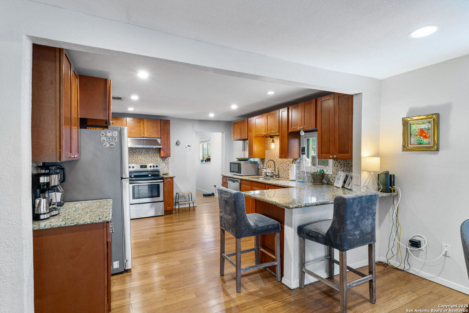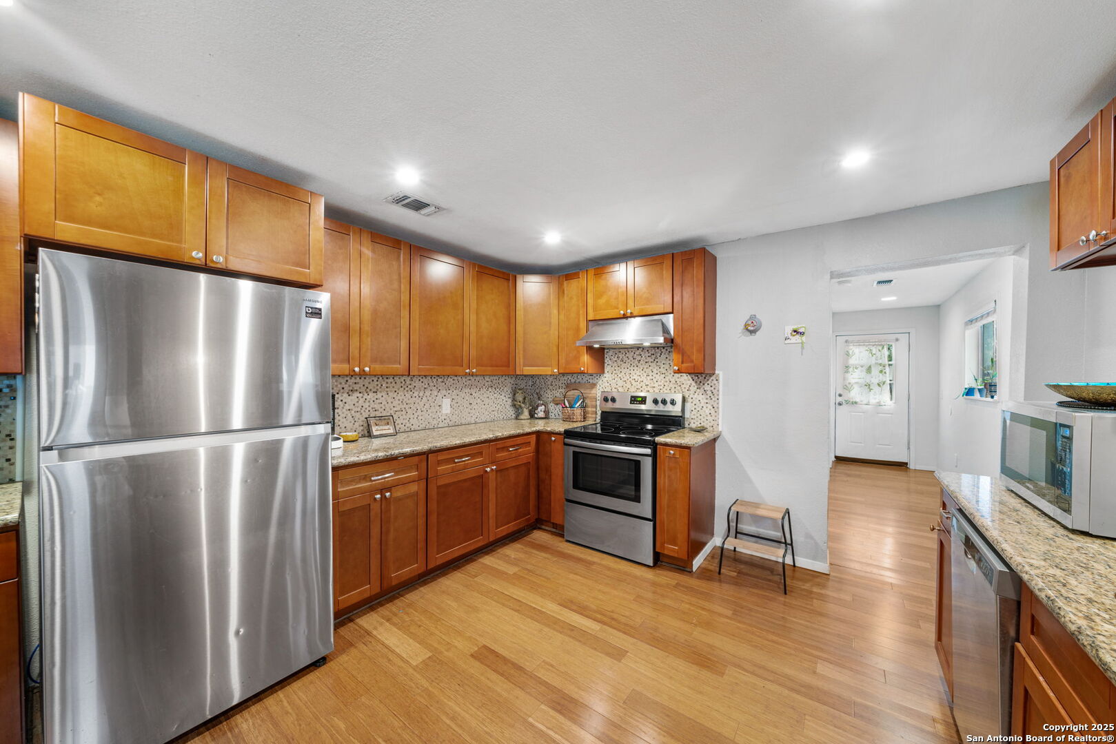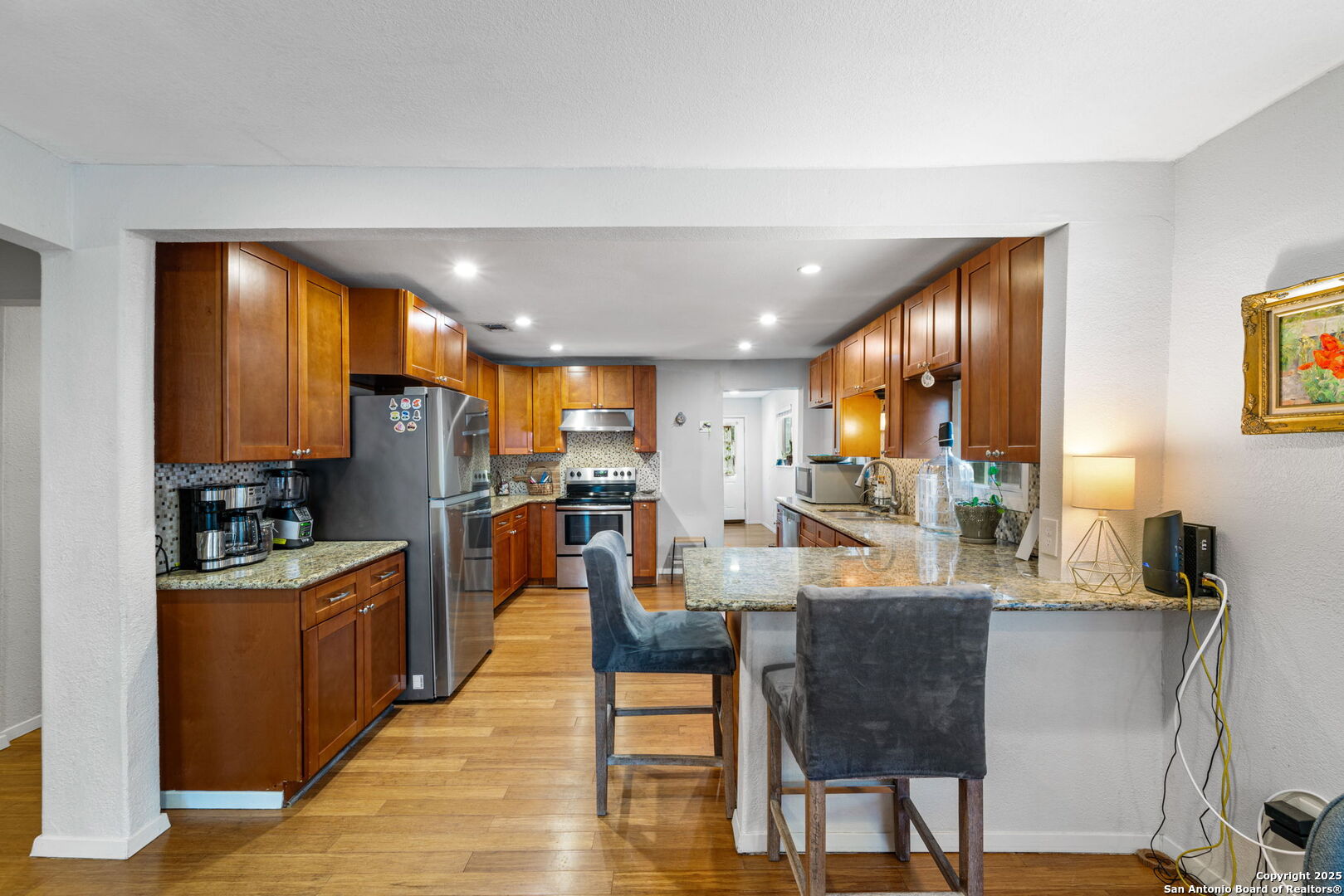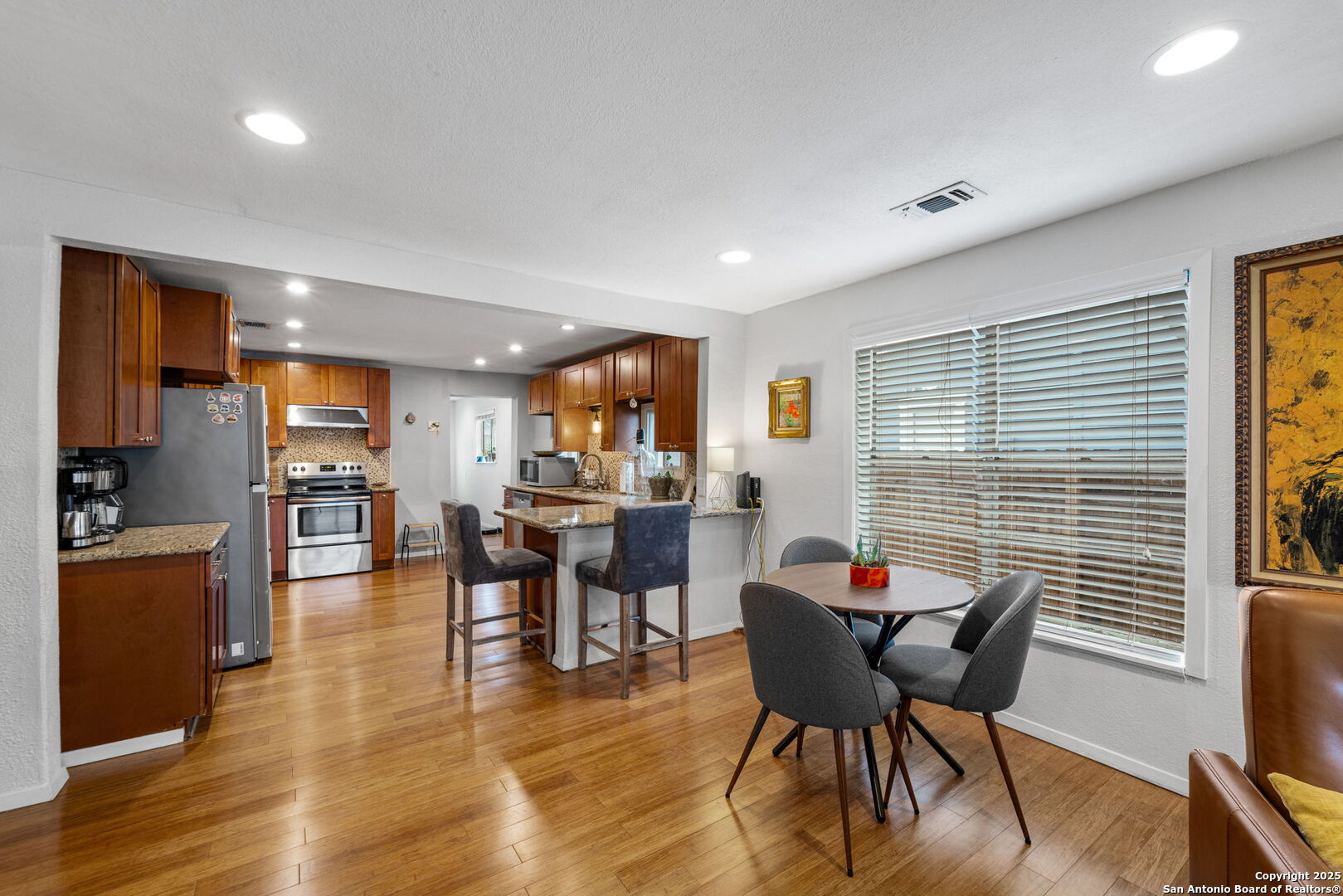 VA ASSUMABLE LOAN WITH A 3.25% INTEREST RATE. Location, Location, Location! This beautifully updated home from the 1940's is a short bicycle or motorized scooter ride to Downtown San Antonio and even closer to The Lively Pearl District! This home boasts: elegant bamboo flooring, an open floorplan, stylish kitchen, large bedrooms, a great back yard for BBQ's and family gatherings, and a relaxing front porch to enjoy coffee in the mornings and relax with a cocktail at the end of the day. It does have a large, fenced in detached garage with lots of potential for a gameroom, man cave, she shed, workshop, rehearsal space and much more. Lastly it has easy access to I-35, I-10, I-37, I-90 and HWY 281. Come this Gem with so much potential before it is gone!