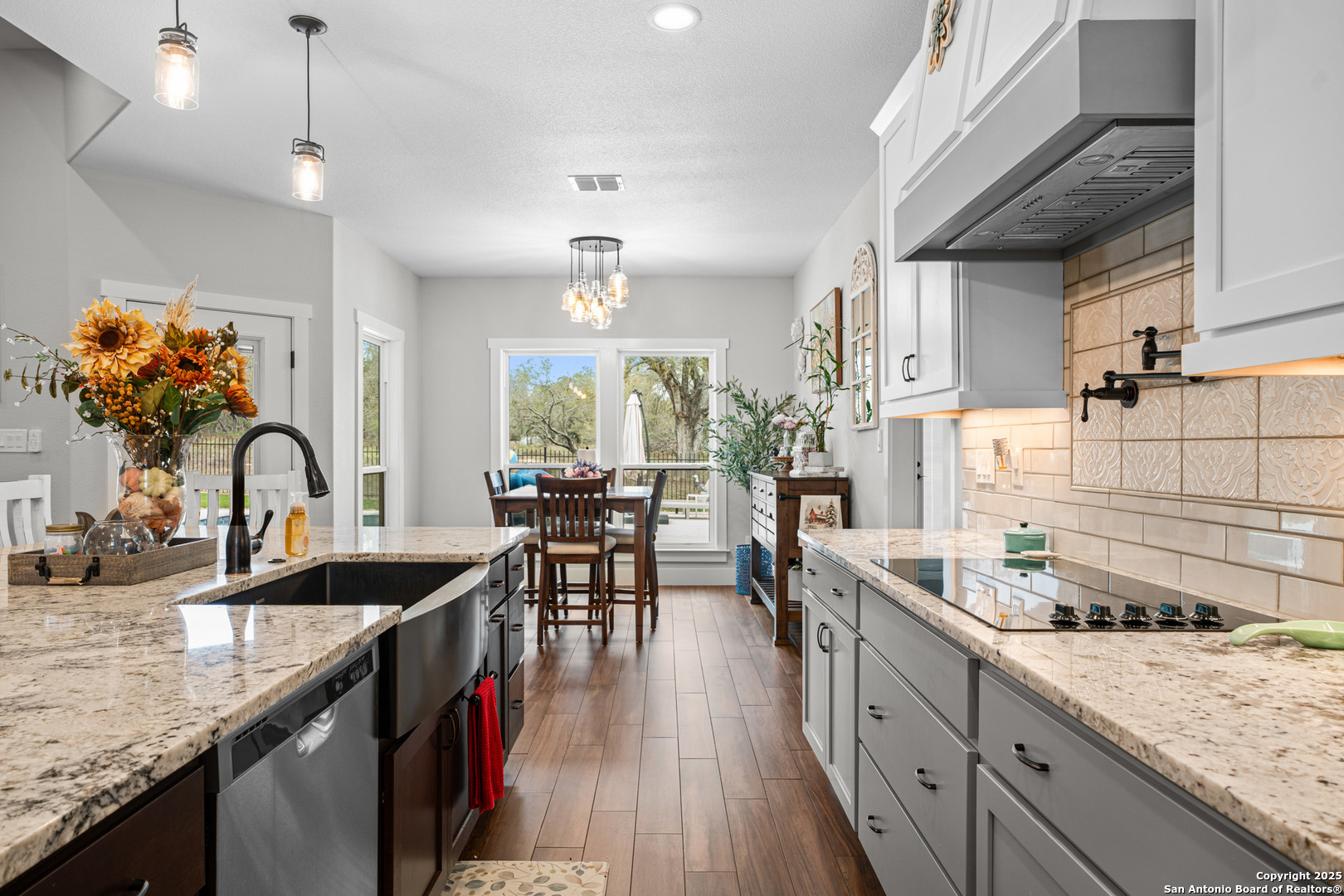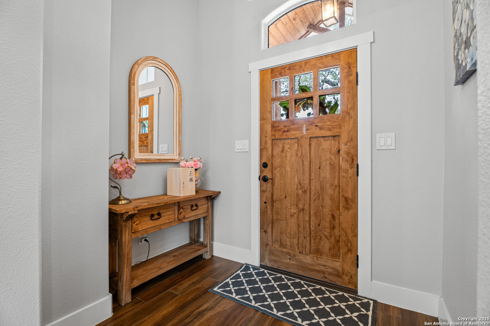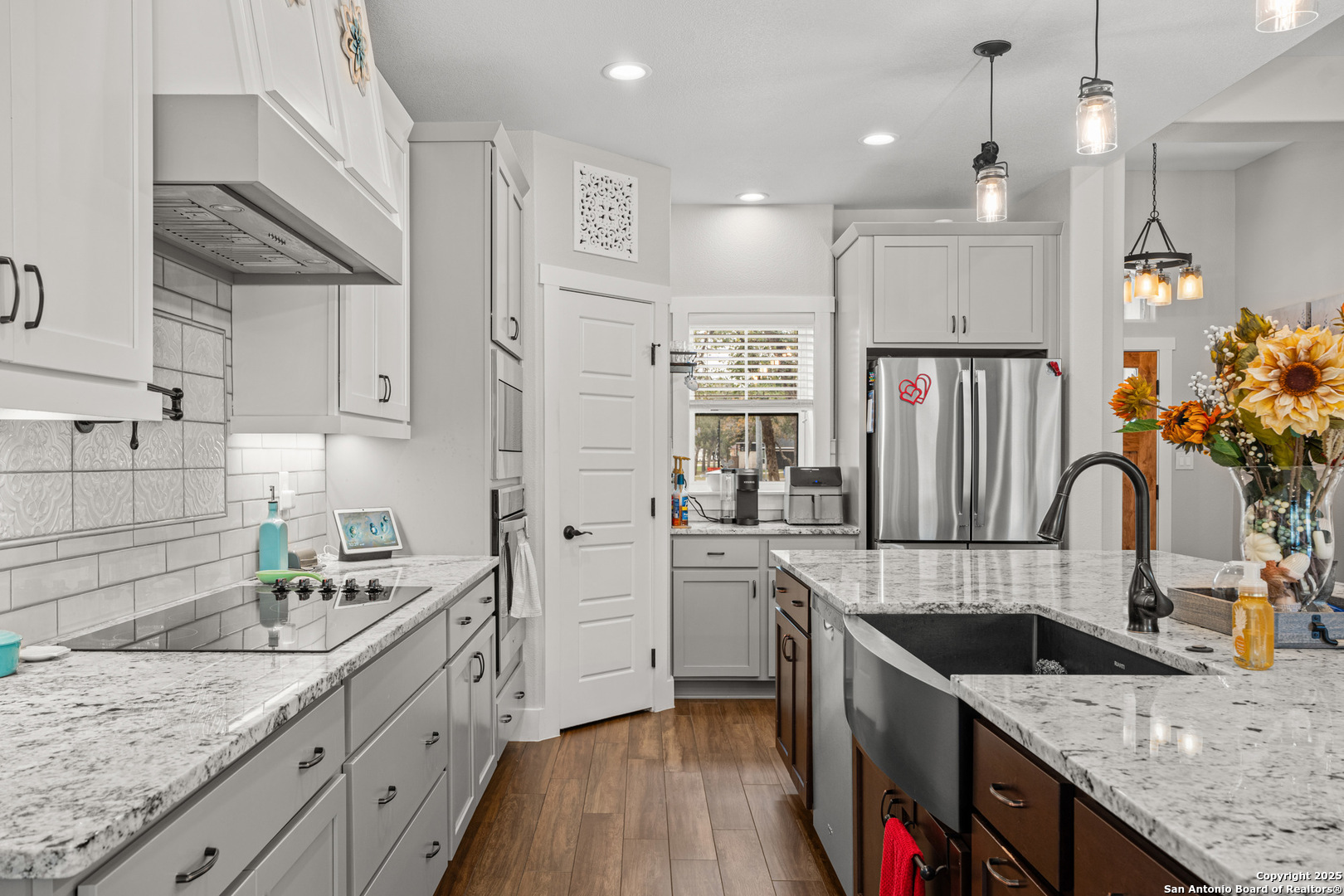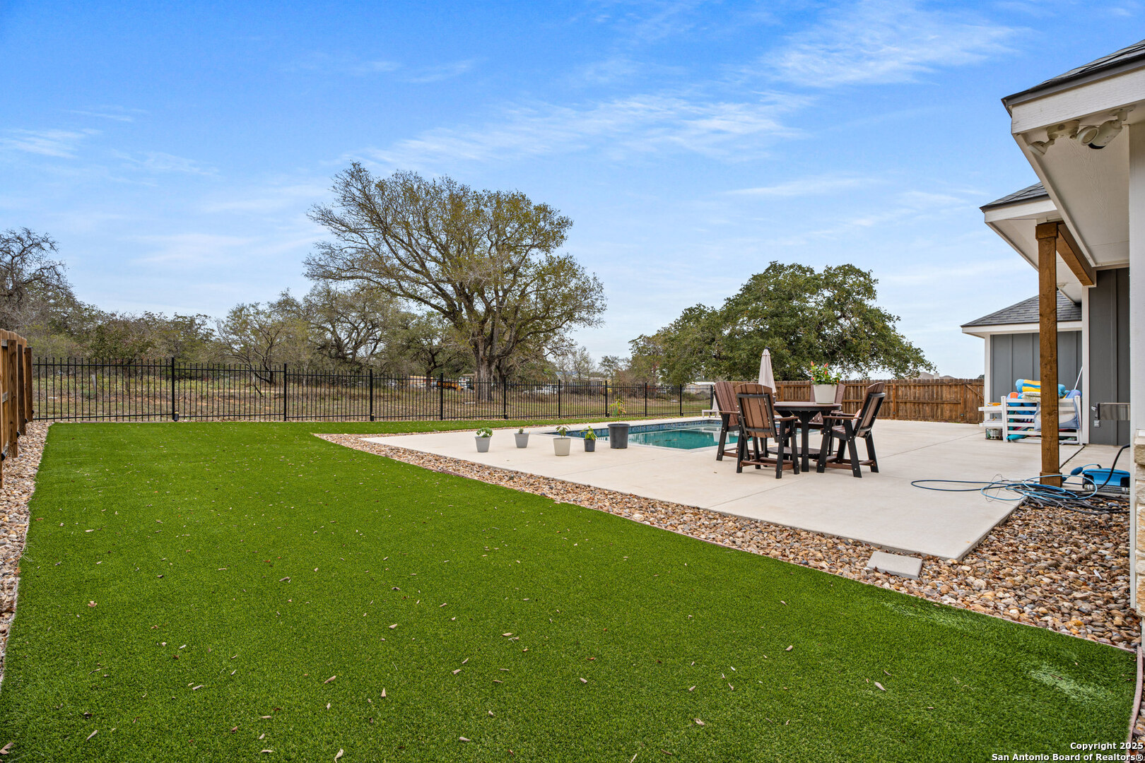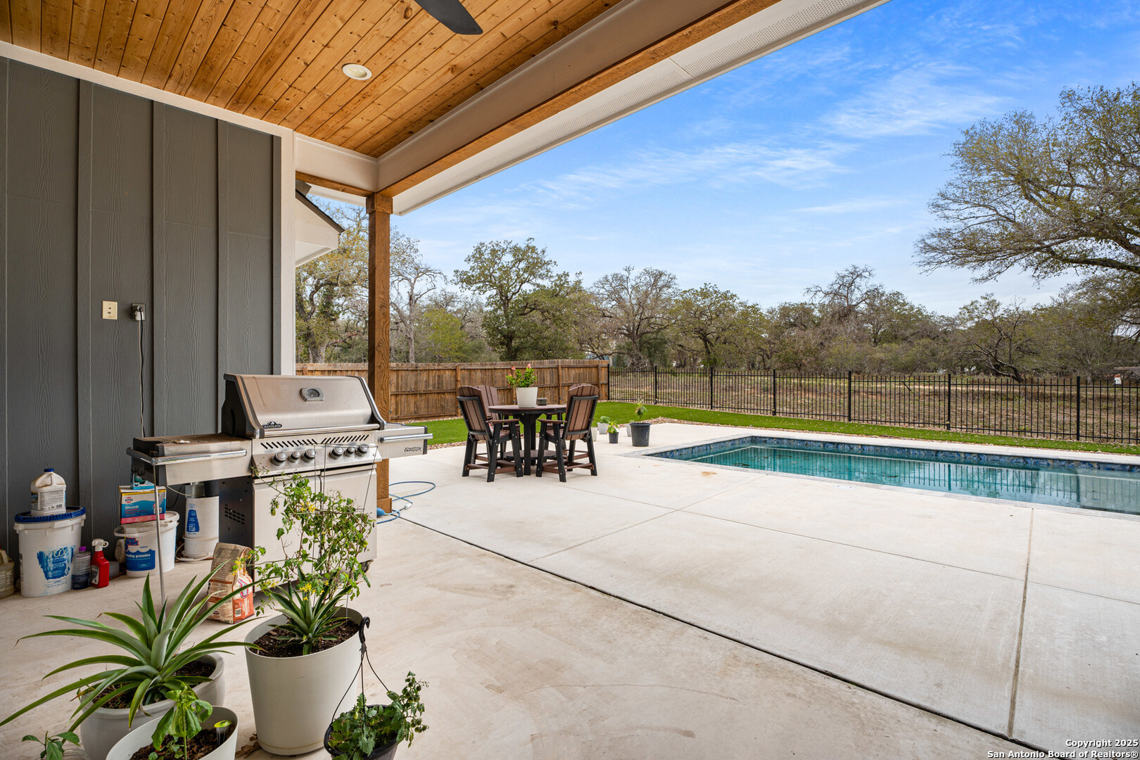 Welcome to your private retreat-where resort-style living and modern technology come together in perfect harmony. This exceptional residence is nestled on over an acre in a peaceful cul-de-sac, offering privacy, elegance, and the ultimate in relaxation. The property is surrounded by mature trees in both the front and back, creating a natural, serene environment. Enjoy the seclusion of having no neighbors behind and savor the quiet of a private circle cul-de-sac. The gourmet kitchen is a showstopper, designed for gatherings and culinary creativity. An extra-large eat-in island invites casual breakfasts or lively dinner parties. Enjoy the convenience of a full-depth refrigerator alcove with a triple-filter water system, pull-out cabinet shelves, and a dual trash can cabinet. The built-in wall oven and microwave feature custom storage for baking sheets and cookware, while the upgraded cooktop includes a pot filler faucet and a custom hood vent with soft LED lighting. The spacious corner pantry, complete with built-in shelving, ensures everything you need is always within reach. The professionally landscaped yard features low-maintenance Xeriscape accents, ensuring beauty with minimal upkeep. Step inside to find timeless Craftsman detailing-custom window and door casings, rich wall trim, and elegant finishes throughout. Modern technology is seamlessly integrated, including whole-home water filtration and softening systems, energy-efficient LED lighting, and app-controlled ceiling fans and lights in every bedroom. Wall-mounted TV outlets provide effortless entertainment for every room, while the wood blinds offer both style and privacy. The oversized garage, featuring a full third car bay, is equipped for the future. Charge your electric vehicle with a dedicated 220V outlet and enjoy commercial-grade lighting and whisper-quiet, app-controlled garage door openers with motion-activated lights. Premium ceiling fans and a soft water spigot make every car wash spotless and effortless. Indulge in your private backyard oasis, where every day feels like a getaway. The custom 24 x 14, cocktail pool features a 6-foot sun deck, built-in bench, and corner seating-perfect for relaxing with your morning coffee or hosting sunset gatherings. The surrounding Xeriscape landscaping frames the pool in natural beauty, while fencing ensures privacy and showcases open views of the lush property. Stay secure with a state-of-the-art, seven-camera direct-wired security system-no service subscription required!! Smart switch-controlled exterior lighting and dedicated holiday light outlets add both safety and festive convenience, allowing you to create the perfect ambiance year-round. This home perfectly blends Craftsman charm, modern technology, and resort-style amenities. Whether you're seeking quiet moments by the pool, effortless entertainment, or the peace of mind that comes with advanced security, this property invites you to experience a lifestyle of comfort and sophistication. Schedule a tour today and discover your next dream home!