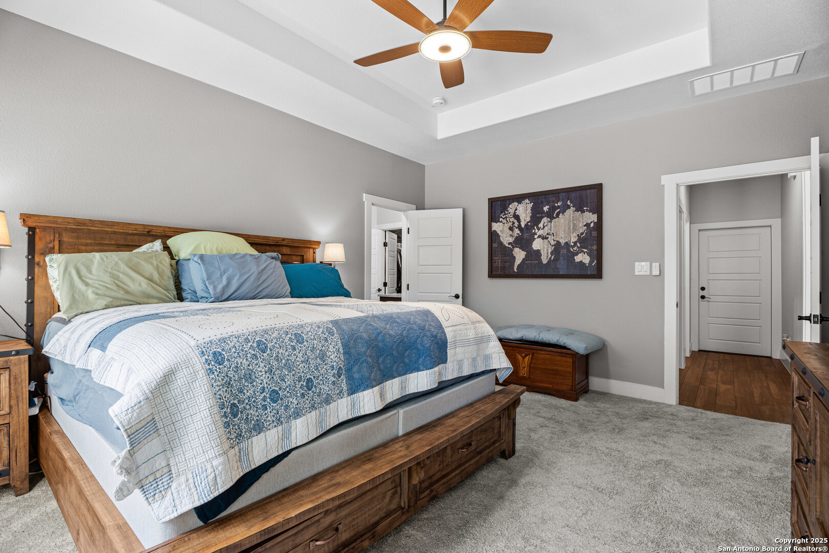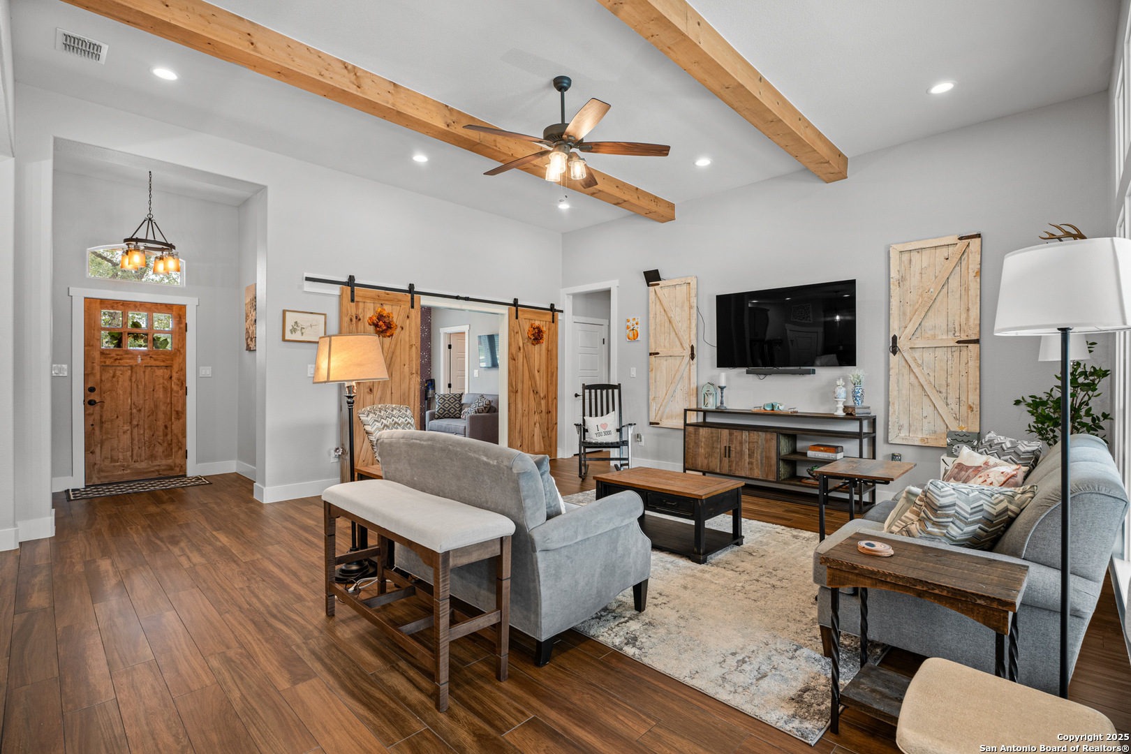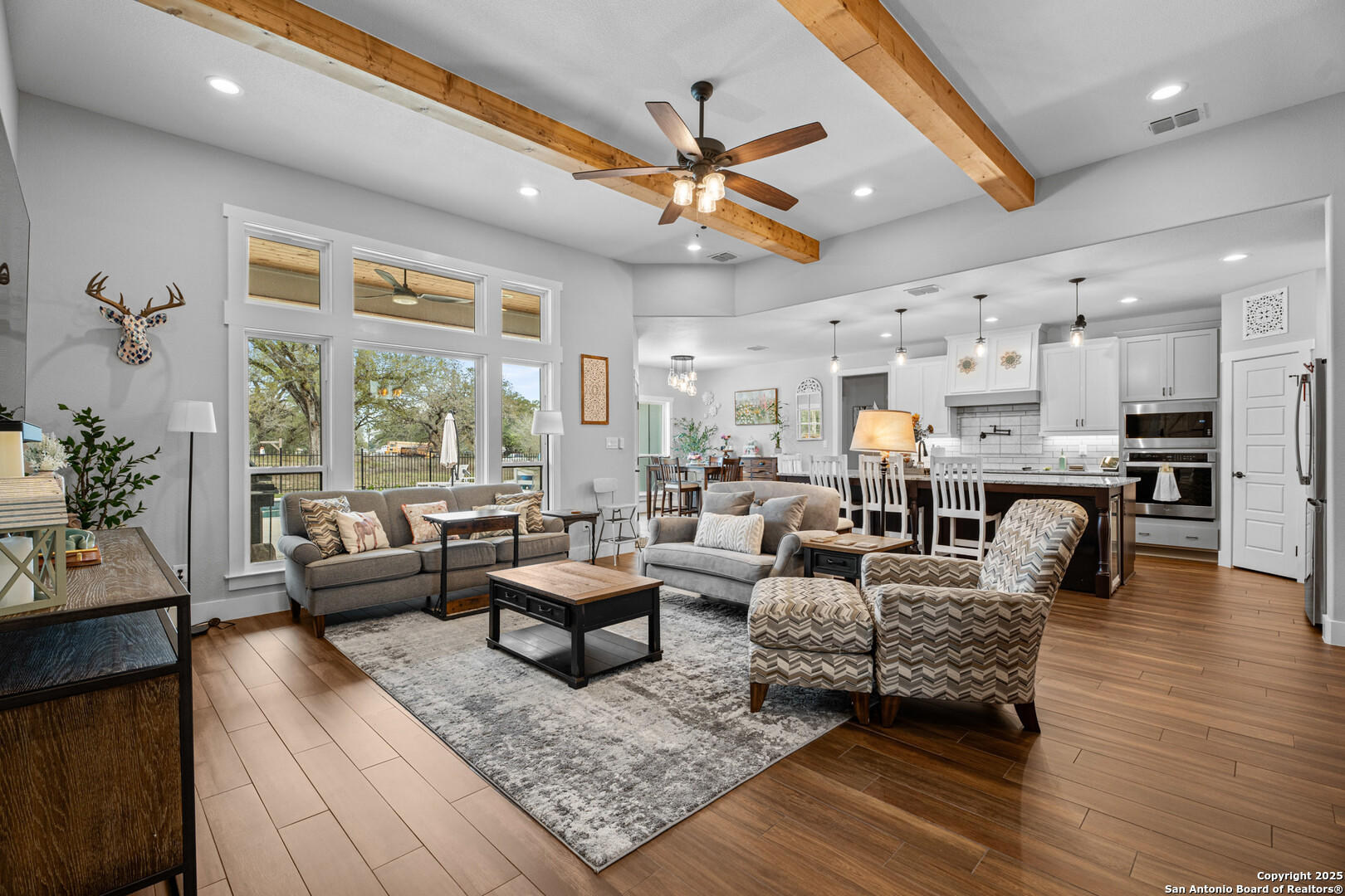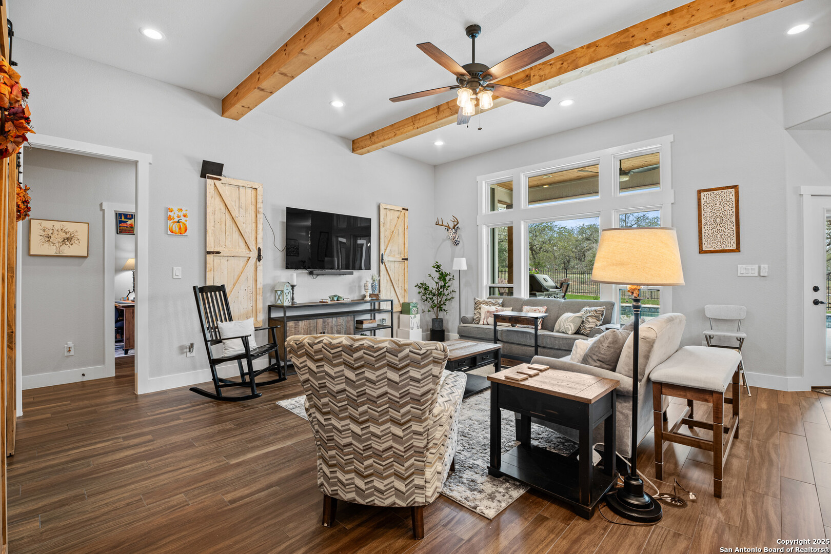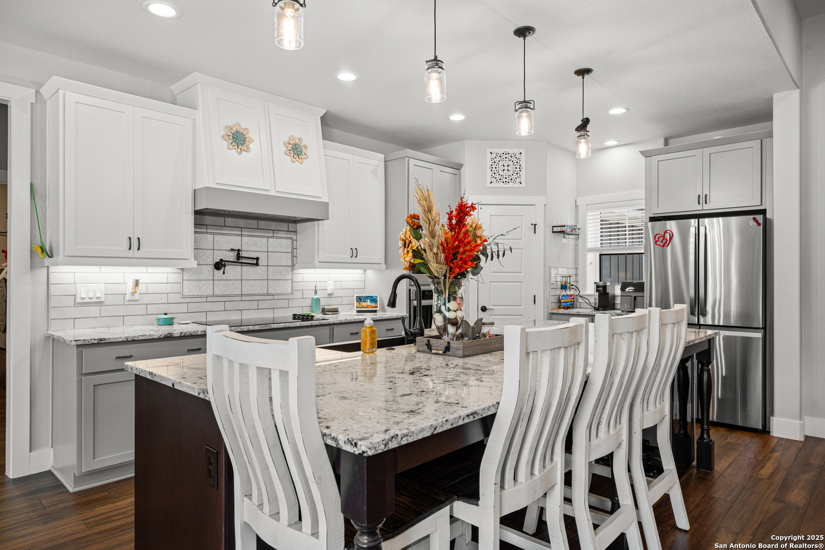 Welcome to your private retreat-where resort-style living and modern technology come together in perfect harmony. This exceptional residence is nestled on over an acre in a peaceful cul-de-sac, offering privacy, elegance, and the ultimate in relaxation. The property is surrounded by mature trees in both the front and back, creating a natural, serene environment. Enjoy the seclusion of having no neighbors behind and savor the quiet of a private circle cul-de-sac. The gourmet kitchen is a showstopper, designed for gatherings and culinary creativity. An extra-large eat-in island invites casual breakfasts or lively dinner parties. Enjoy the convenience of a full-depth refrigerator alcove with a triple-filter water system, pull-out cabinet shelves, and a dual trash can cabinet. The built-in wall oven and microwave feature custom storage for baking sheets and cookware, while the upgraded cooktop includes a pot filler faucet and a custom hood vent with soft LED lighting. The spacious corner pantry, complete with built-in shelving, ensures everything you need is always within reach. The professionally landscaped yard features low-maintenance Xeriscape accents, ensuring beauty with minimal upkeep. Step inside to find timeless Craftsman detailing-custom window and door casings, rich wall trim, and elegant finishes throughout. Modern technology is seamlessly integrated, including whole-home water filtration and softening systems, energy-efficient LED lighting, and app-controlled ceiling fans and lights in every bedroom. Wall-mounted TV outlets provide effortless entertainment for every room, while the wood blinds offer both style and privacy. The oversized garage, featuring a full third car bay, is equipped for the future. Charge your electric vehicle with a dedicated 220V outlet and enjoy commercial-grade lighting and whisper-quiet, app-controlled garage door openers with motion-activated lights. Premium ceiling fans and a soft water spigot make every car wash spotless and effortless. Indulge in your private backyard oasis, where every day feels like a getaway. The custom 24 x 14, cocktail pool features a 6-foot sun deck, built-in bench, and corner seating-perfect for relaxing with your morning coffee or hosting sunset gatherings. The surrounding Xeriscape landscaping frames the pool in natural beauty, while fencing ensures privacy and showcases open views of the lush property. Stay secure with a state-of-the-art, seven-camera direct-wired security system-no service subscription required!! Smart switch-controlled exterior lighting and dedicated holiday light outlets add both safety and festive convenience, allowing you to create the perfect ambiance year-round. This home perfectly blends Craftsman charm, modern technology, and resort-style amenities. Whether you're seeking quiet moments by the pool, effortless entertainment, or the peace of mind that comes with advanced security, this property invites you to experience a lifestyle of comfort and sophistication. Schedule a tour today and discover your next dream home!