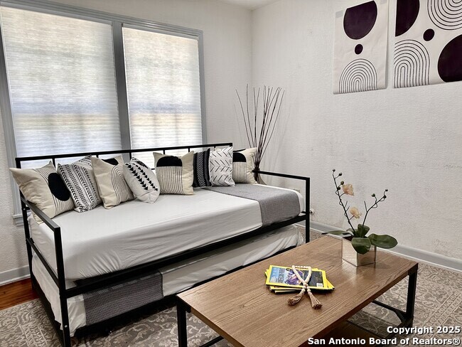 Charming historic rock home with incredible character and modern updates. Featuring high ceilings, beautiful wood floors, and a cozy fireplace, this 3-bedroom, 2-bathroom home offers both comfort and style. The family room is perfect for gatherings, and the kitchen boasts a lovely breakfast nook surrounded by windows, letting in plenty of natural light. Situated in the highly desirable Alamo Heights ISD, is ideally located right off Broadway, walkiing distance from restaurants and shopping. This property is available furnished or unfurnished, depending on the tenant's preferences. The furnished option may come with a higher rent.