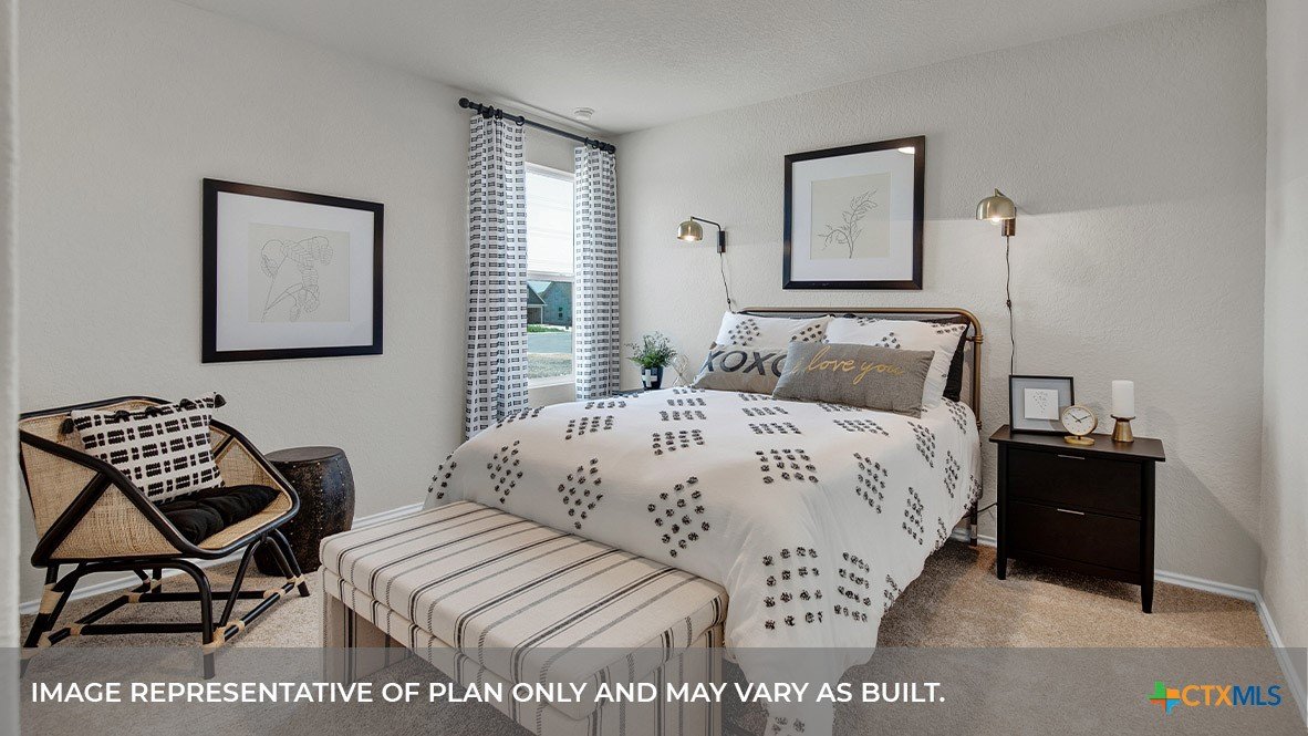 MAY/JUNE ESTIMATED COMPLETION DATE. The Lakeway is our most popular floorplan and is available at Trace in San Marcos, Texas. This one-story home offers 2,034 square feet of living space across 4 bedrooms, 3 bathrooms, a study, and 2-car garage. Our homes in Trace feature farmhouse exteriors. As you enter the home from the covered front porch, you’ll step into the spacious foyer and will find the open study, bathroom 2 and bedroom 2. Use the study as a home office, library, or extra play area for the kids. Stepping further into the home, you’ll discover the dining room, kitchen and family room laid out in an open concept design. Built to make cooking, eating, and entertaining a pleasant experience for family and friends, you’re sure to make many memories in this beautiful space. The kitchen includes quartz countertops, a large island facing the family room, a walk-in pantry, stainless-steel appliances and 36’’ upper cabinets. Located privately off the dining room are bedrooms 3 and 4, as well as bathroom 3. The primary bedroom is at the back of the house, off the family room, and includes a private bathroom. This relaxing bathroom space features a 5’ walk in shower, vanity, private toilet area with a door, and a walk-in closet. The utility room is outside the primary bedroom, allowing for the laundry chores to be completed with ease. The Lakeway includes vinyl flooring throughout the common areas of the home, and carpet in the bedrooms. All our new homes feature a covered back patio, full sod, irrigation system in the front and back yard, and a 6’ privacy fence around the back yard. This home includes our America’s Smart Home base package, which includes the Amazon Echo Pop, Front Doorbell, Front Door Deadbolt Lock, Home Hub, Thermostat, and Deako® Smart Switches.